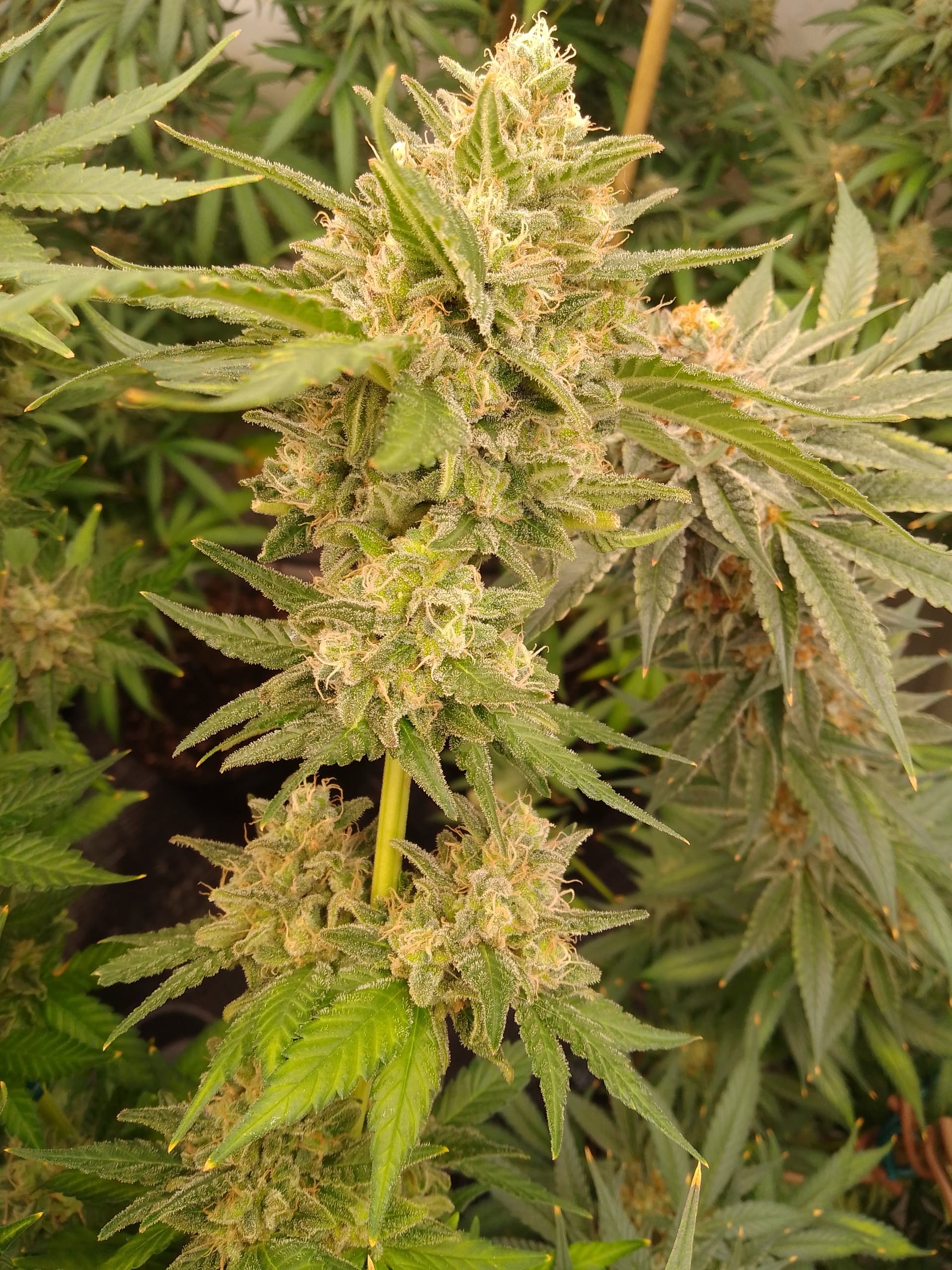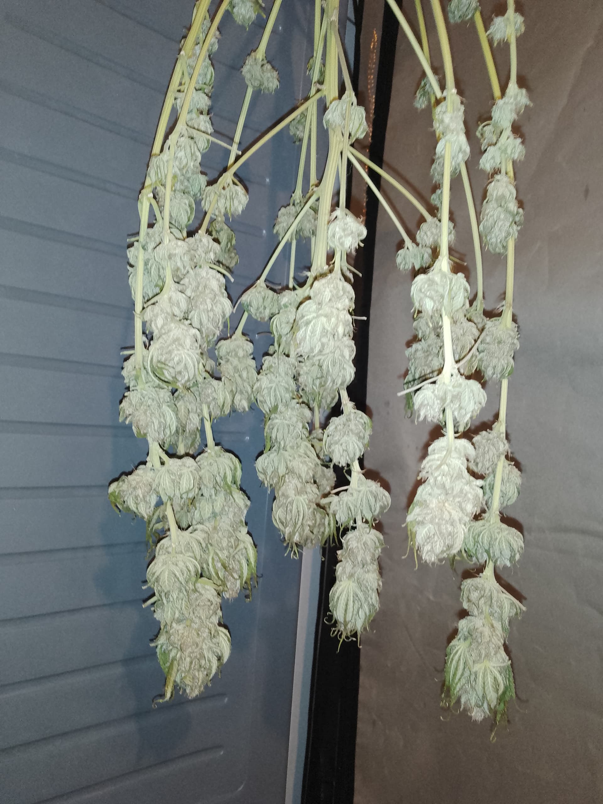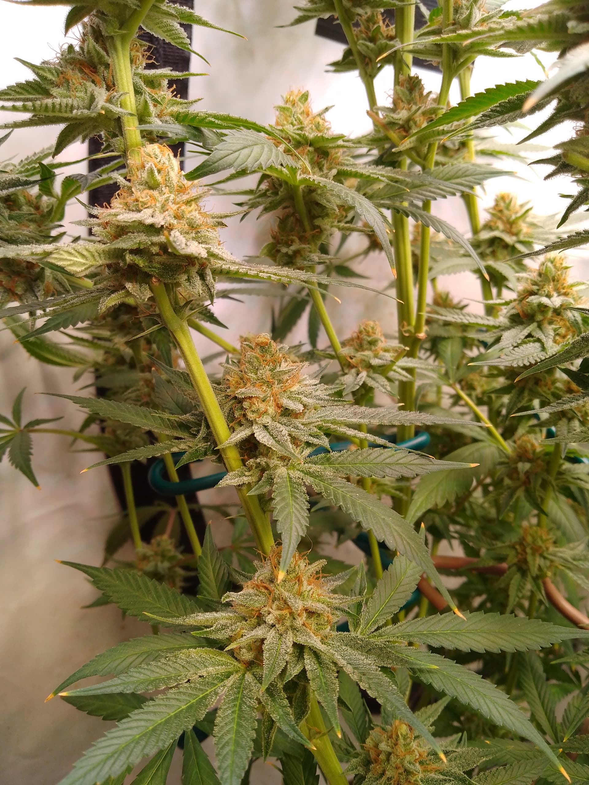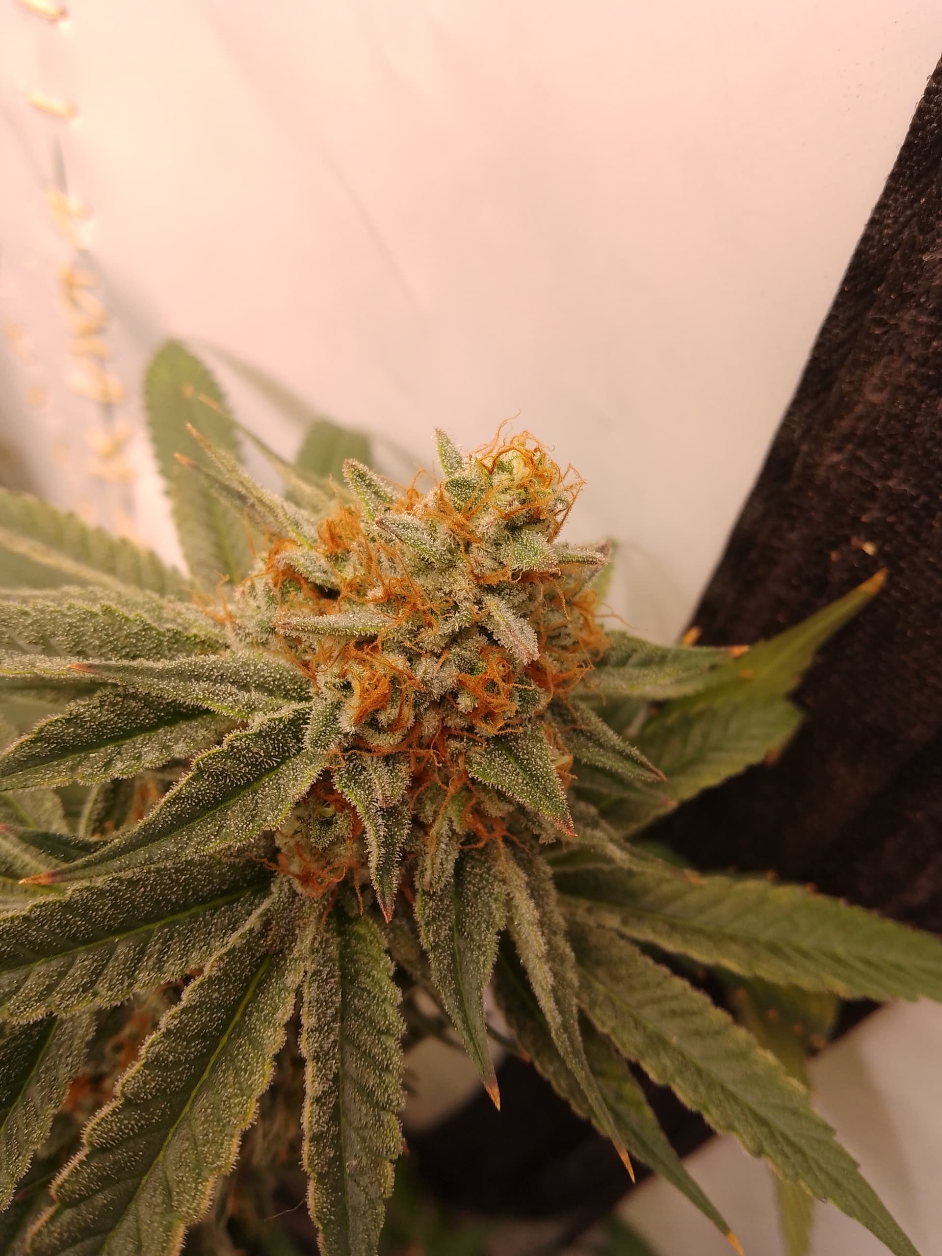 äußerlich sieht die sehr fertig aus aber so ganz bin ich mit den Trichomen nicht zufrieden. Bernstein bisher nur auf den Blättern aber will auch nur so ganz bissl.