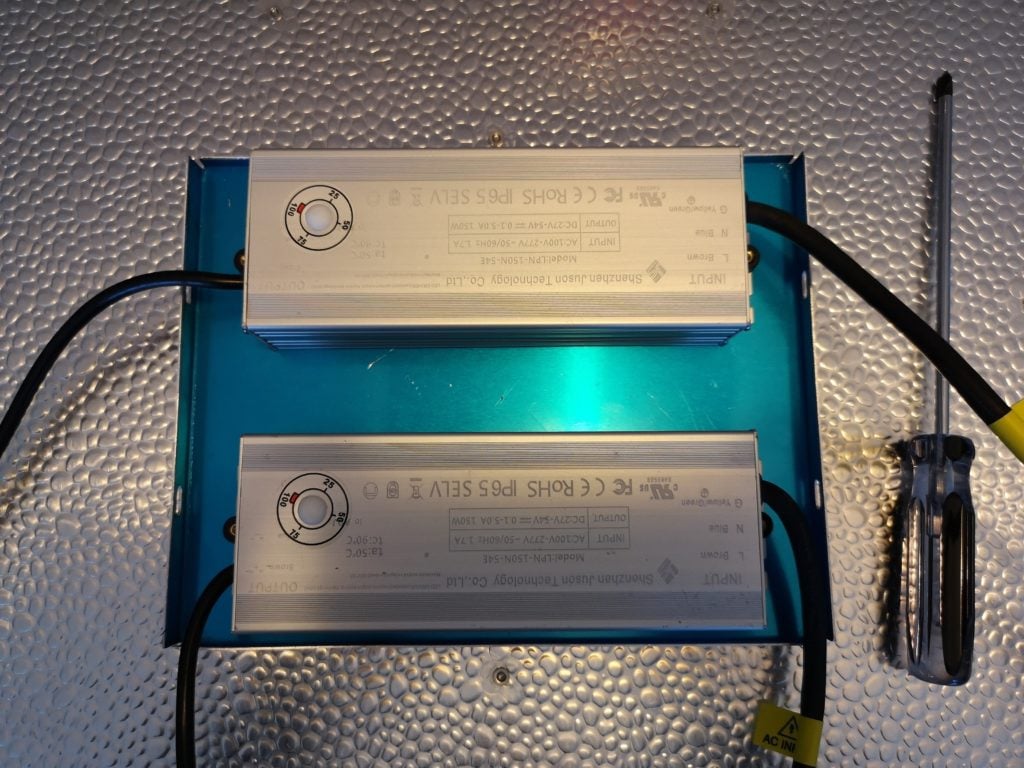 Da die LED Treiber noch auf dem Deckel der Lampe montiert werden müssen, sollten hier vorerst alle Schrauben entfernt werden, damit die Treiber eingesetzt und verschraubt werden können.