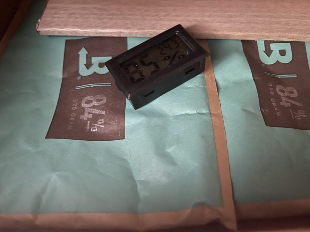 Was die Benutzung des Humidors für Graszwecke teuer macht, sind die Boveda Befeuchtungspäckchen, von denen man relativ viele braucht. Da der Schrank ein großes Volumen hat, muss man entsprechend auch viel Luft regeln. Die zwei 320g 84% Bovedas kosten jeweils 23 EUR bei Amazon!