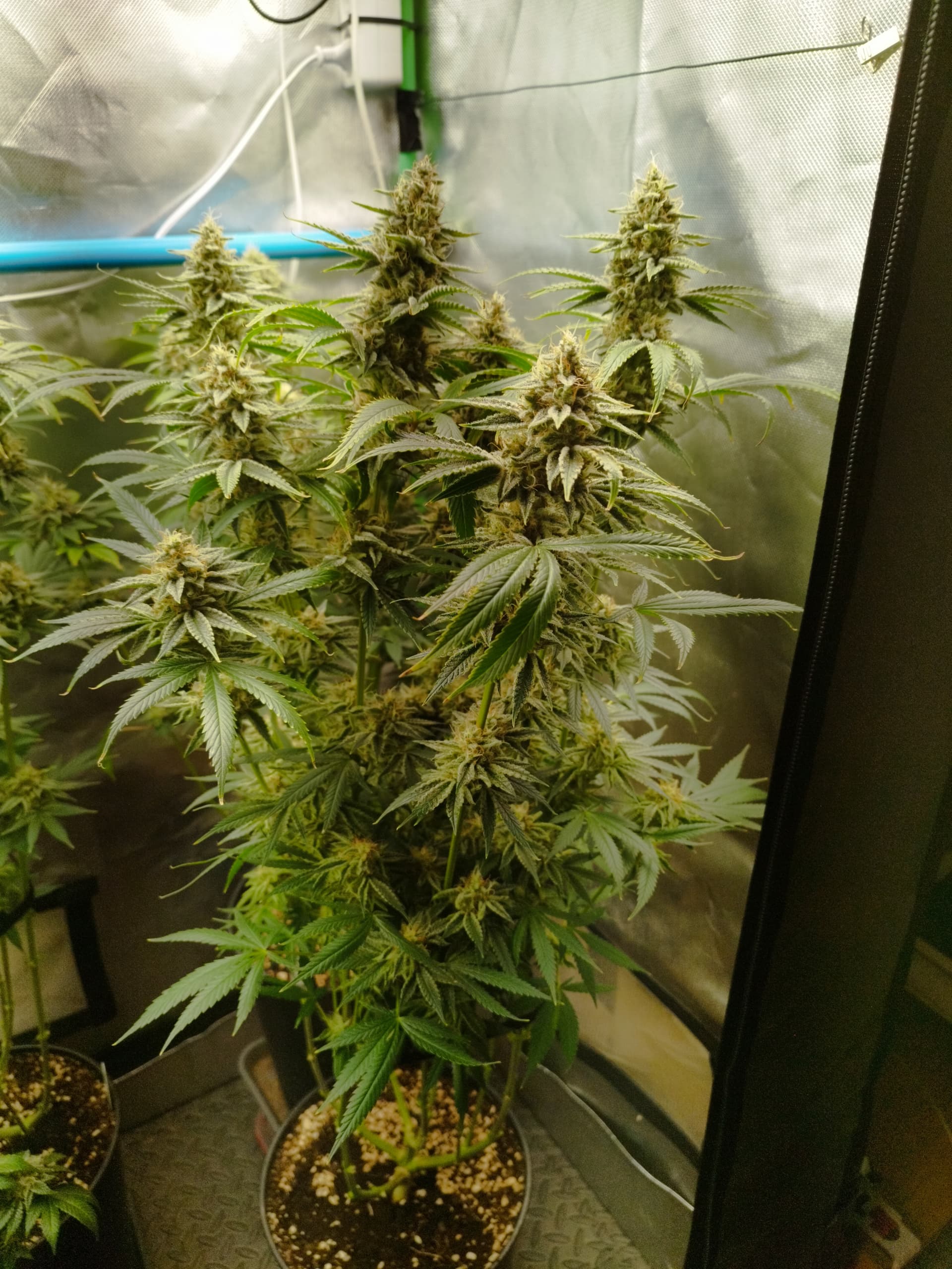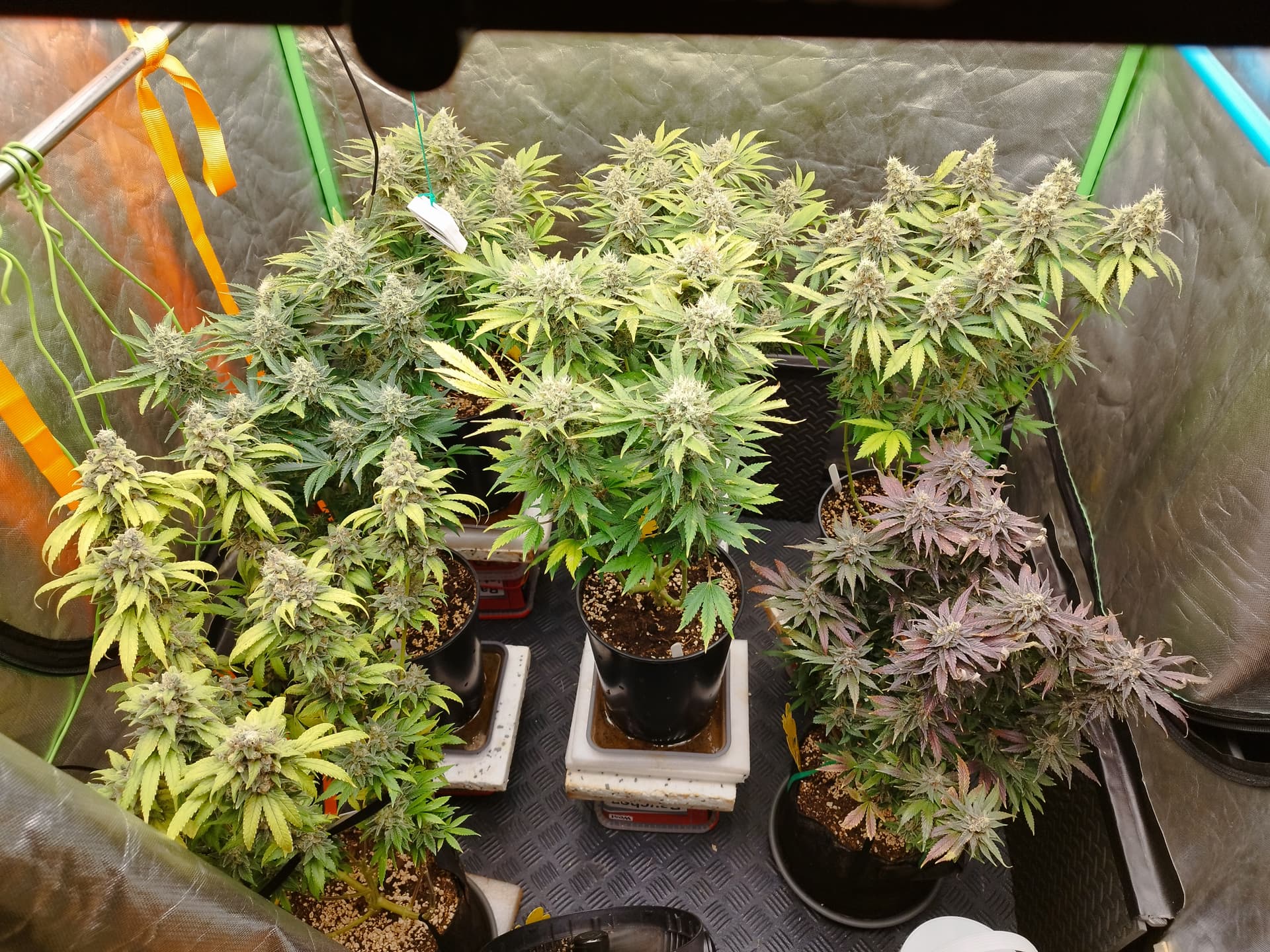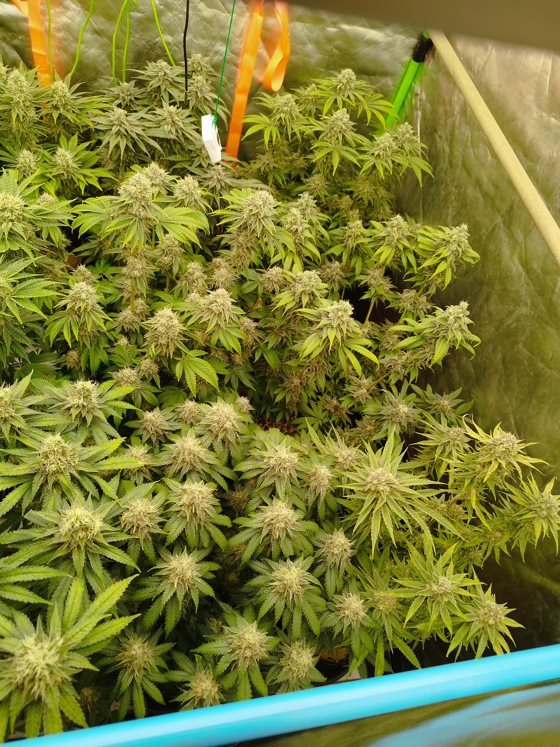Nee, die hab ich immer wieder höher gestellt. Da die Zeltwände näher sind als im 120x120 brauch und kann ich nicht so nah dran gehen. Ich habe da drin noch eine „Frankenstein“ Lampe die ich selbst zusammengestellt habe. Diese Lampe ist aber nicht so gut wenns um Lichtstärke einstellen geht, die einen Komponenten kann ich nur Ein und Aus schalten und das sind dann direkt 120W. Insg. hat die Lampe ca. 240W, dadurch muss ich eine Mindesthöhe einhalten sonst bekommen die zuviel Licht. Die haben jetzt in der Blüte ihre 860ppfd bekommen obwohl meine zweite Lampe (200W Phlizon) gerade mal auf 50% lief.