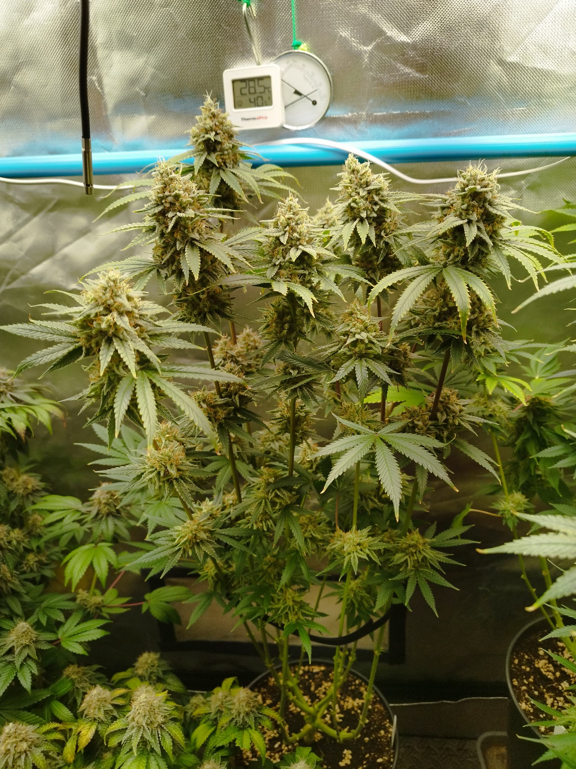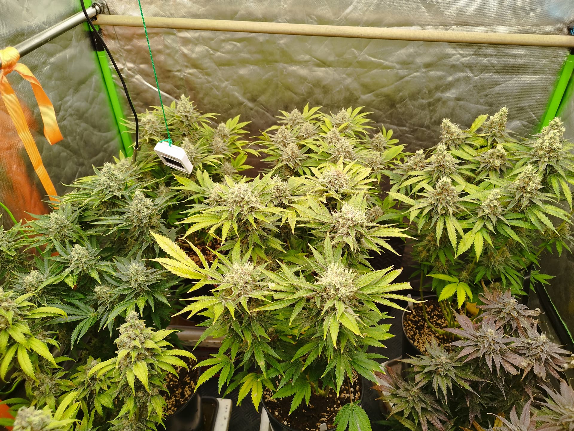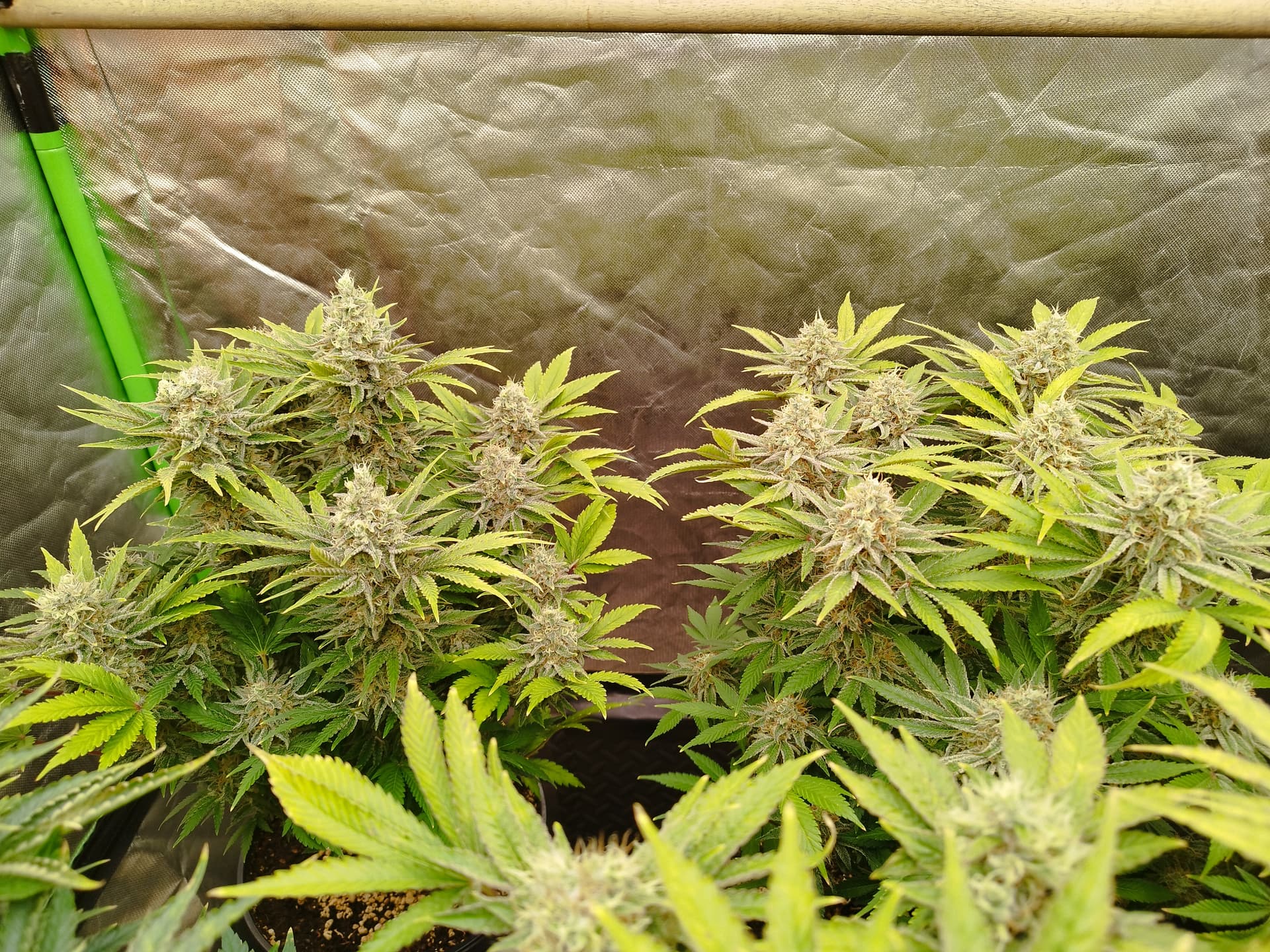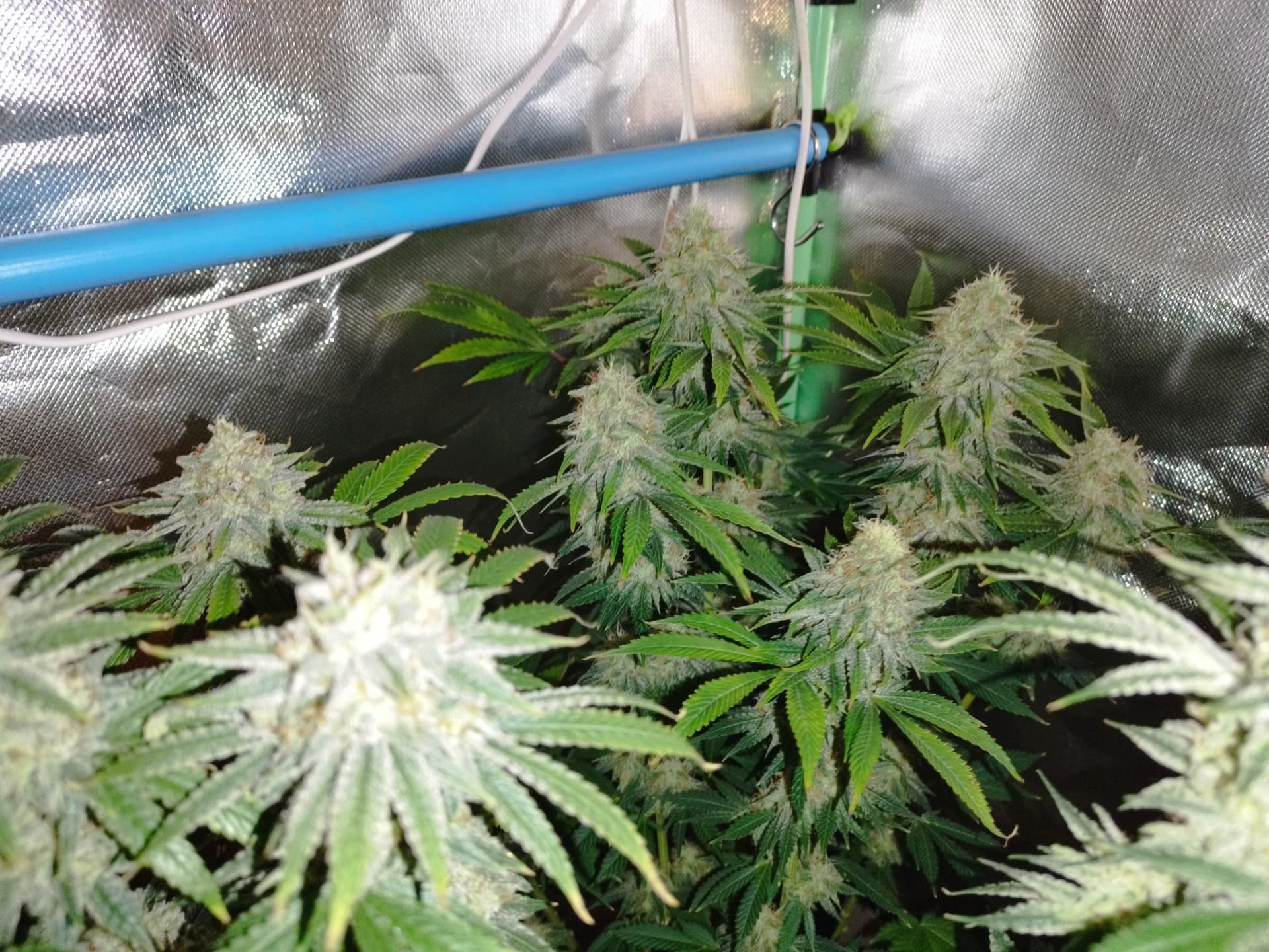 Nee, die hab ich immer wieder höher gestellt. Da die Zeltwände näher sind als im 120x120 brauch und kann ich nicht so nah dran gehen. Ich habe da drin noch eine „Frankenstein“ Lampe die ich selbst zusammengestellt habe. Diese Lampe ist aber nicht so gut wenns um Lichtstärke einstellen geht, die einen Komponenten kann ich nur Ein und Aus schalten und das sind dann direkt 120W. Insg. hat die Lampe ca. 240W, dadurch muss ich eine Mindesthöhe einhalten sonst bekommen die zuviel Licht. Die haben jetzt in der Blüte ihre 860ppfd bekommen obwohl meine zweite Lampe (200W Phlizon) gerade mal auf 50% lief.