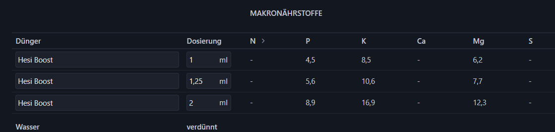 Ab jetzt gibts 1 Düngetag pro Woche. Ich denk, so krieg ich das besser auf die Reihe.