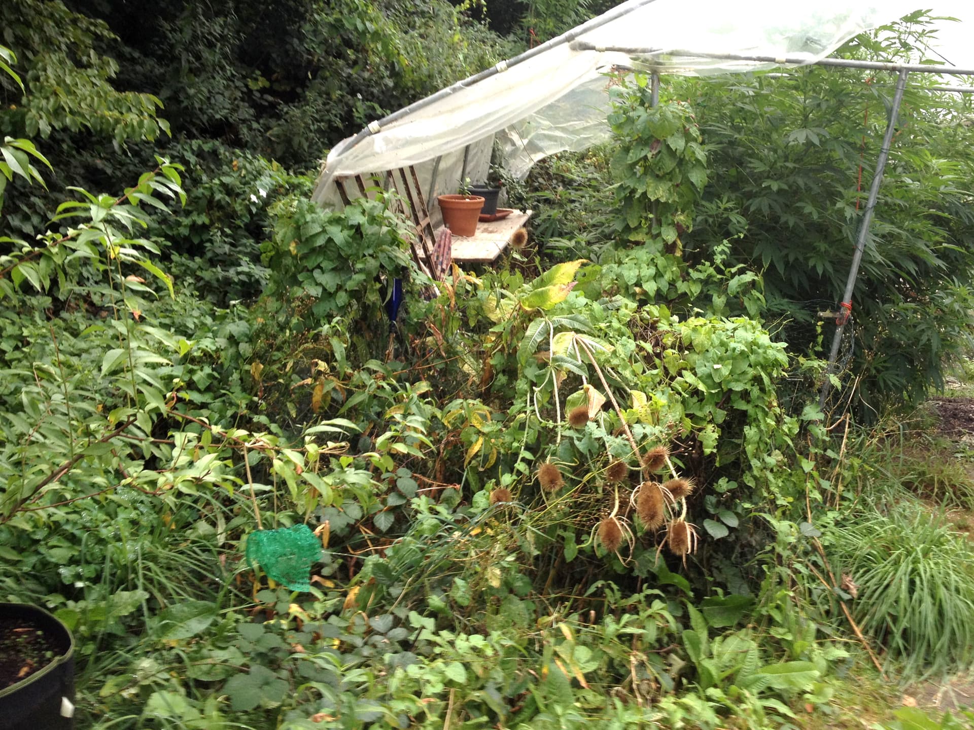 Zum Glück liegt das hier alles gut versteckt. Keine Pflanze ist von öffentlichem Grund aus zu sehen.