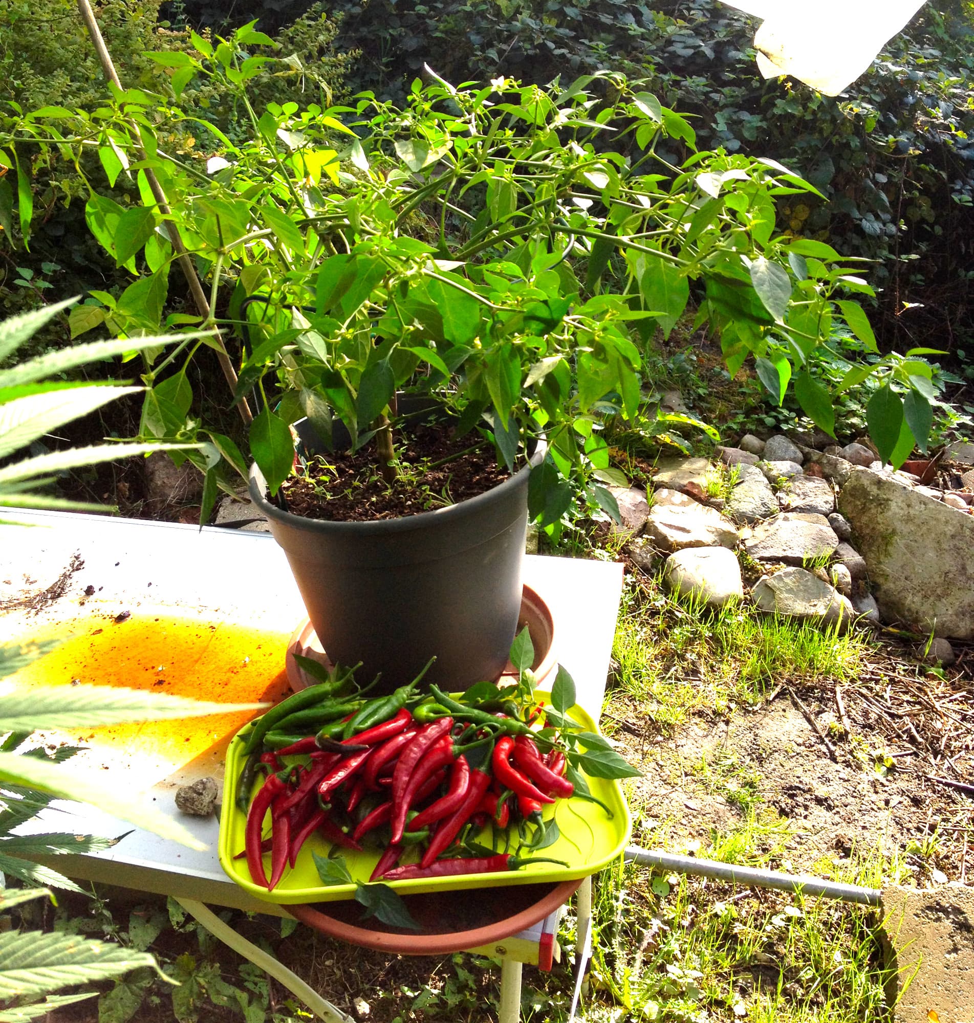 Heute hab ich die Cayenne-Chili abgeerntet, damit sie für dieses Jahr Feierabend machen kann.