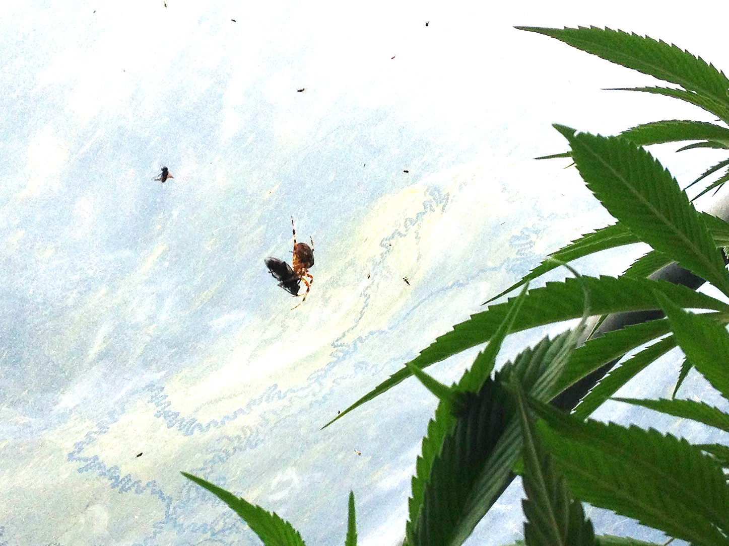 Bester Platz! Da verirren sich dauernd Insekten. Und da die meisten zu blöde sind, zur Seite wieder rauszufliegen, haben die achtbeinigen Ladies mehr als genug zu fressen.