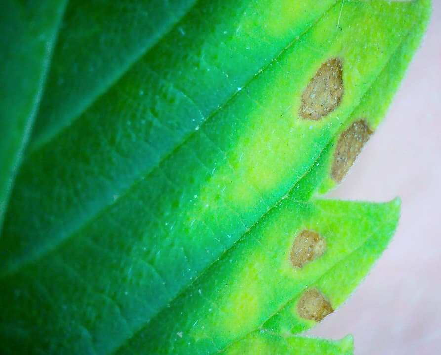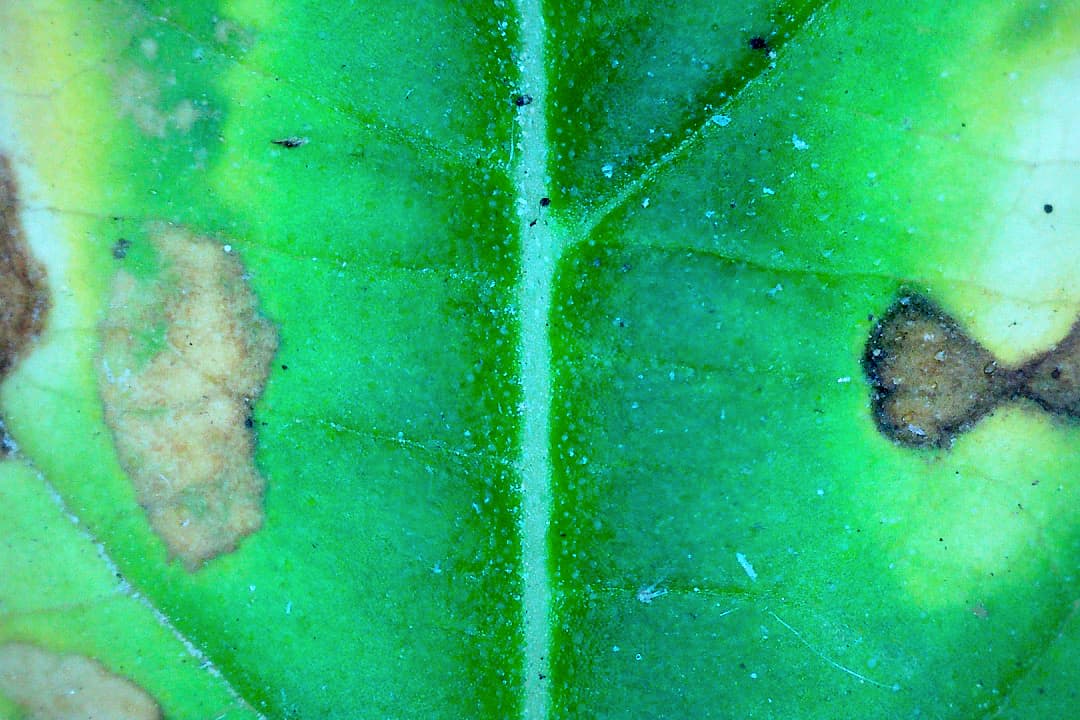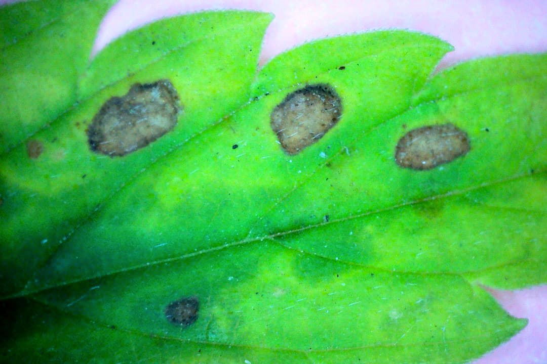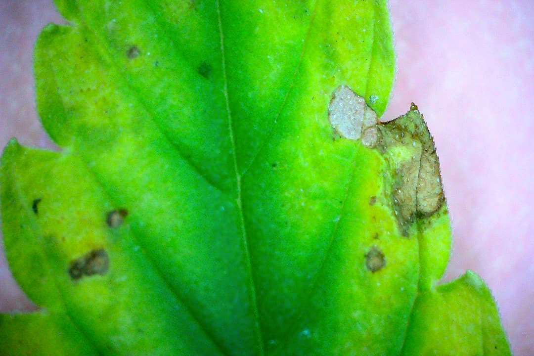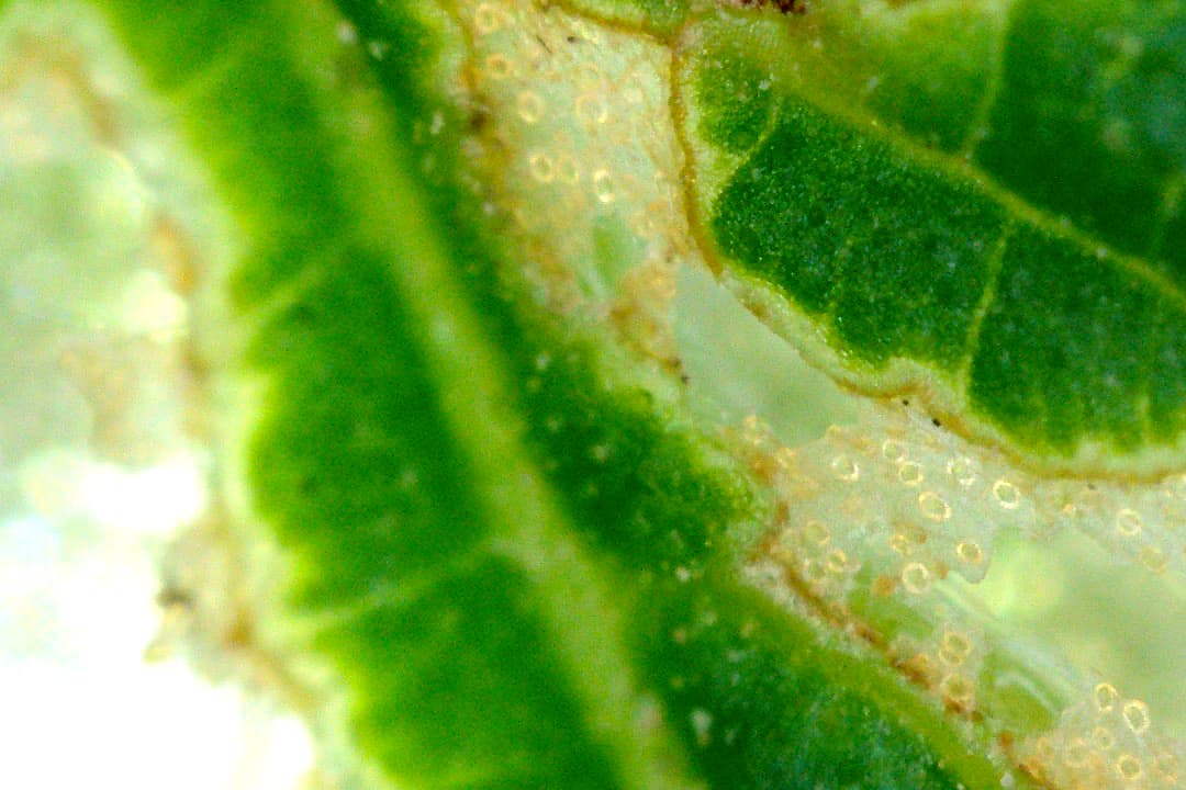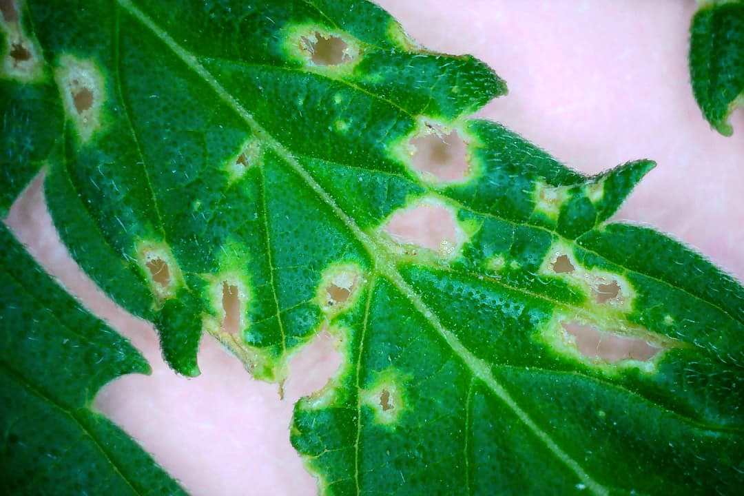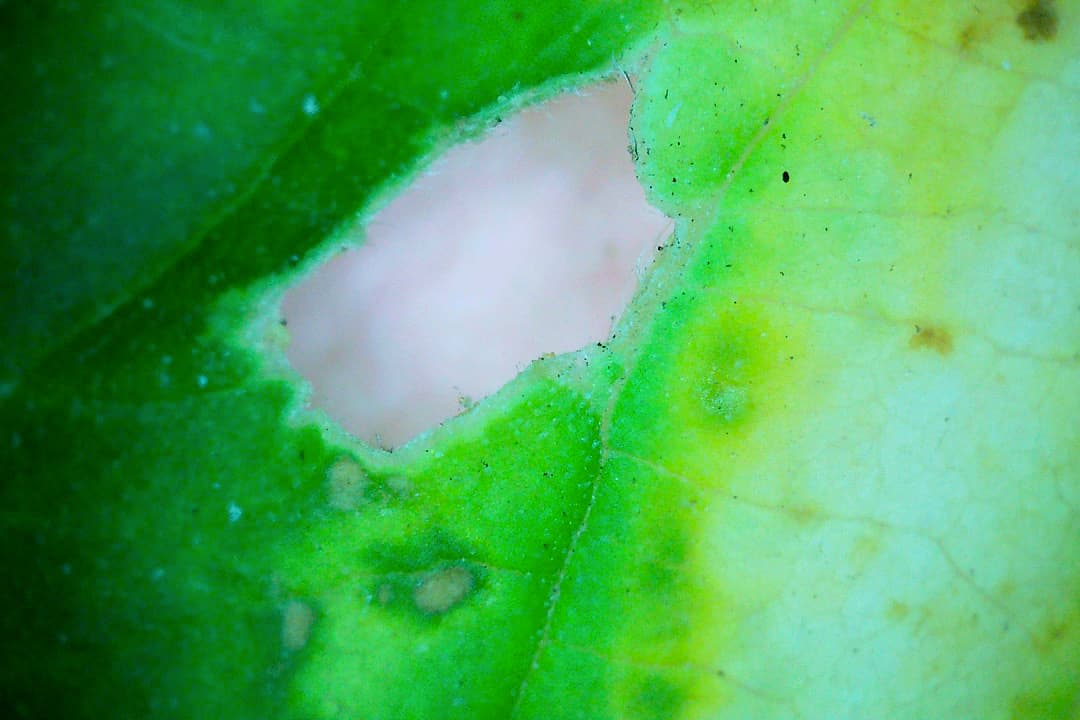 Bei einigen sieht man gut den „Fensterfraß“, d.h. eine feine Membran ist noch da. Erdfloh-Löcher können auch wieder heilen.