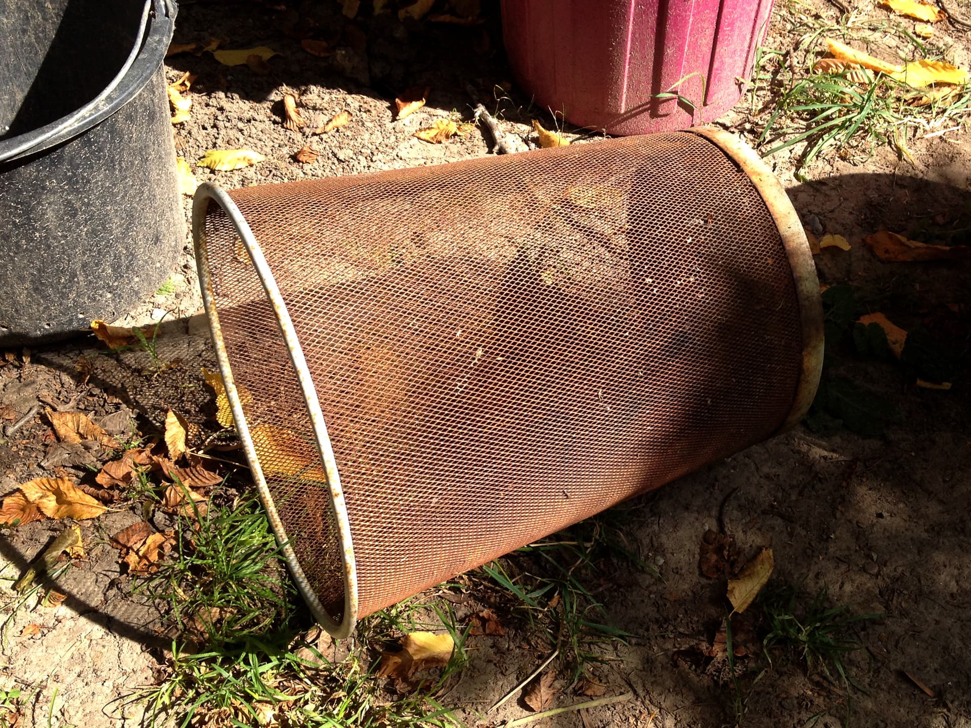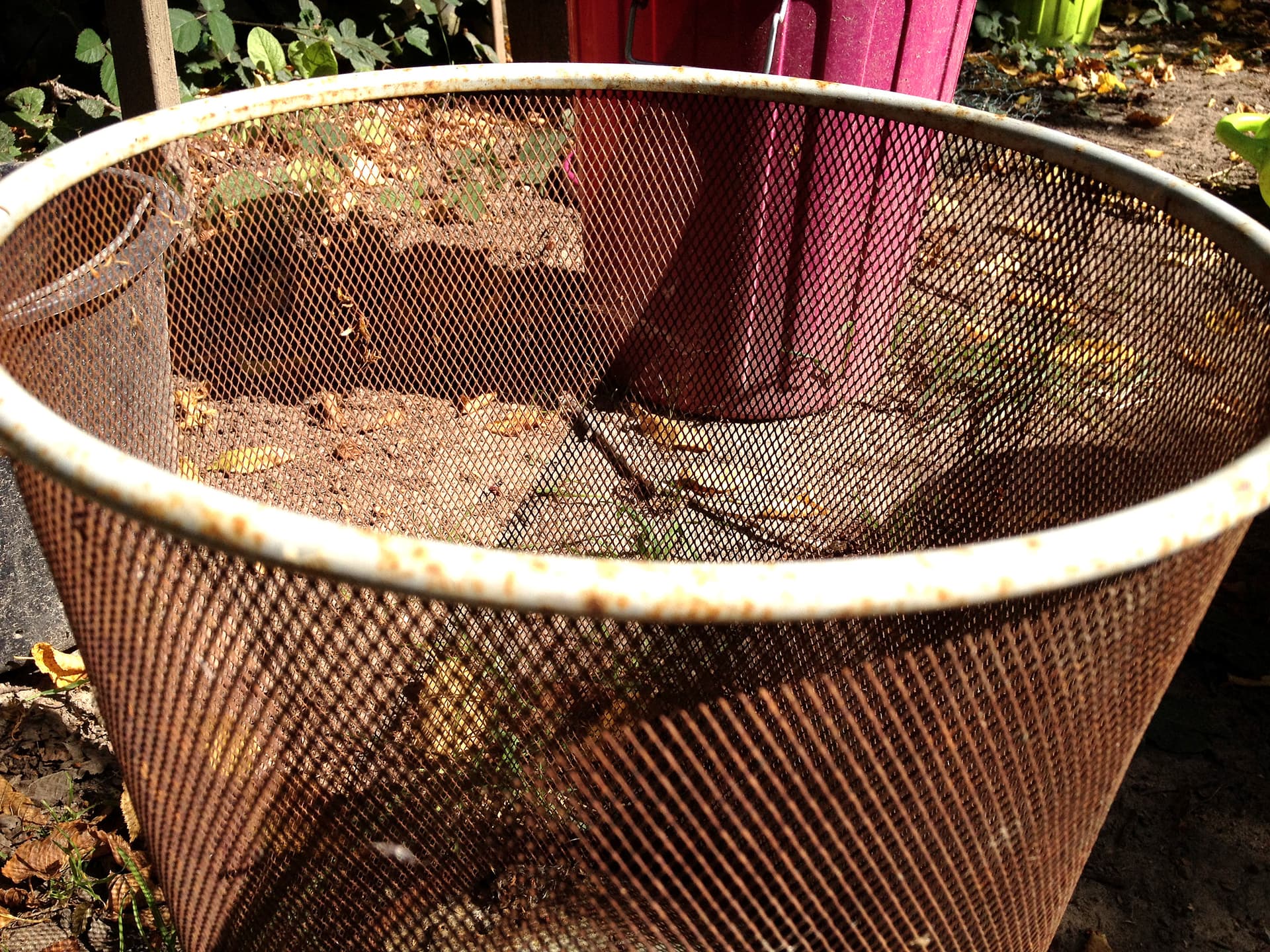 Da ich sie nicht sprühen will, reicht das grobe Sieb: der bewährte Ikea-Drahtpapierkorb ![]()