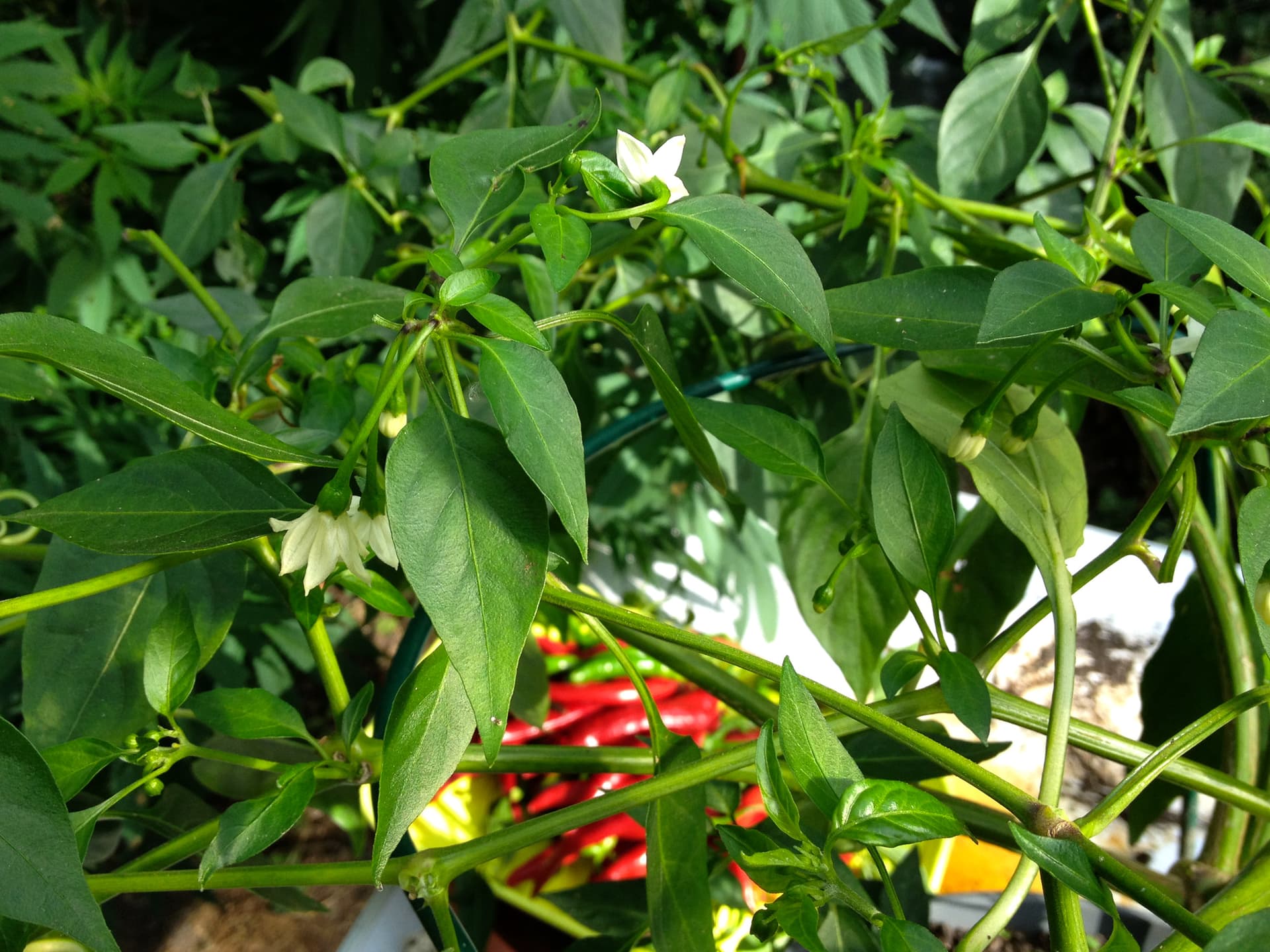 [Edit] Ich wollte die Chili jetzt irgendwann zurückschneiden und dann reinstellen für den Winter. Jetzt seh ich, dass die schon wieder blüht O.o …