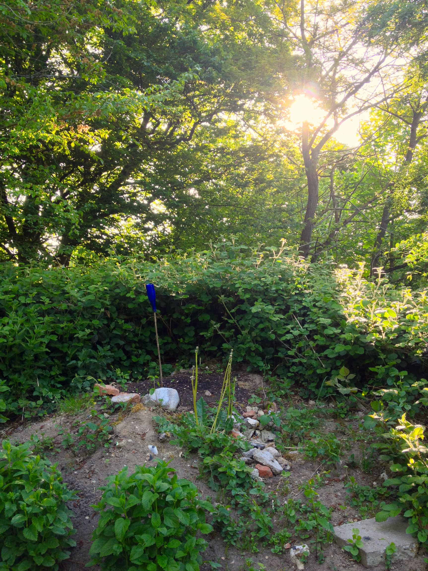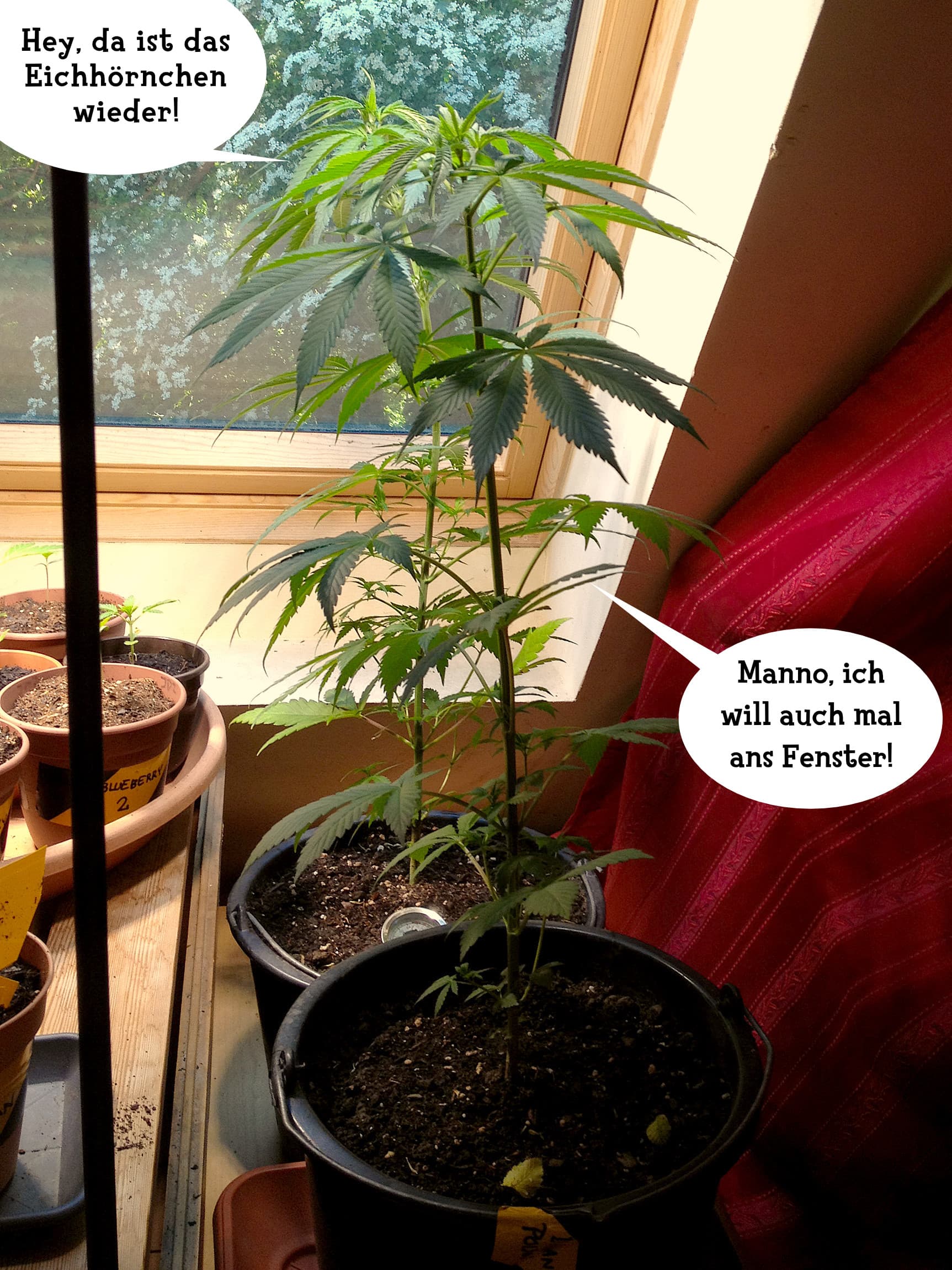 Der Hügel heut morgen um 8. Der beste Sonnenplatz hier oben bei mir. Ich denke, da werde ich eine (Photo) Blue Dream hinstellen, die kann ja auch sehr groß werden, sagt man. So kann sie vielleicht noch im Höhencontest mitmischen.