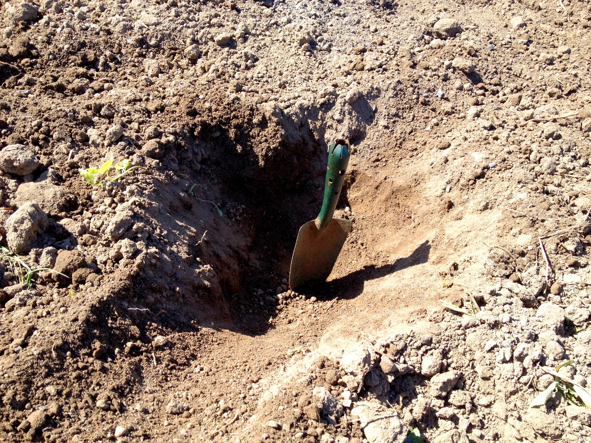Weiß nicht, wie tief man da kommt. Da kann ich nur Löcher machen und mit guter Erde füllen … ich hatte gehofft, ich könnte die Erde dort verwenden.