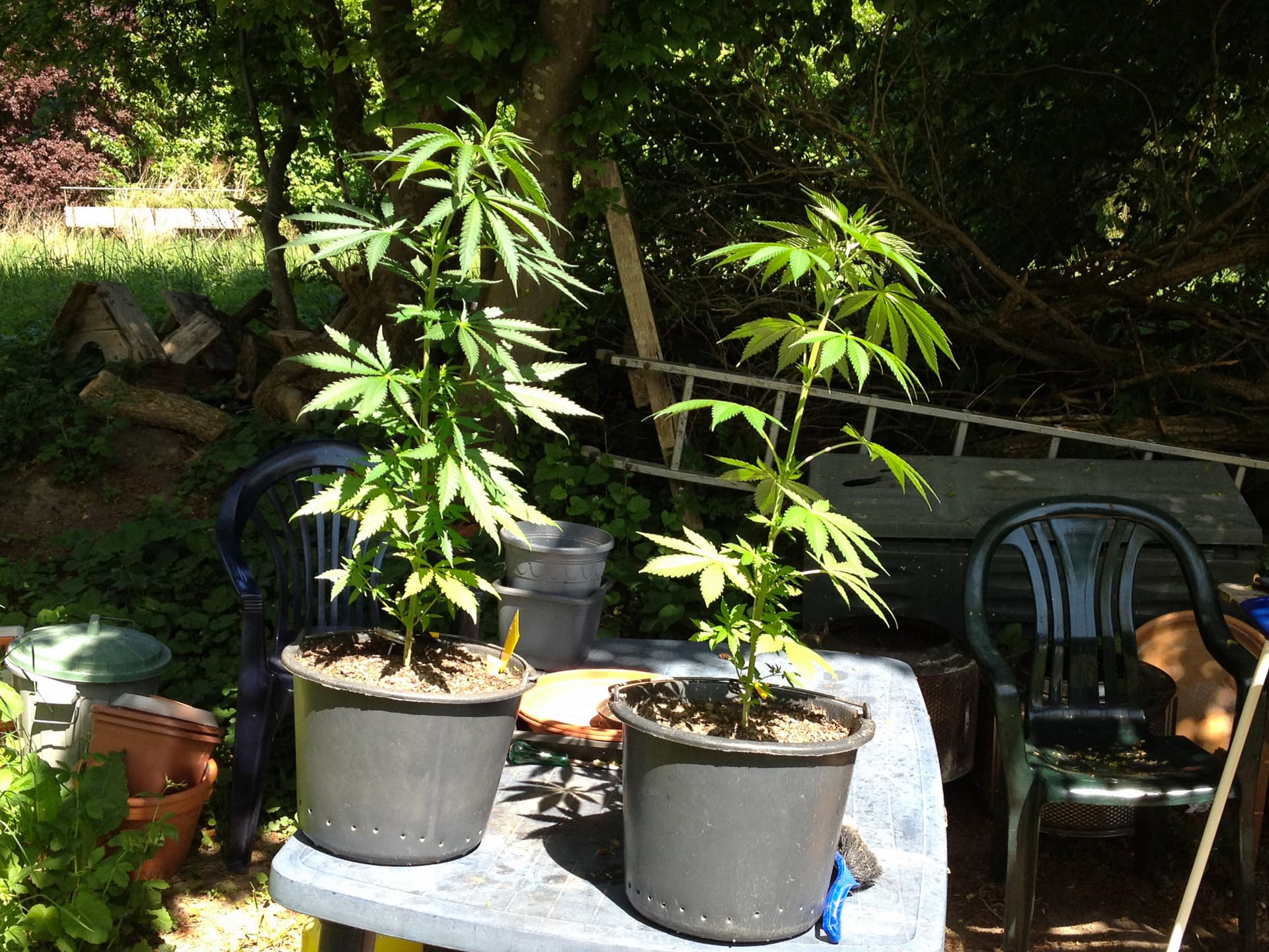 Links Mexican Sativa, rechts Durban Poison. Interessant, wie sich die verschiedenen Wuchsformen langsam herausbilden. Sie sind jetzt 66 und 60 cm hoch