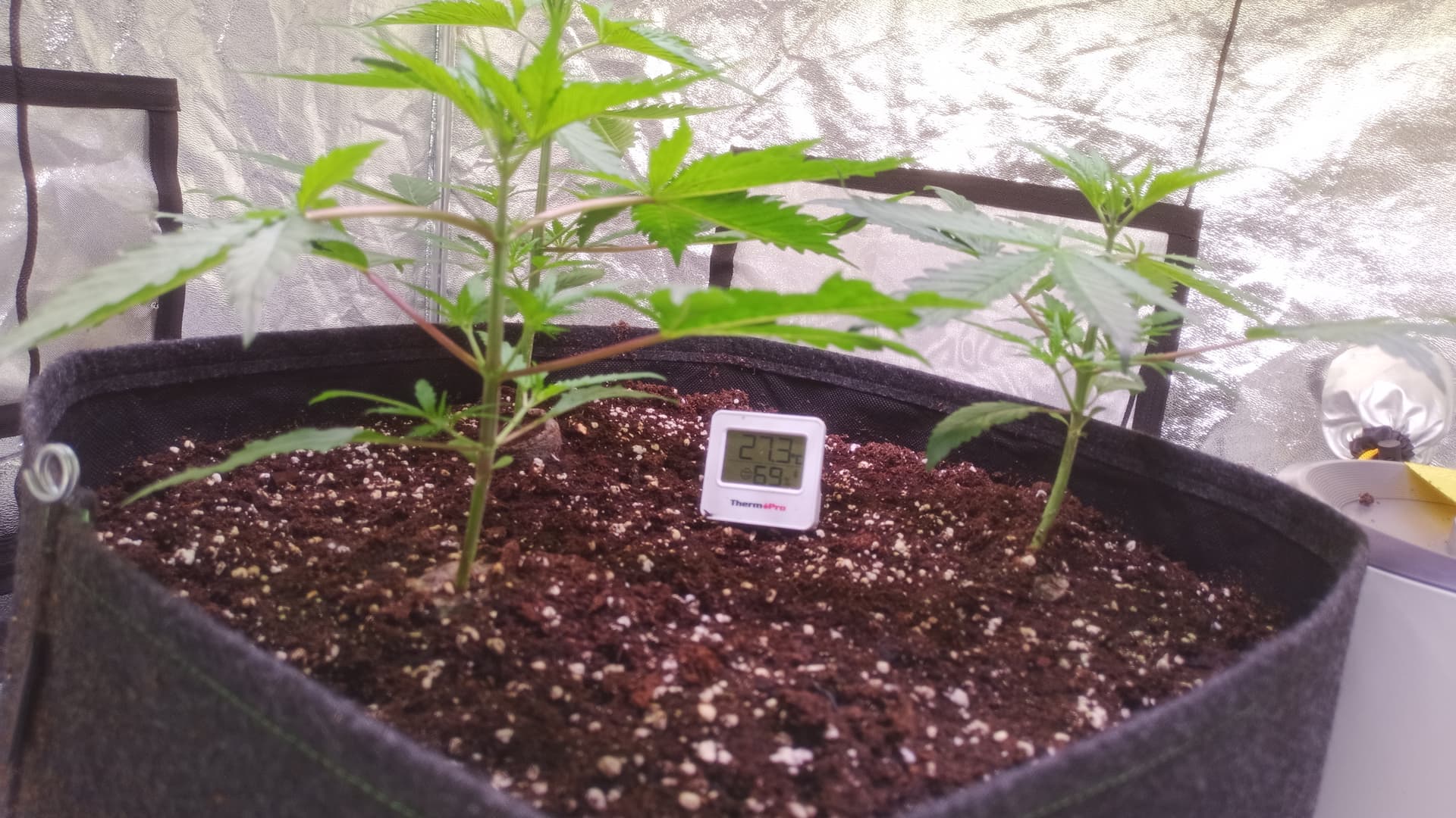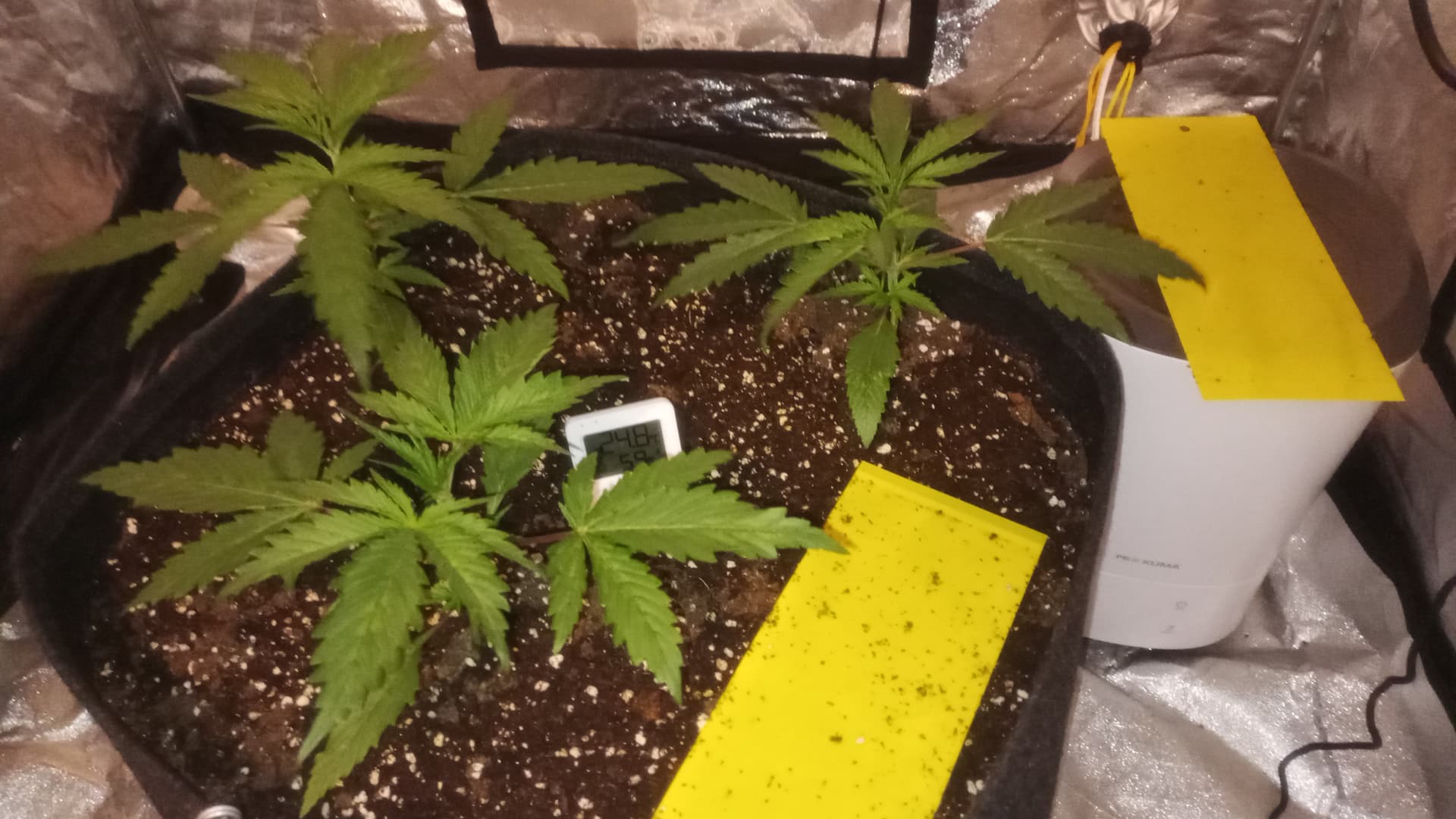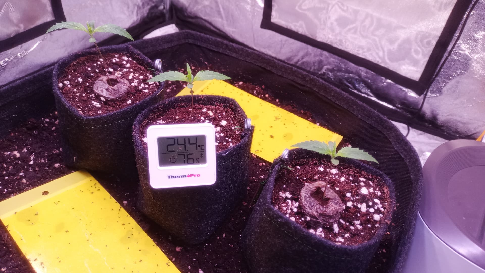 Nur kurzes Photoupdate. Bisher siehr alles gut aus, die Mücken sind auch so gut wie weg. Leider ist mir das Hygrometer auf die eine Pflanze gefallen, aber die is Stabil