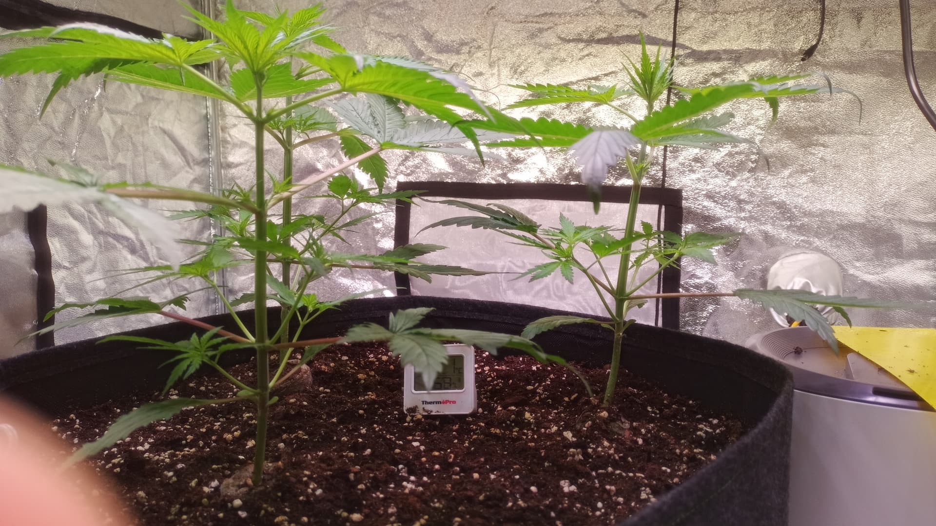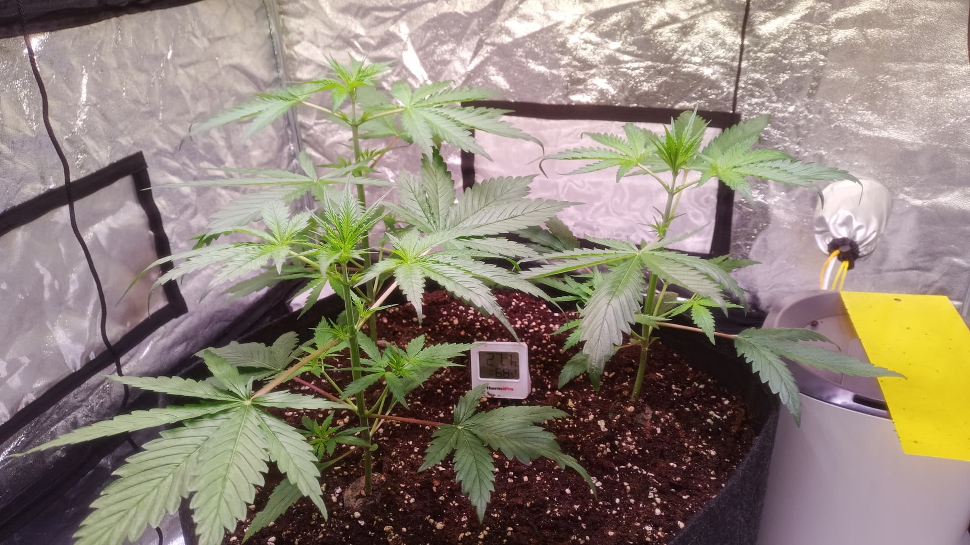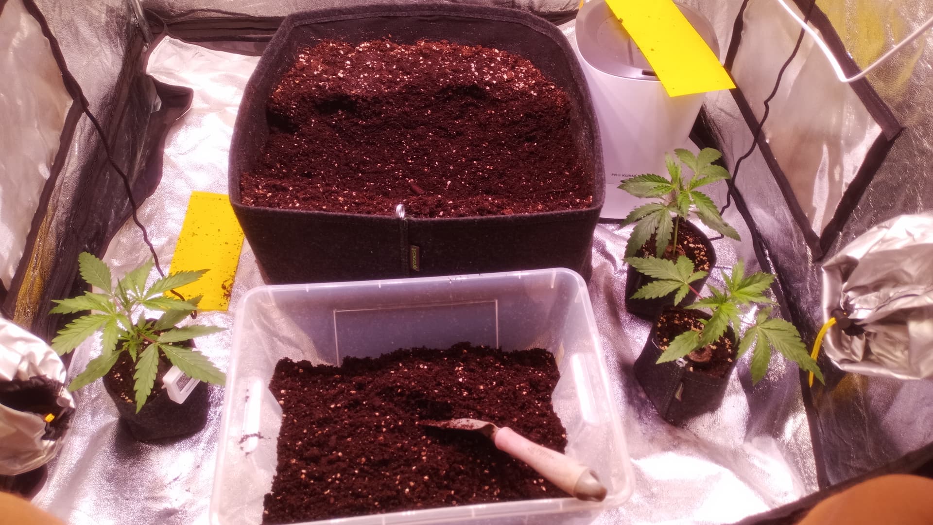 Nur kurzes Photoupdate. Bisher siehr alles gut aus, die Mücken sind auch so gut wie weg. Leider ist mir das Hygrometer auf die eine Pflanze gefallen, aber die is Stabil