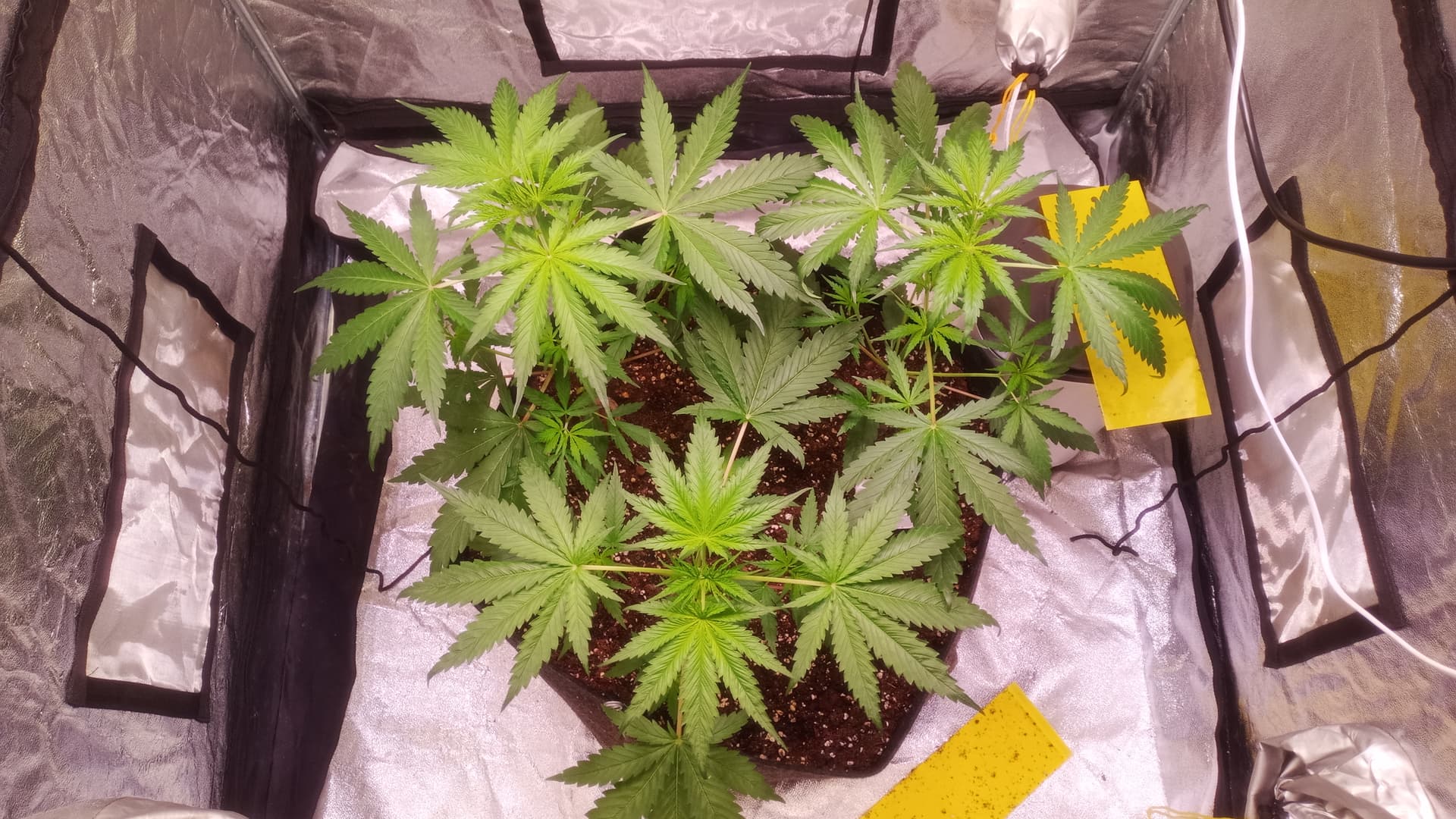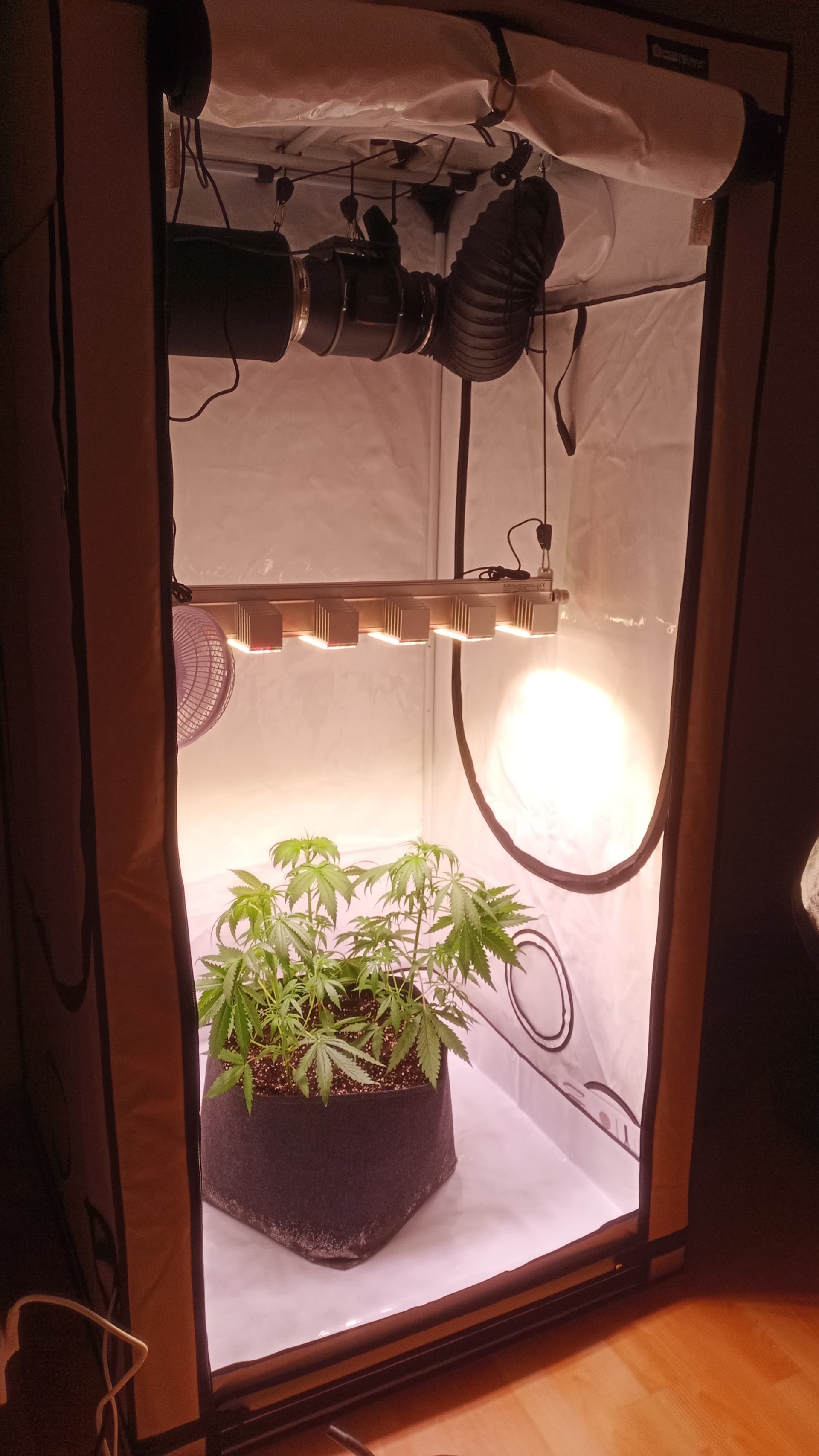 Das war so ab der 4 Blütewoche, bin von gesamt 300W auf 240W zurück gekrebst. Ich war viel zu nah an den Pflanzen. Hat ihnen aber nicht so viel ausgemacht.