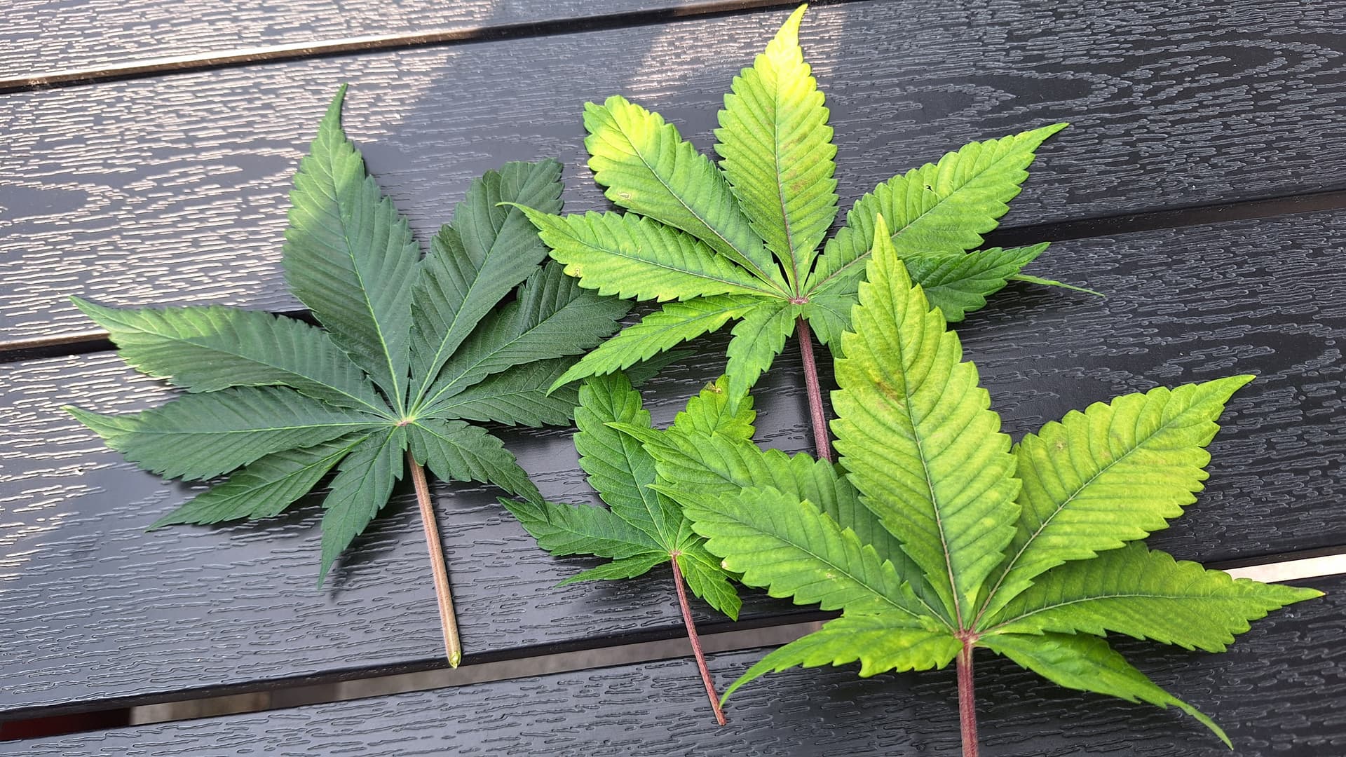 Zum Vergleich, links das Blatt von der Pflanze die beim LST den Haupttrieb verloren hat.