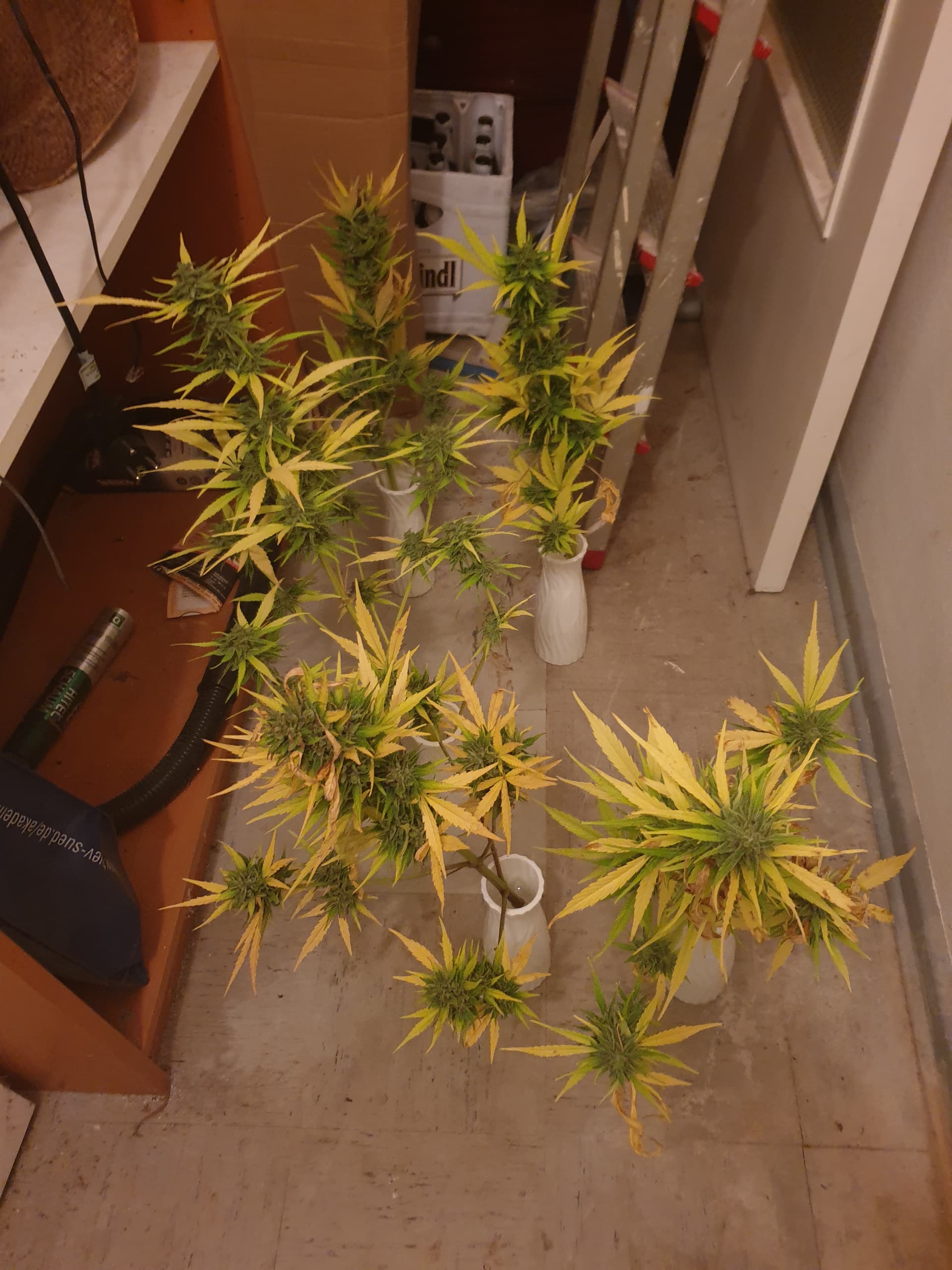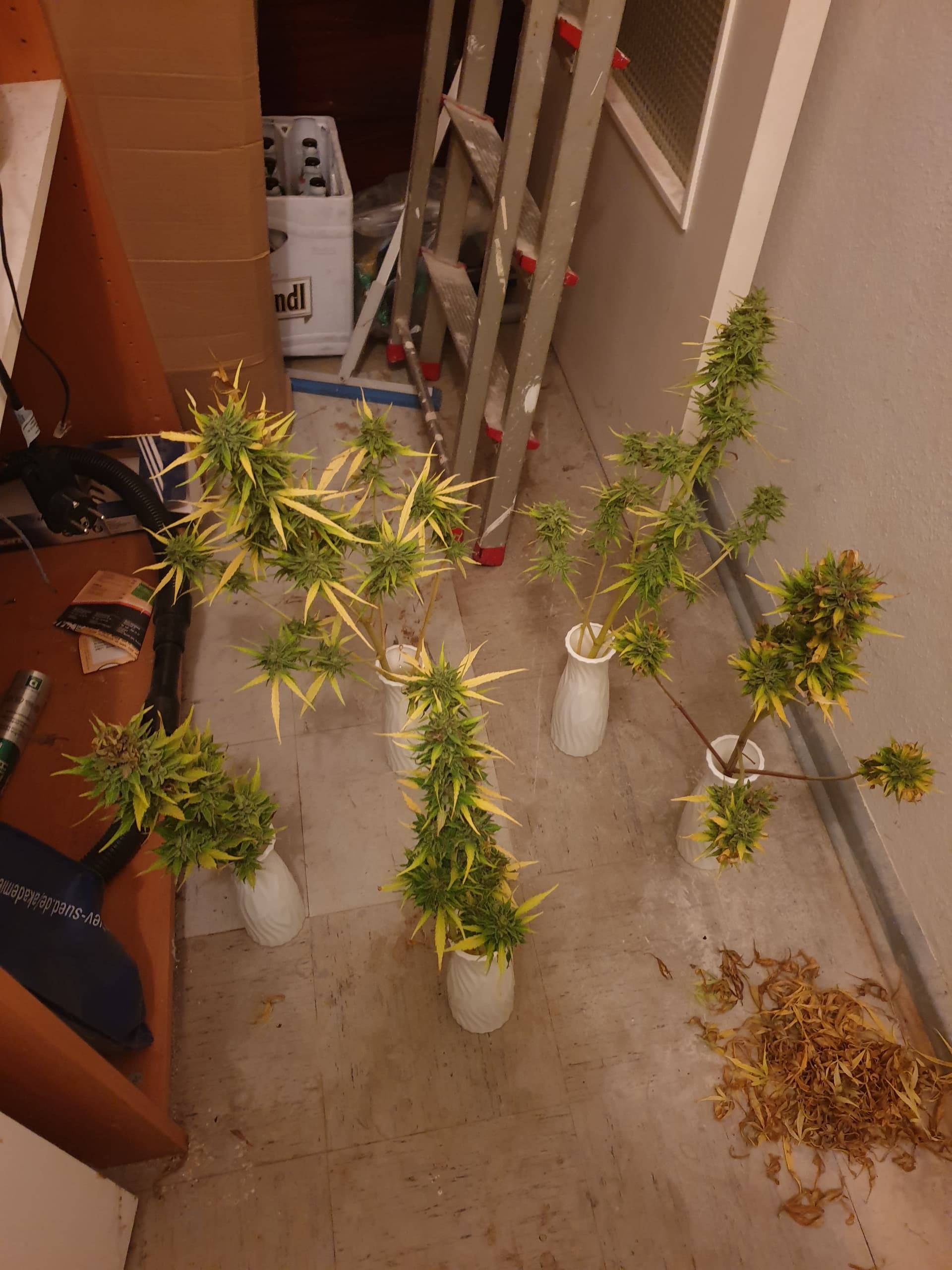 Problem bei diesem grow ist ich fliege 2 Tage nach geplanter Ernte in Urlaub 5 Tage und da wollte ich dann einfach aufhängen und wenn ich wieder da bin Maniküren , ich hätte ehrlich gesagt bisschen Schiss die jetzt ne Woche in Ner Vase alleine stehen zu lassen bei dem anderen hab ich halt schon Erfahrung wie lange alles ca dauert
