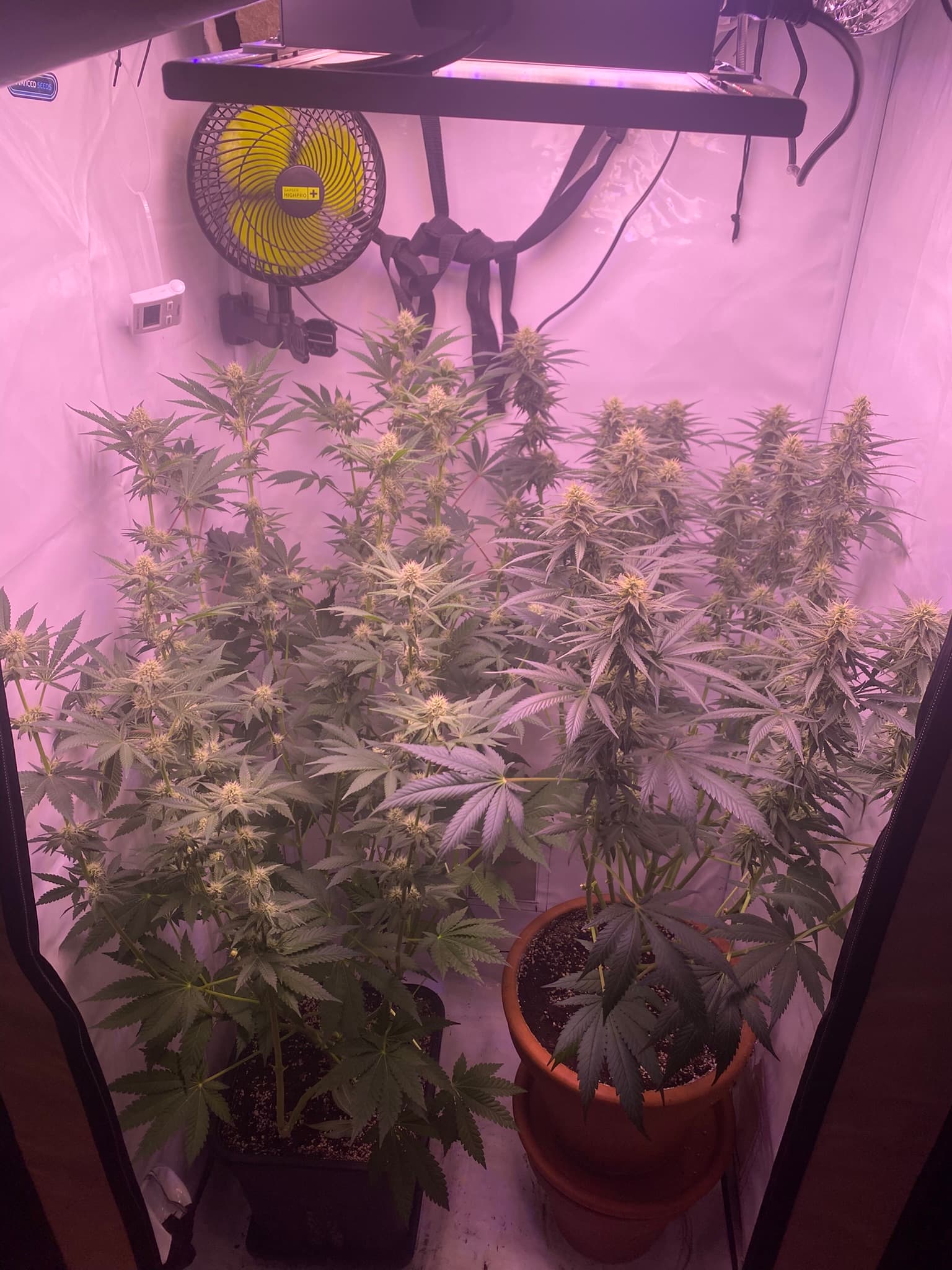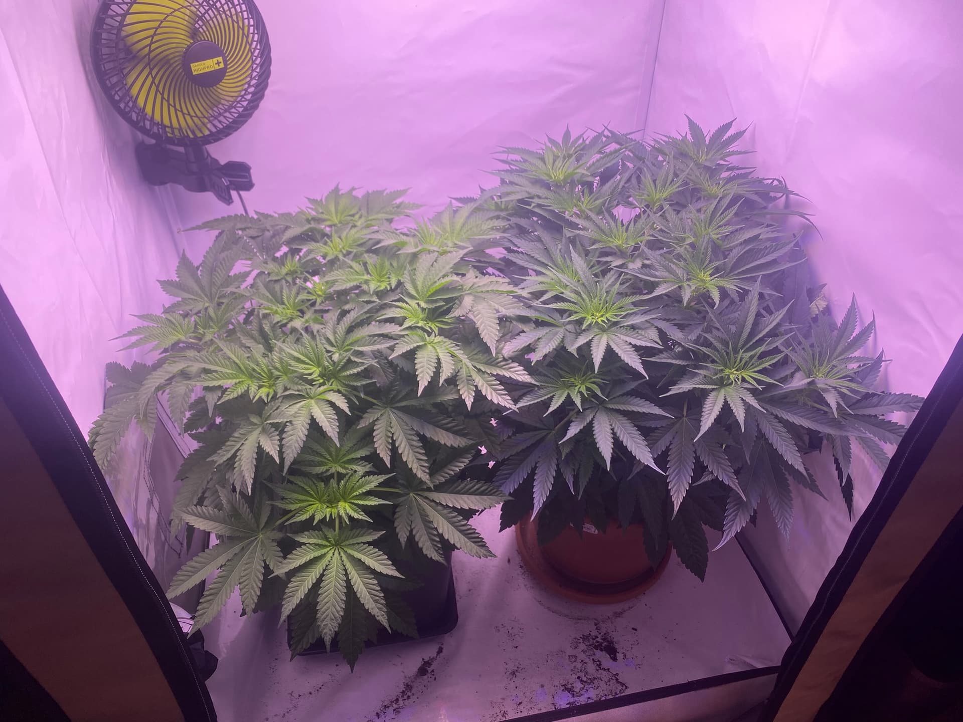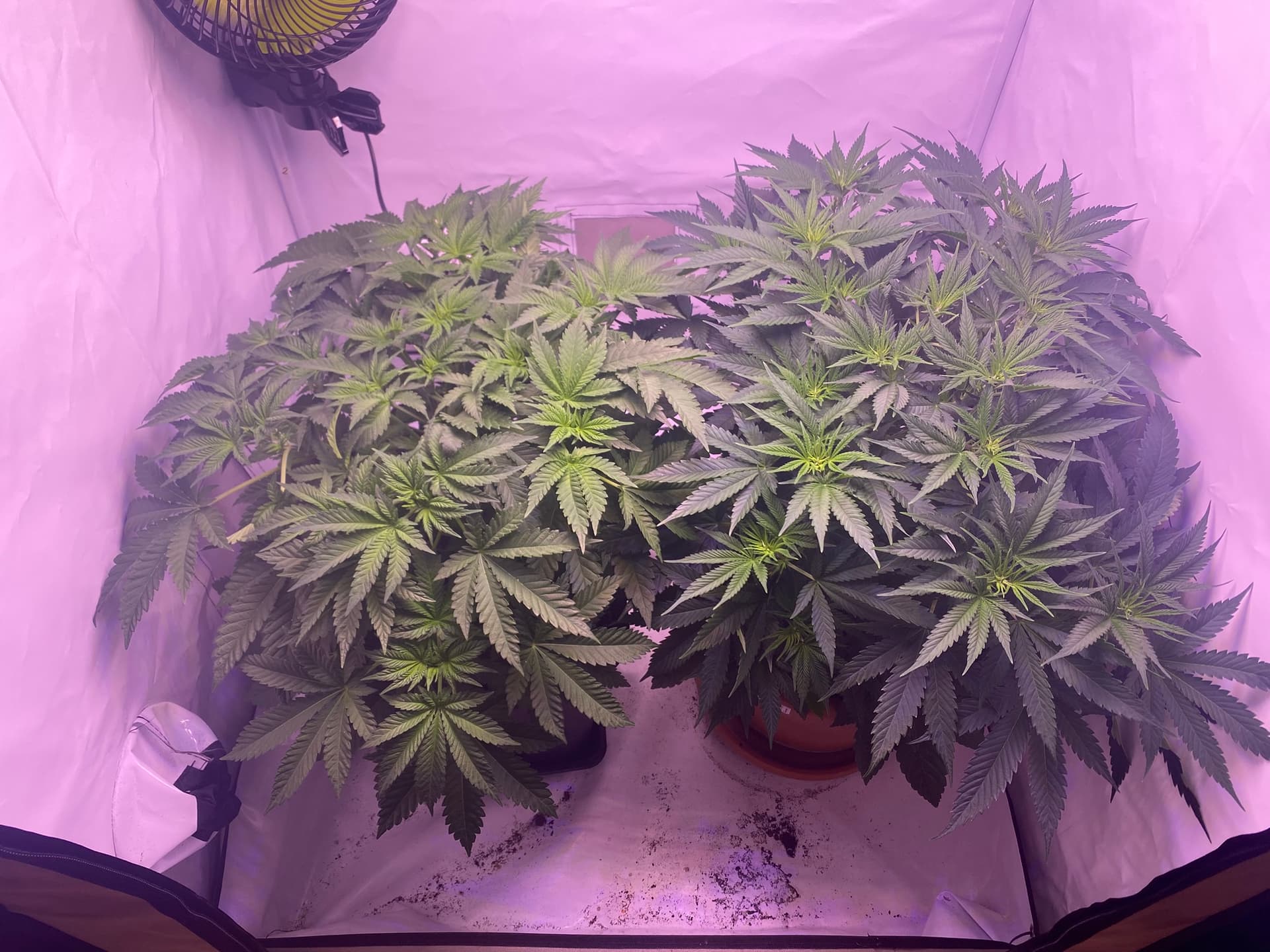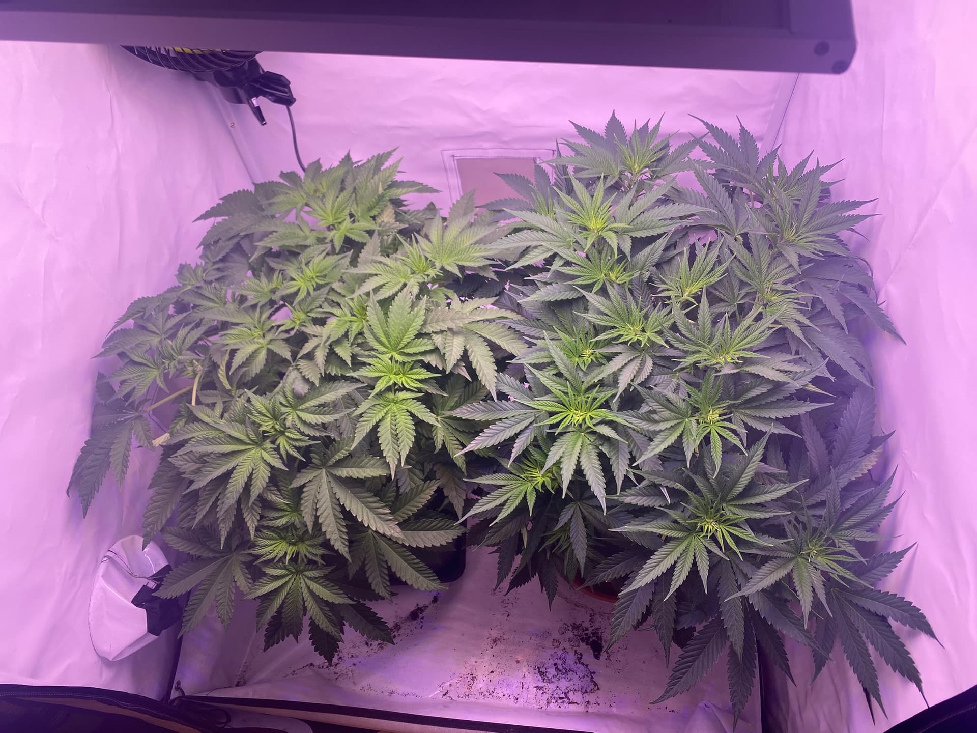 Beide sind ungefähr 4 Wochen vom Samen bis Blütenbeginn in der Vegiphase gewesen.