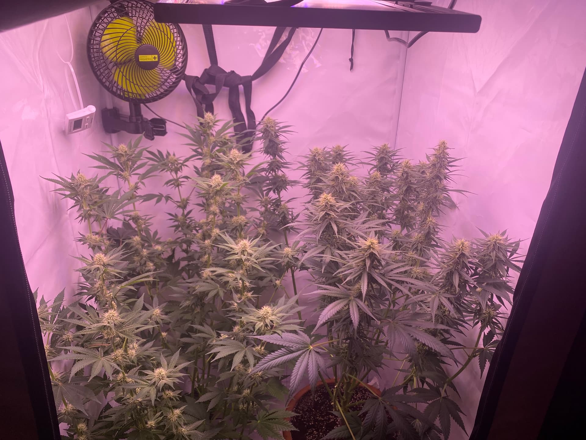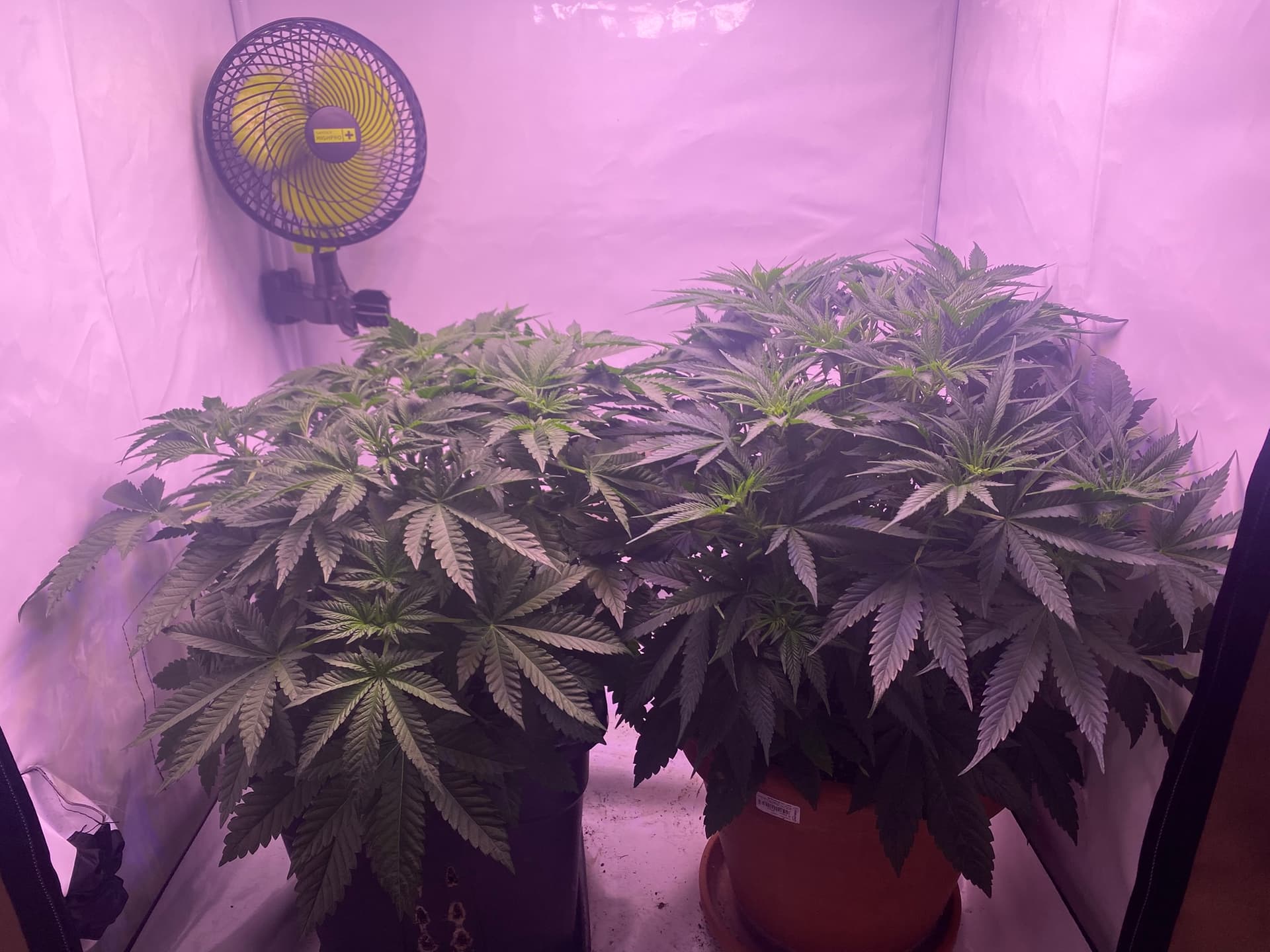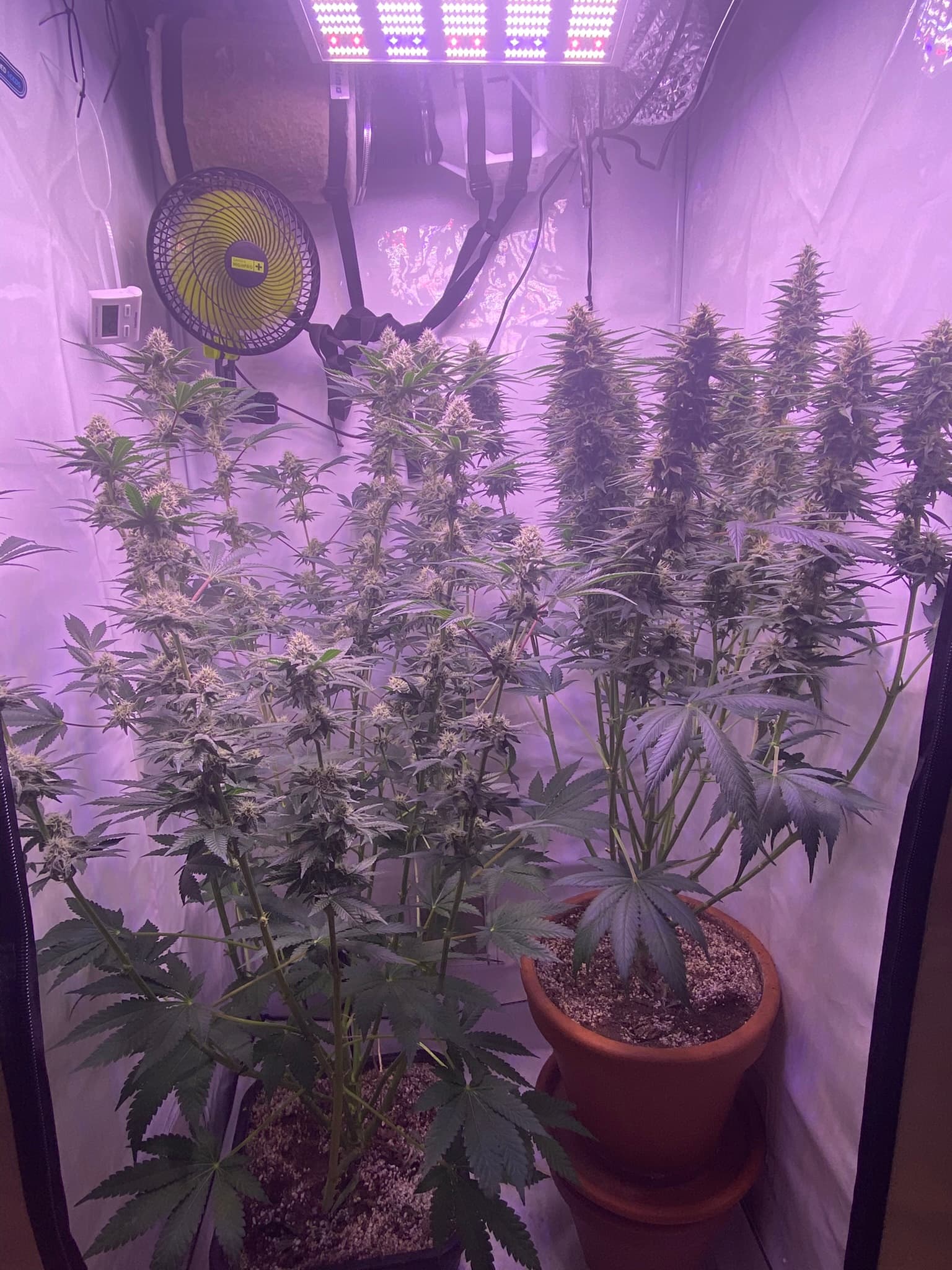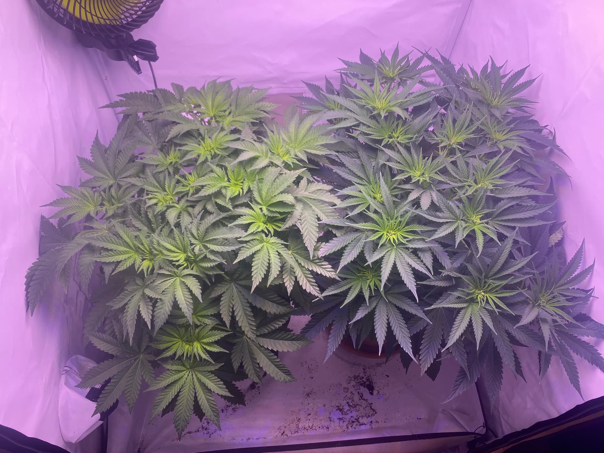 Beide sind ungefähr 4 Wochen vom Samen bis Blütenbeginn in der Vegiphase gewesen.
