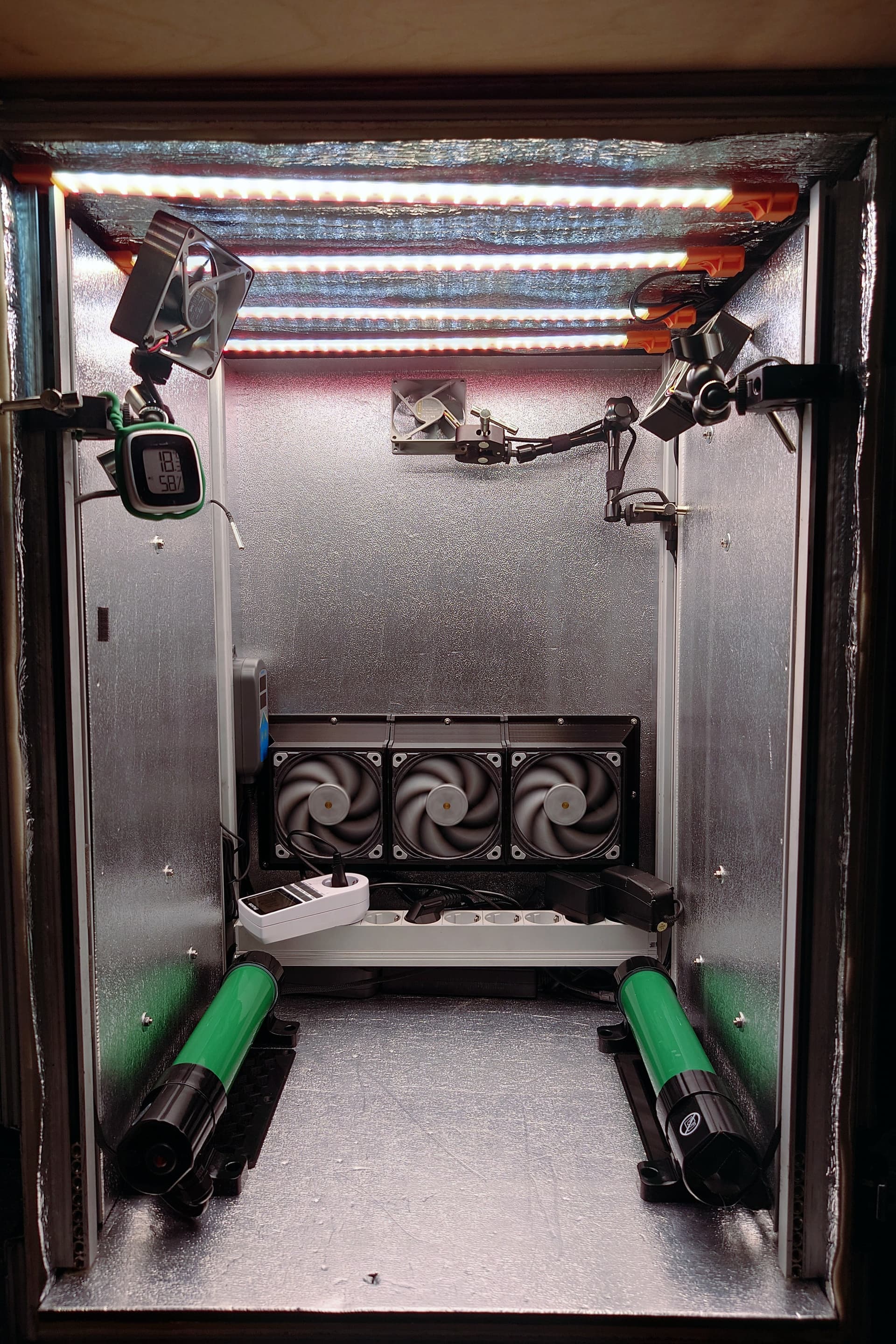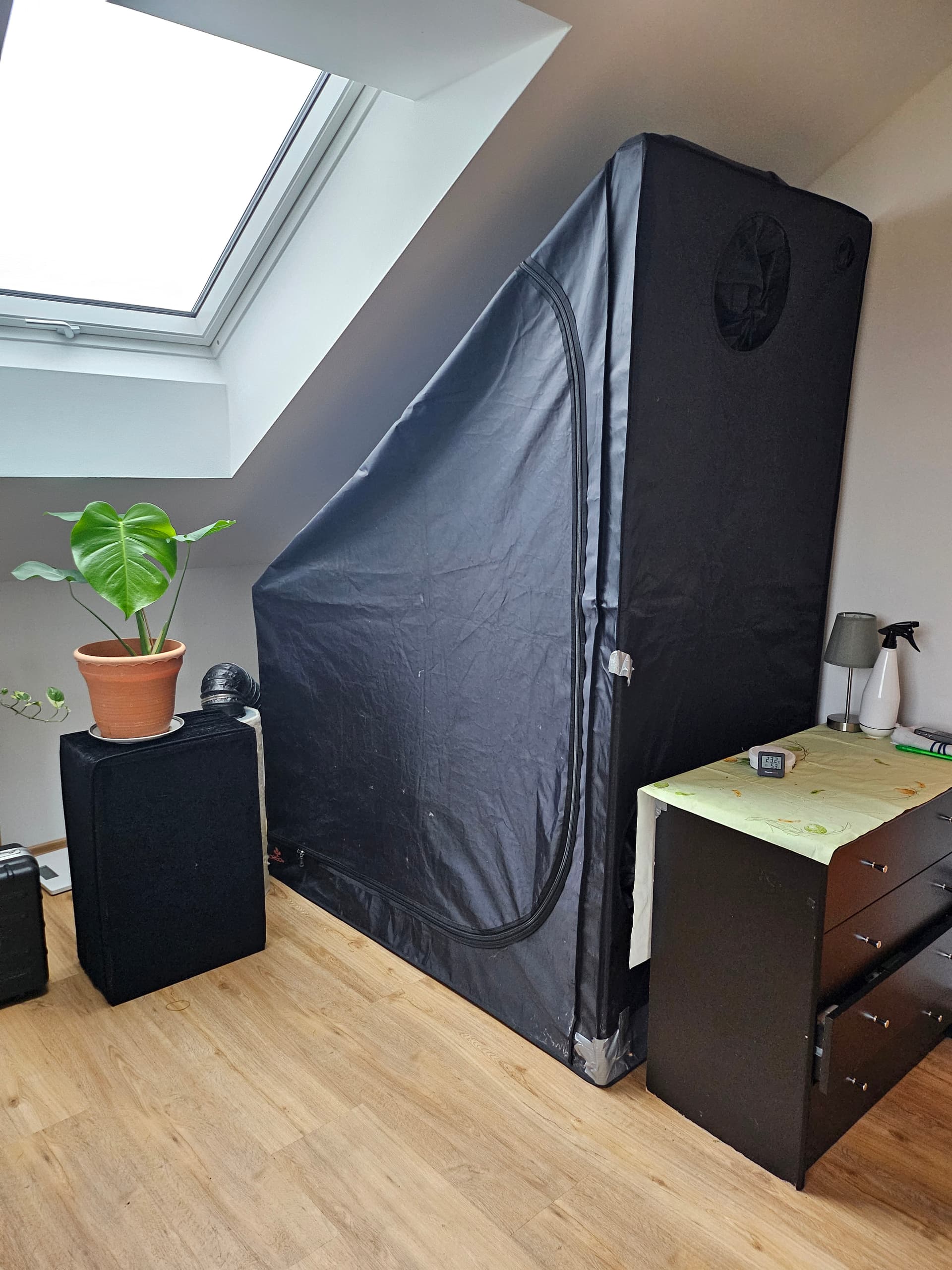 Da ich aus privaten Beweggründen nicht mehr im Growzelt (Gästezimmer) growen kann, muss ich hier nach unten in die Garage ziehen.