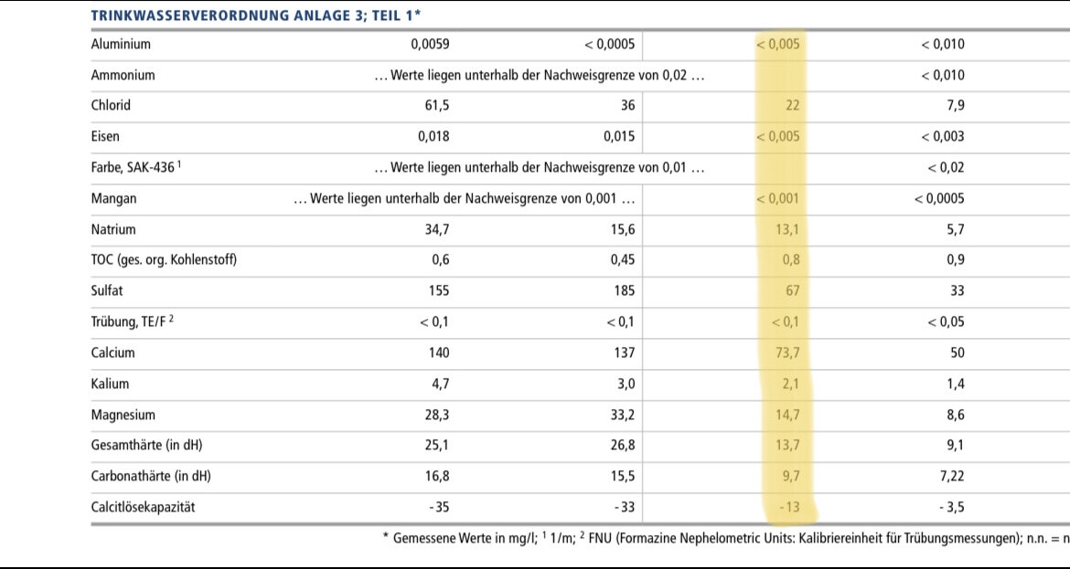 Wasserwerte und calmag Zusatz: