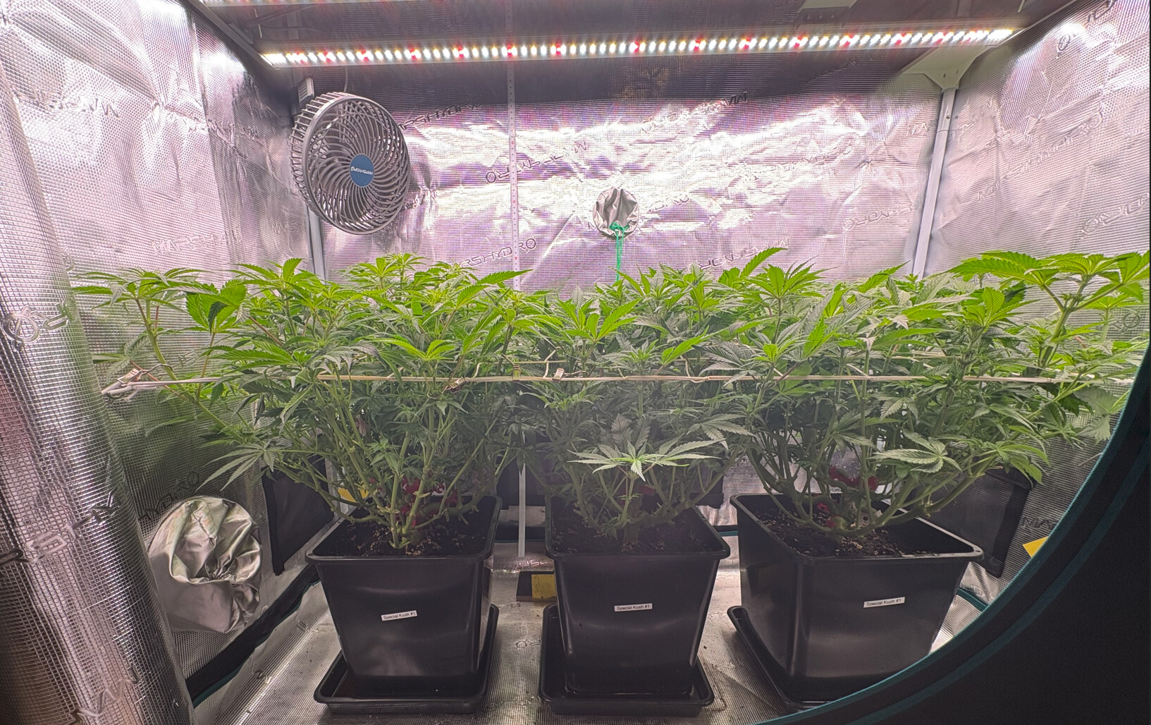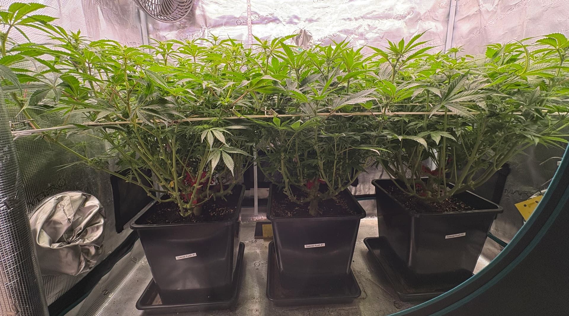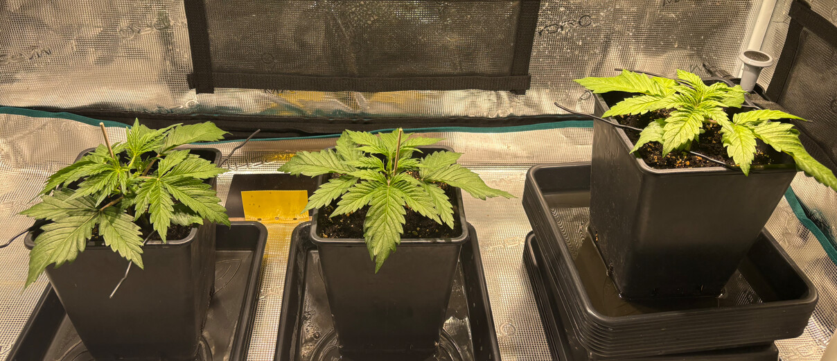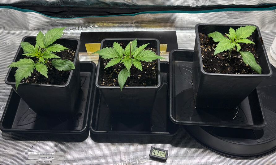 Dieses Mal wachsen in meinem kalten Kellerzelt drei Special Kush #1 von RQS. Die Samen hatte ich von einem Freund bekommen, der festgestellt hat, dass ein 1 Liter Topf auf der Fensterbank u.U. gar nicht die versprochenen 800g liefert