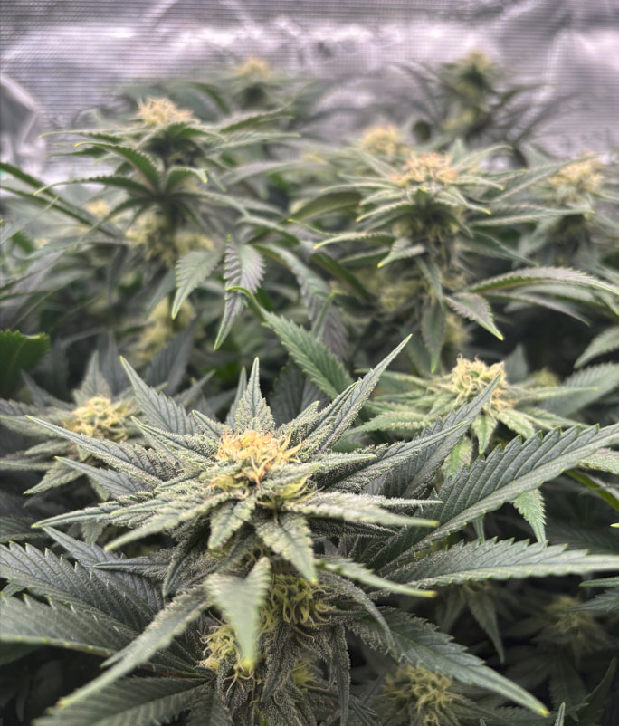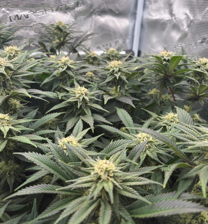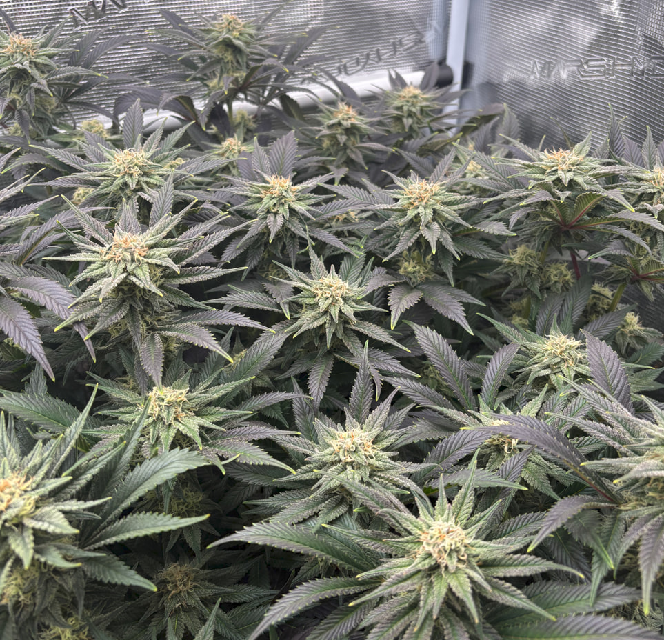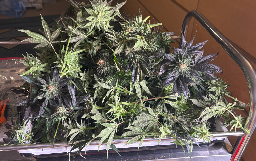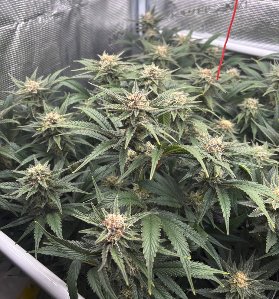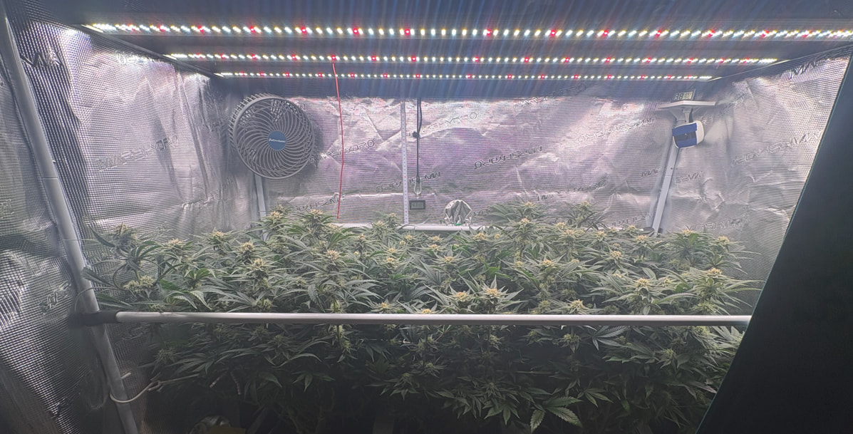 Die obere Hälfte wurde geerntet und in DryFerm Bags gepackt. Die dürfen jetzt langsam trocknen und dann - in zwei Wochen oder so - ist der Rest fällig. Ursprünglich wollte ich erst morgen bevor das Licht angeht ernten. Da ich aber relativ trocken im Zelt bin (45%) habe ich mich für eine Teilernte tagsüber entschieden, da hier die Blüten mehr Feuchtigkeit in sich tragen. Dadurch können sie dennoch recht langsam und qualitativ trocknen.