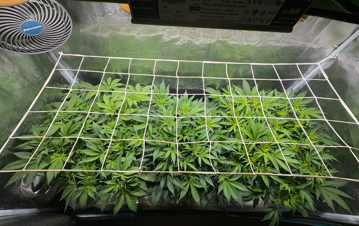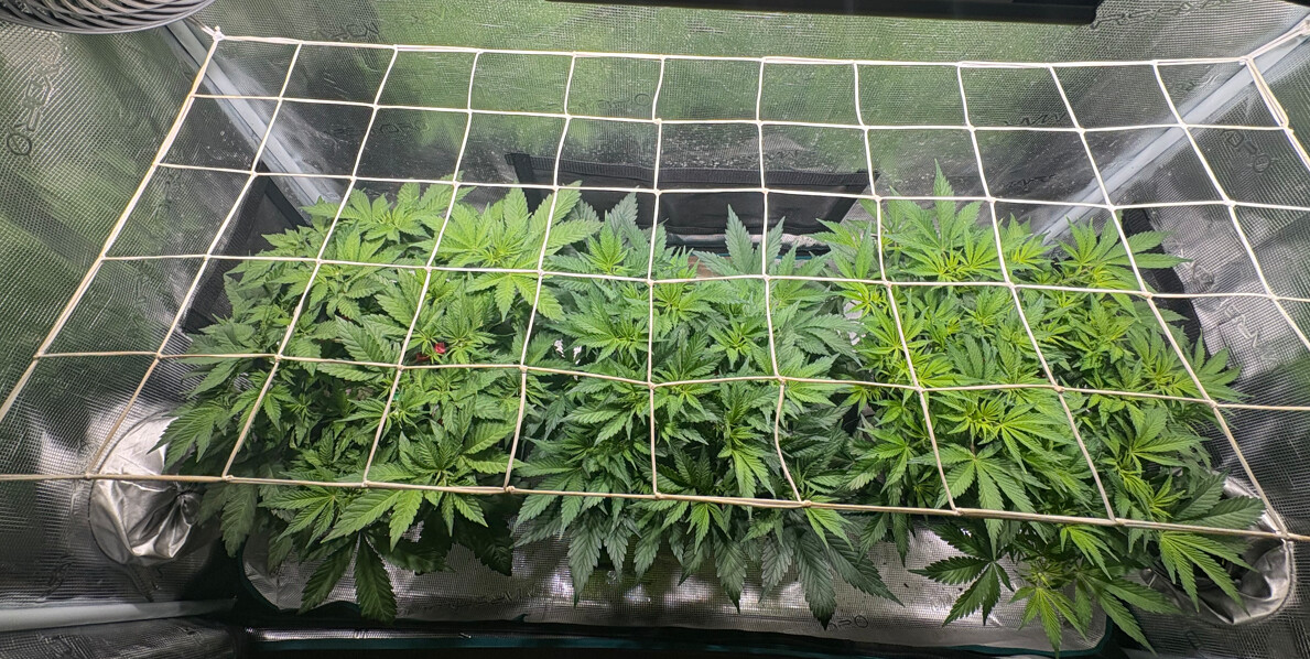 Am Sonntag werde ich die obere Hälfte - also bis knapp überm Netz um die Form zu halten - die erste Teilernte durchführen.