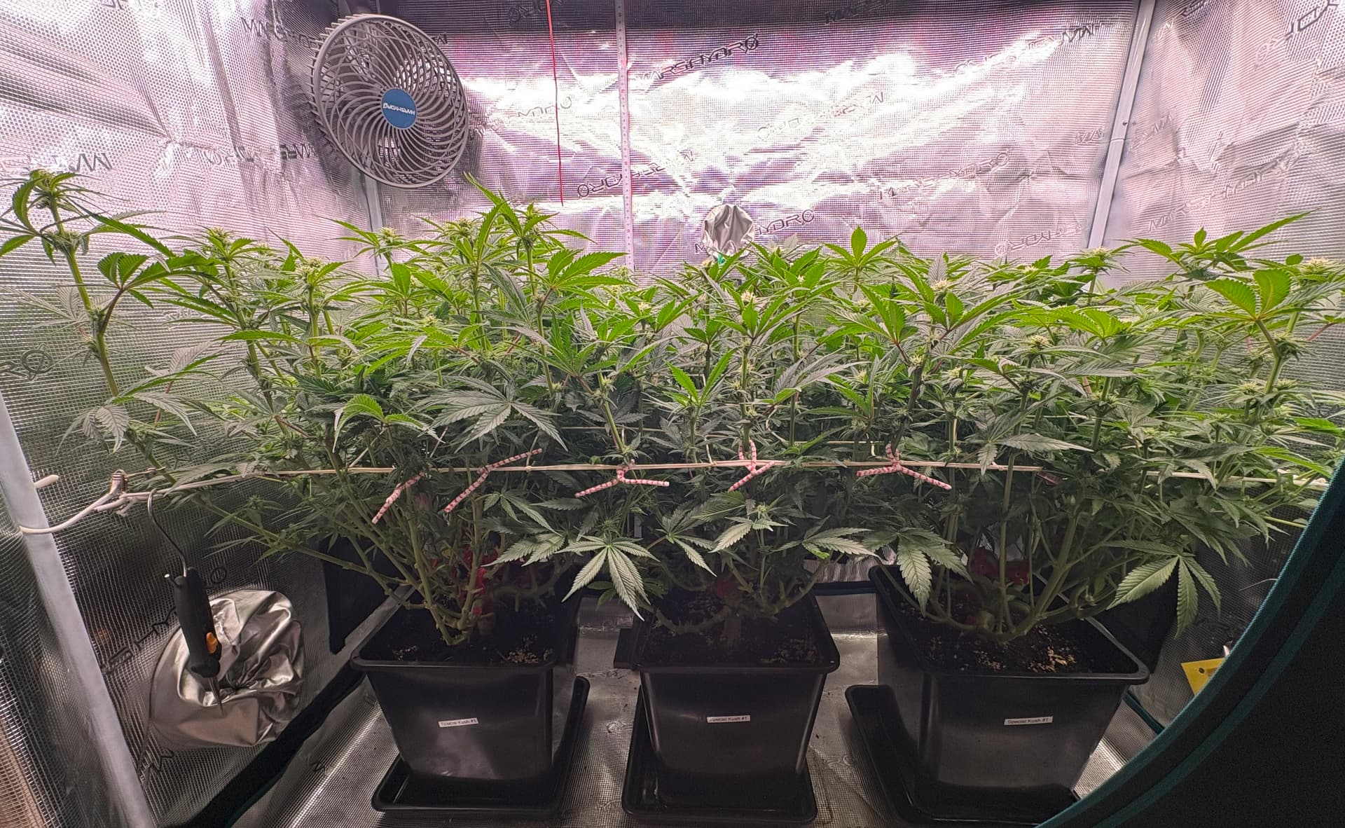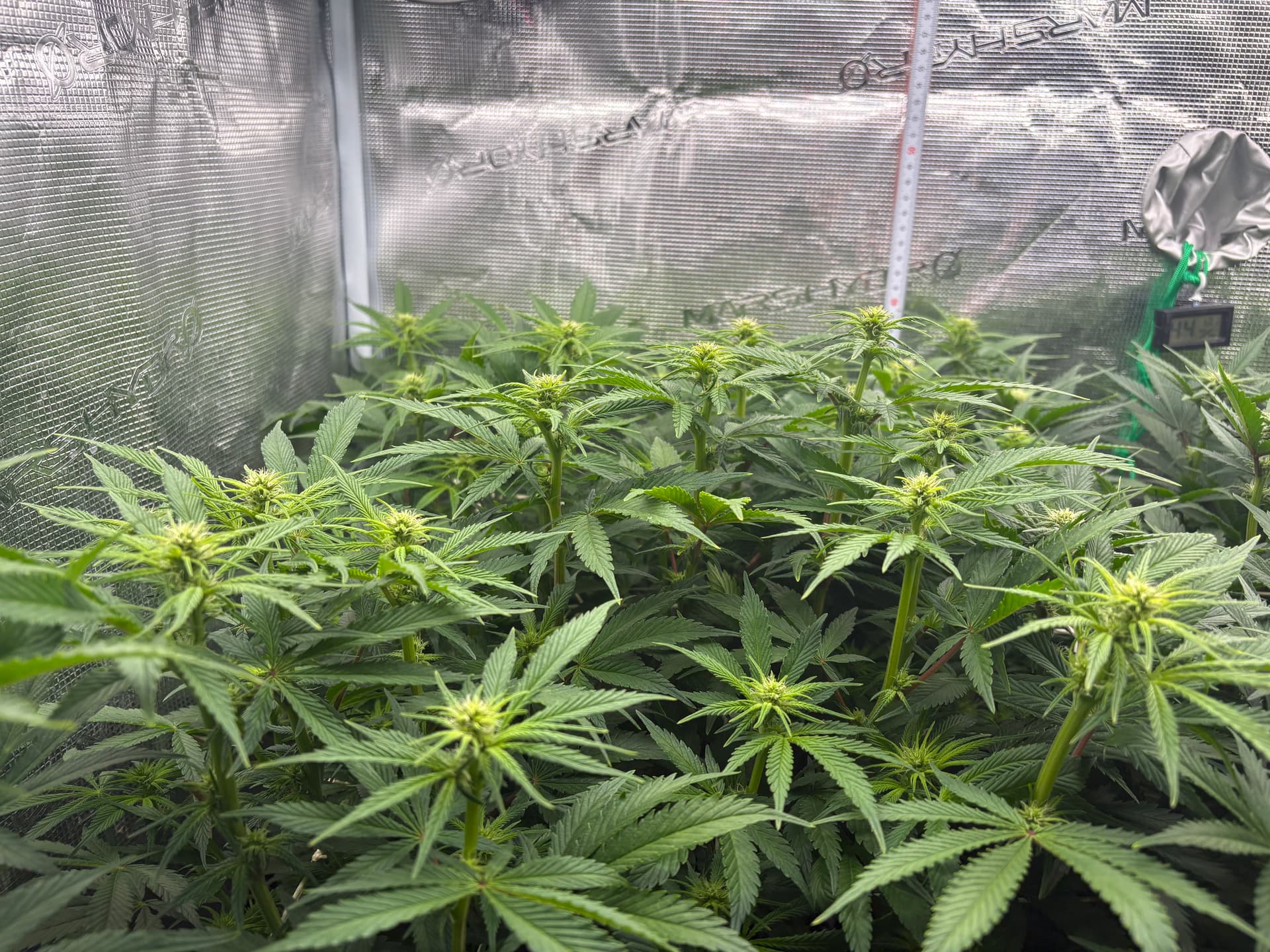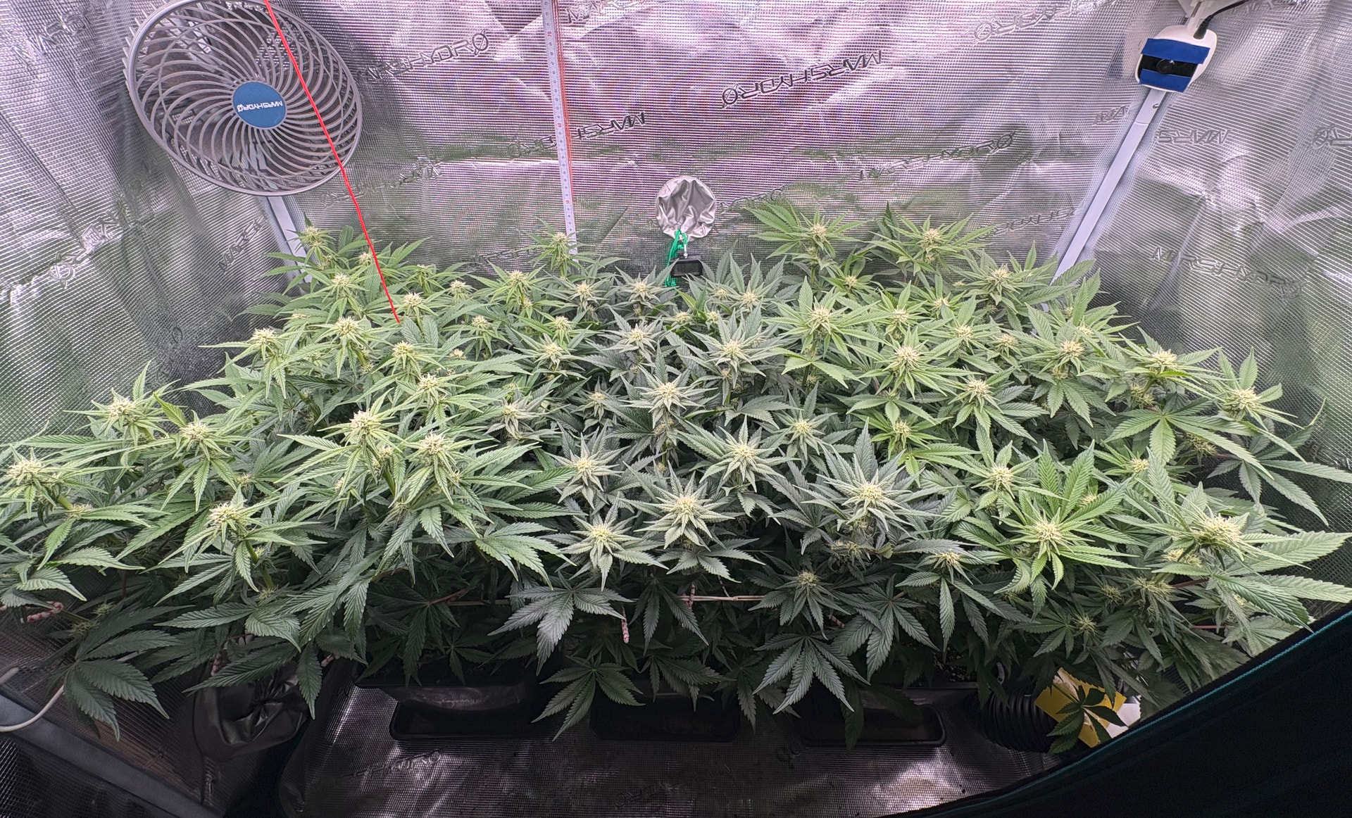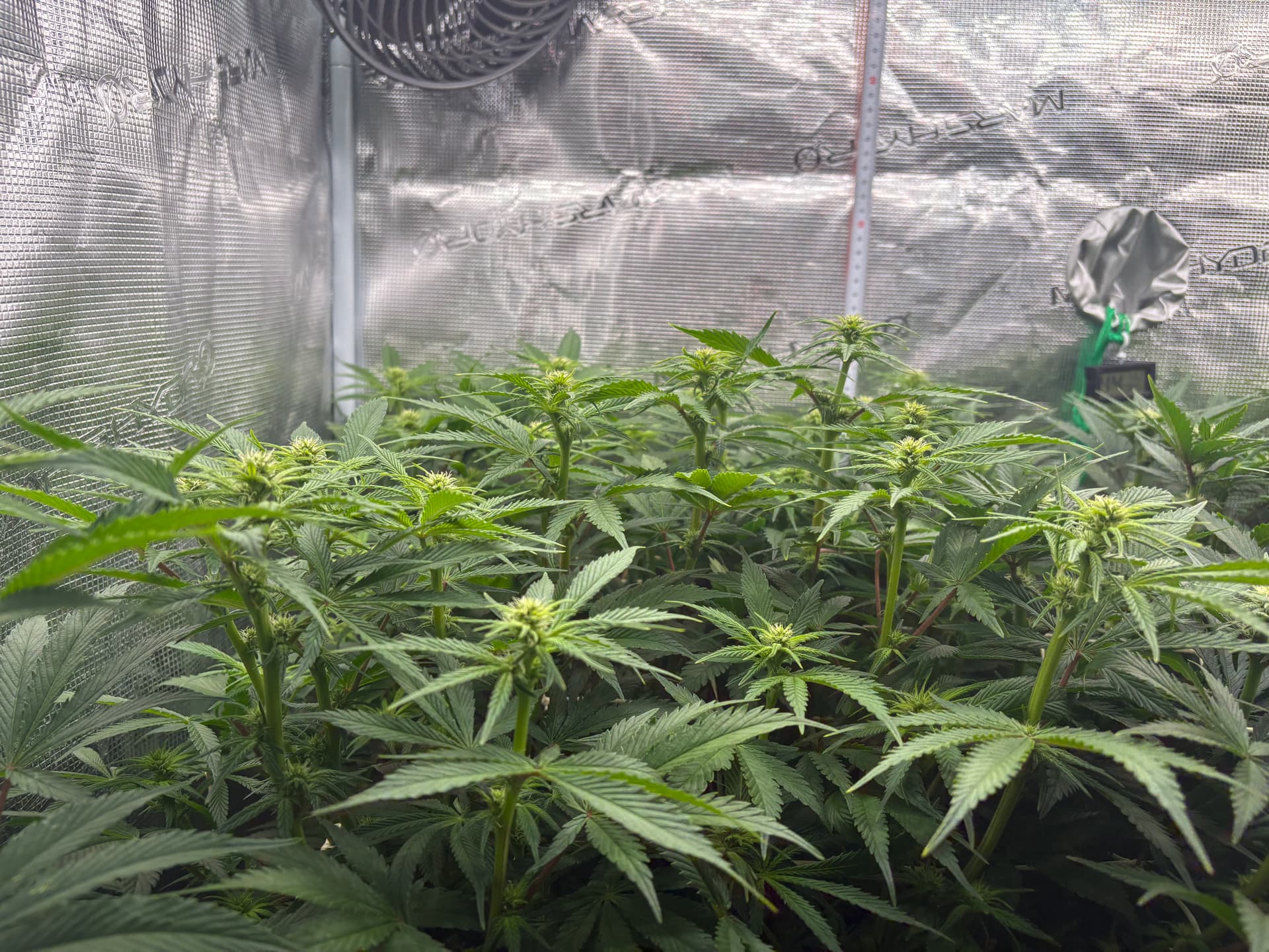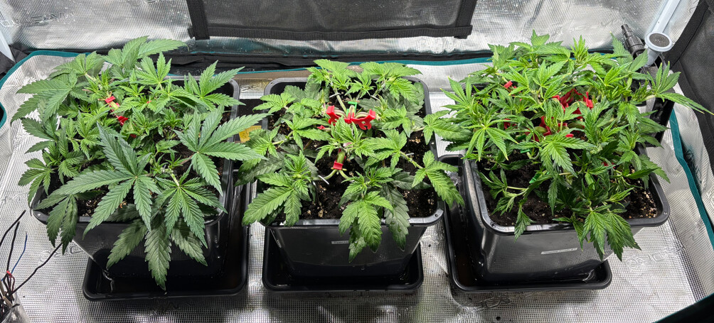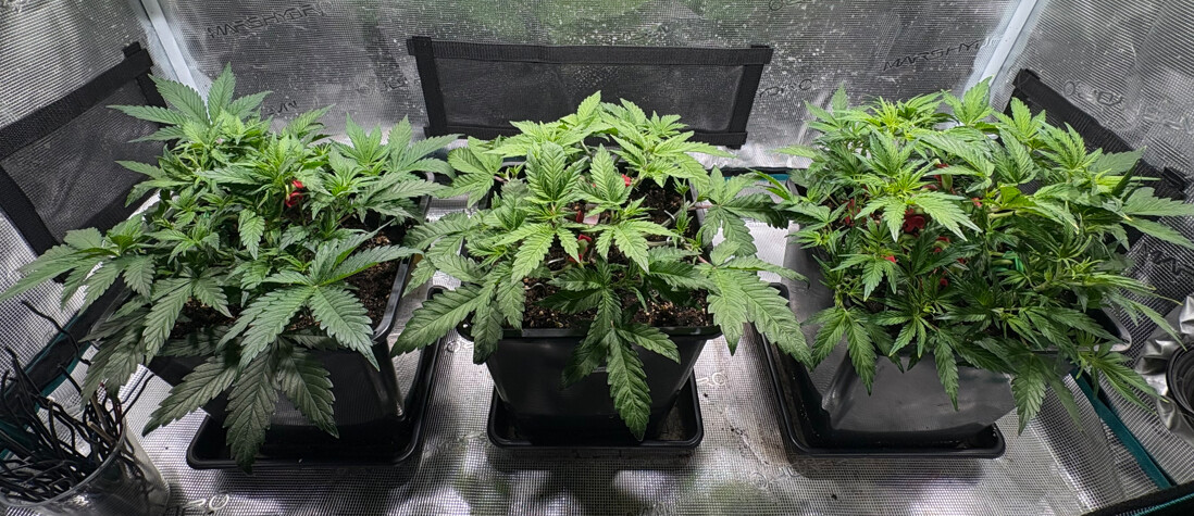 War hier in letzter Zeit etwas inaktiv, aber nicht untätig. Inzwischen sind wir schon wieder im Blütemodus, wenn auch erst ganz am Anfang. Nach sechs Wochen Wachstumsphase wurde letztes Wochenende auf 12/12 umgestellt, somit befinden wir uns bei Tag 47 bzw. Blütetag 5.