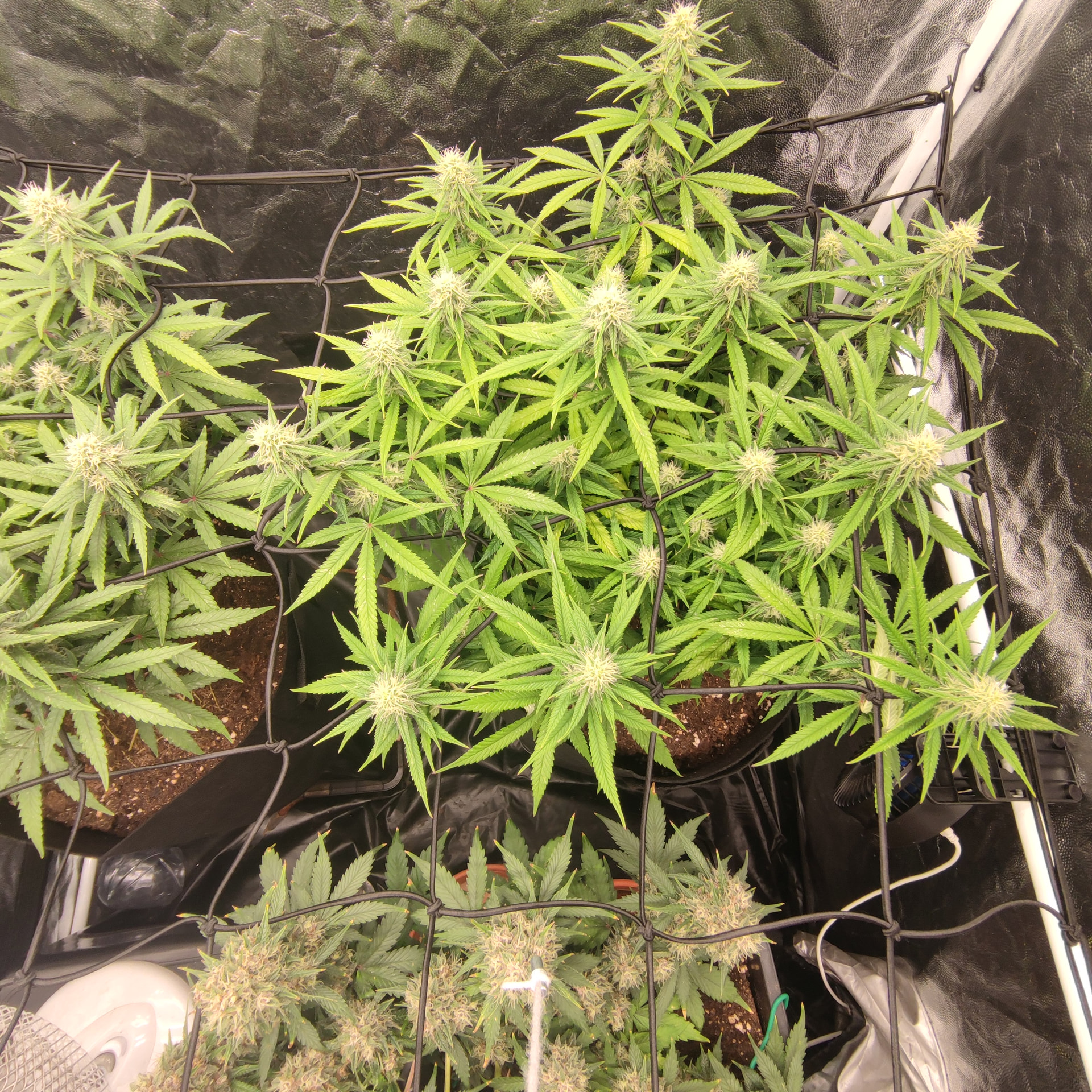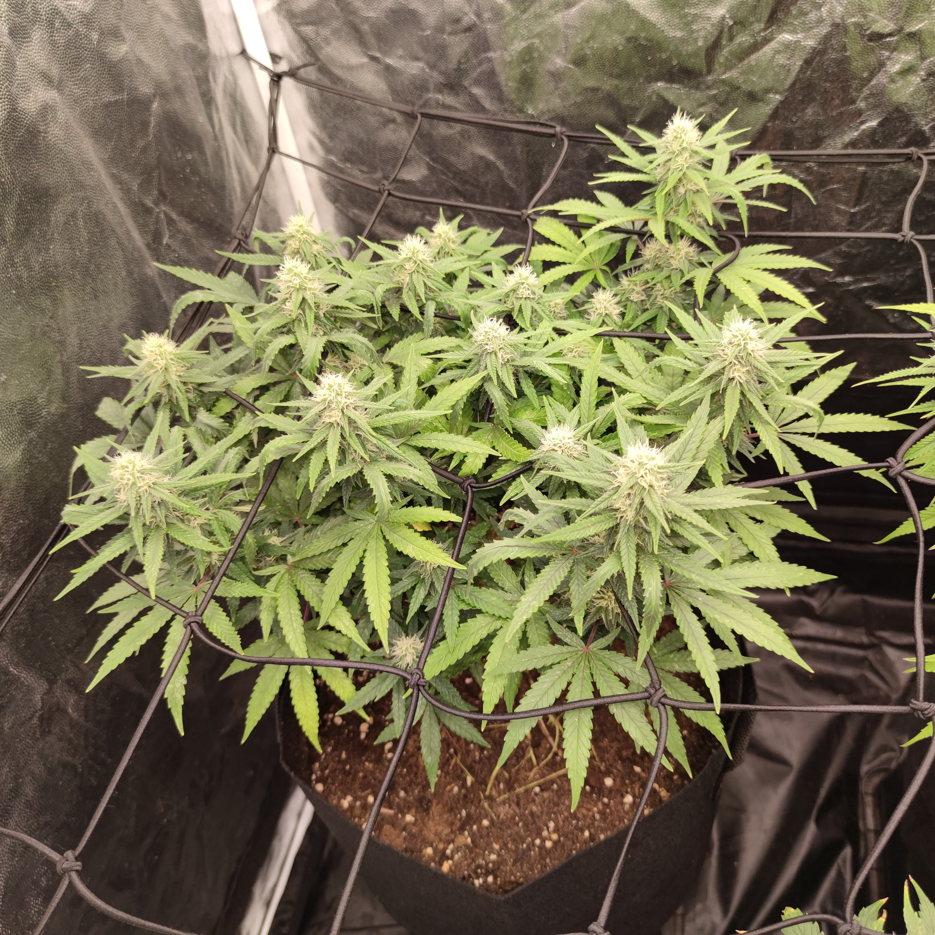 Ich hab mir endlich erlaubt Jack Herer zu growen, die seeds waren im Ausverkauf und ich dachte mit Autos geht ja nichts schief. Haha von wegen. 8 Wochen vegetative phase und trotz erster pistillen, kein Blütenwachstum. Nach dem ich mich im Chat an die Community gewendet habe, konnte ich gut nach justieren und das beste rausholen, die Wasserwerte recherchiert und angeglichen. Dünger nach justiert. Mit Lst trainiert, Netz drüber. 12/12 ab in die Blüte, da die Blütephase jetzt erst begonnen hatte, dachte ich mir die Erlebnisse zu teilen. Der nächste Report, startet dann ab Sämling