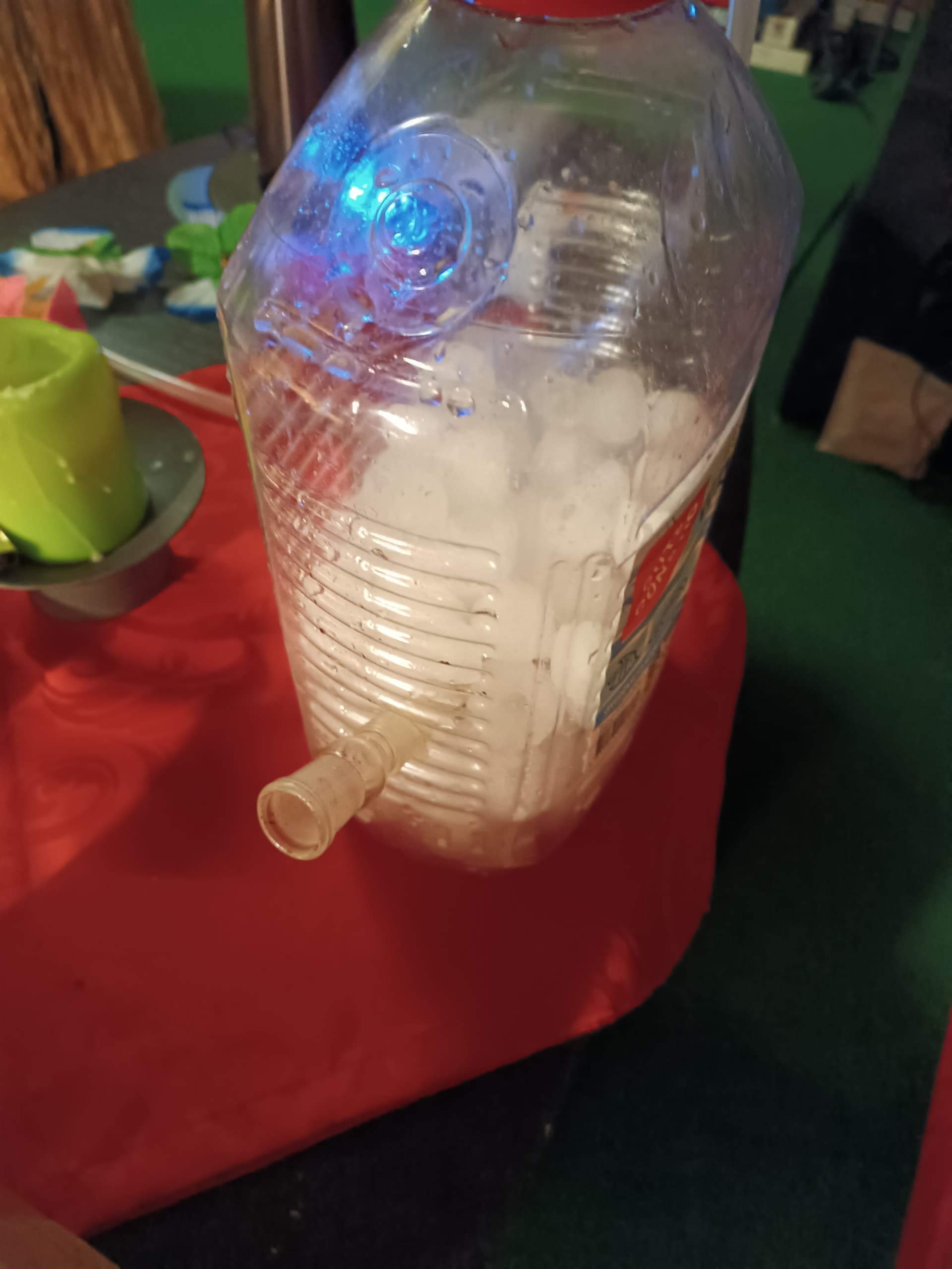 Lasse beide enden vom schlauch ausreichend aus dem behälter schauen … so das du da noch einen vaporizer anschließen kannst.. und das andere ende vom Schlauch lang genug damit man entspannt daran ziehen kann .