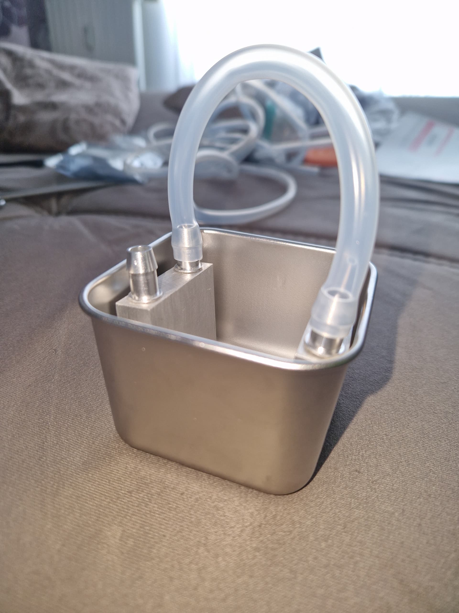 Also sind wir auf die Idee gekommen .. nicht nur den schlauch einfach einzufrieren… sondern wir bedienen uns einfach von der Wasserkühlung für PCs