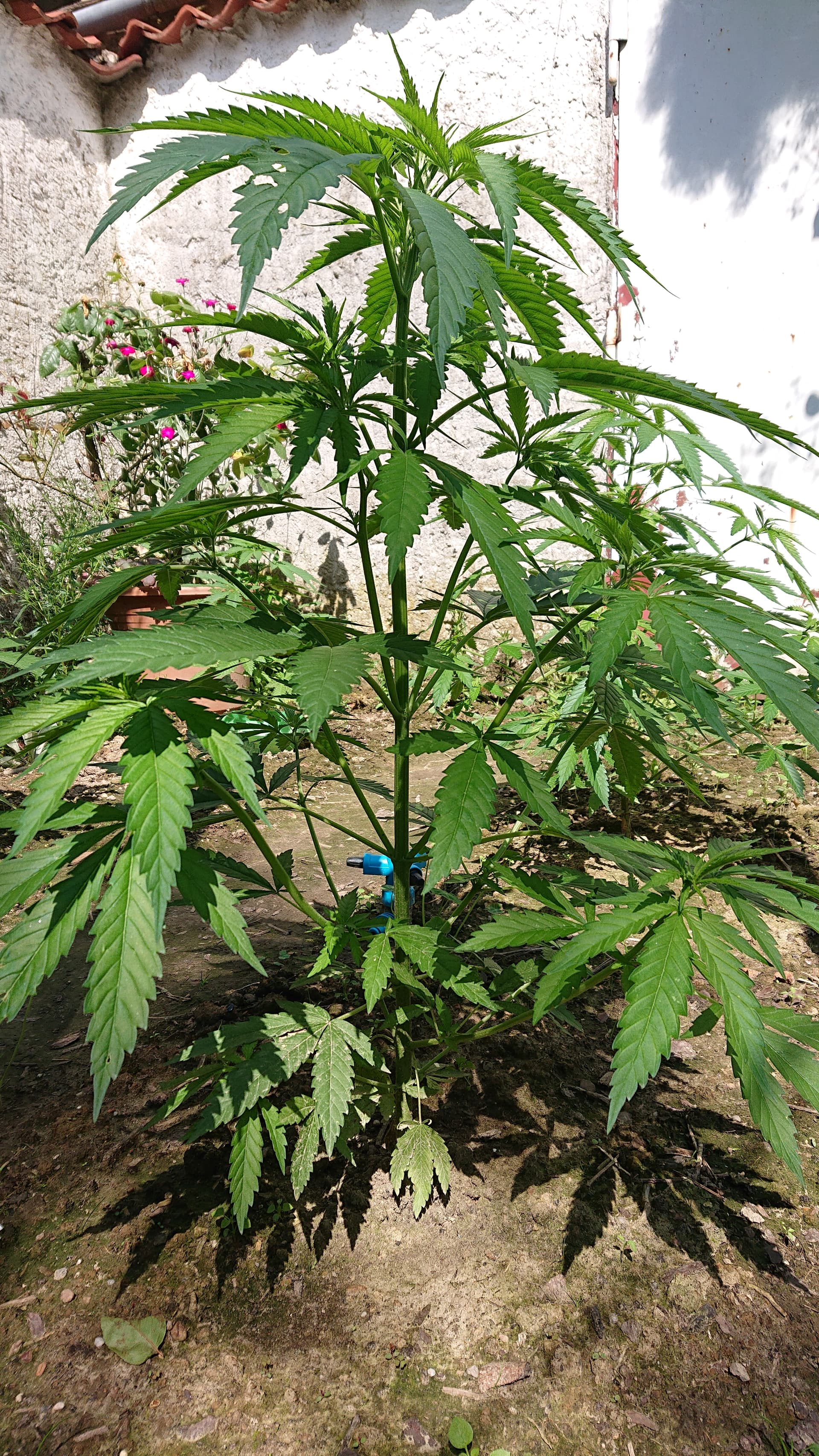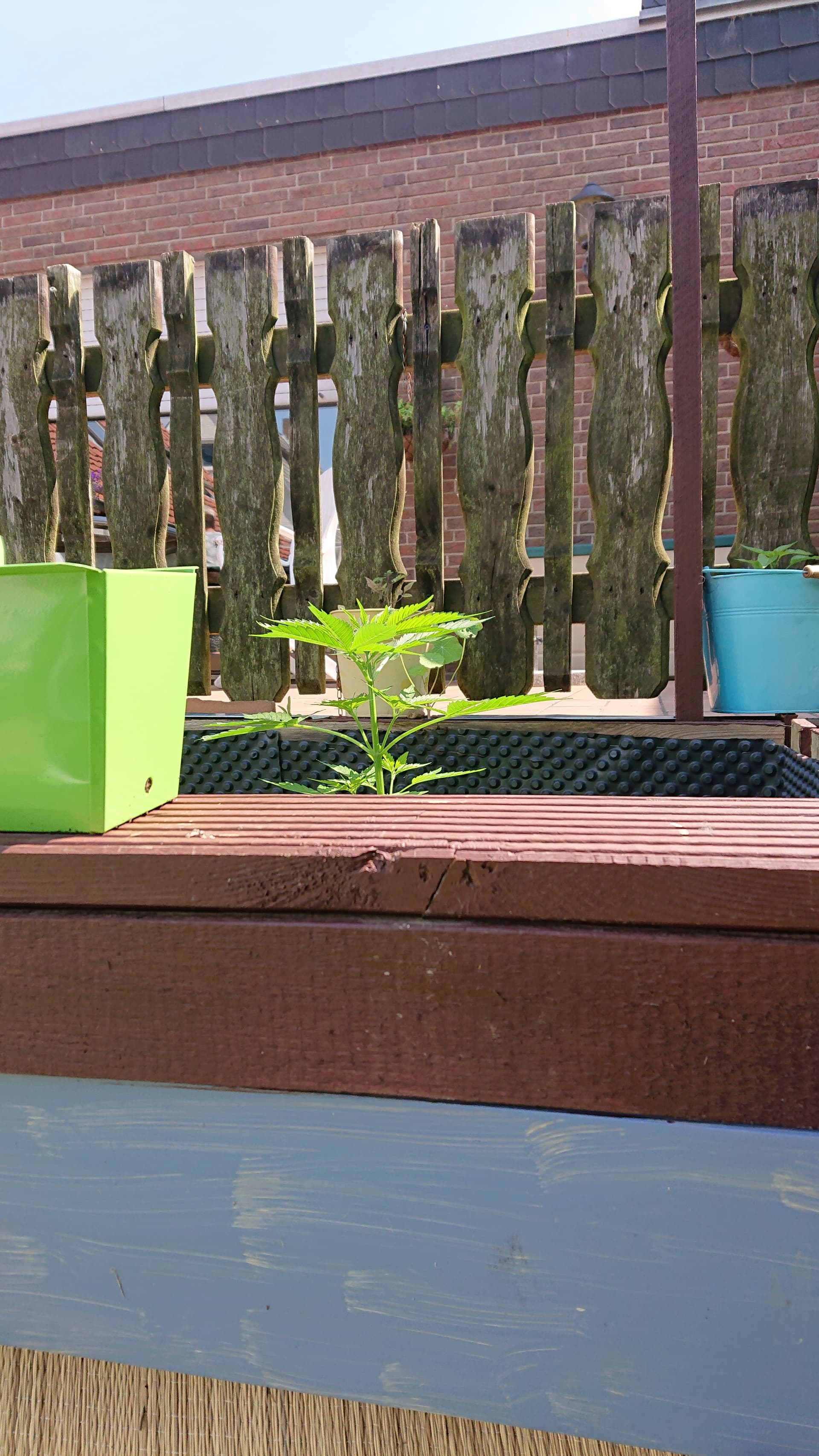 Es ist ja sortenabhängig, wie stark die Pflanze später noch in der Höhe zulegt beim Blühen. Klassische, reine Sativas machen nochmal richtig Zuwachs, bei Sativa Hybriden ist das wohl moderat. Der eigentliche Blühbeginn ist nicht vor Ende Juli/Anfang August, in der Zeit kann man mehr Phosphor düngen.