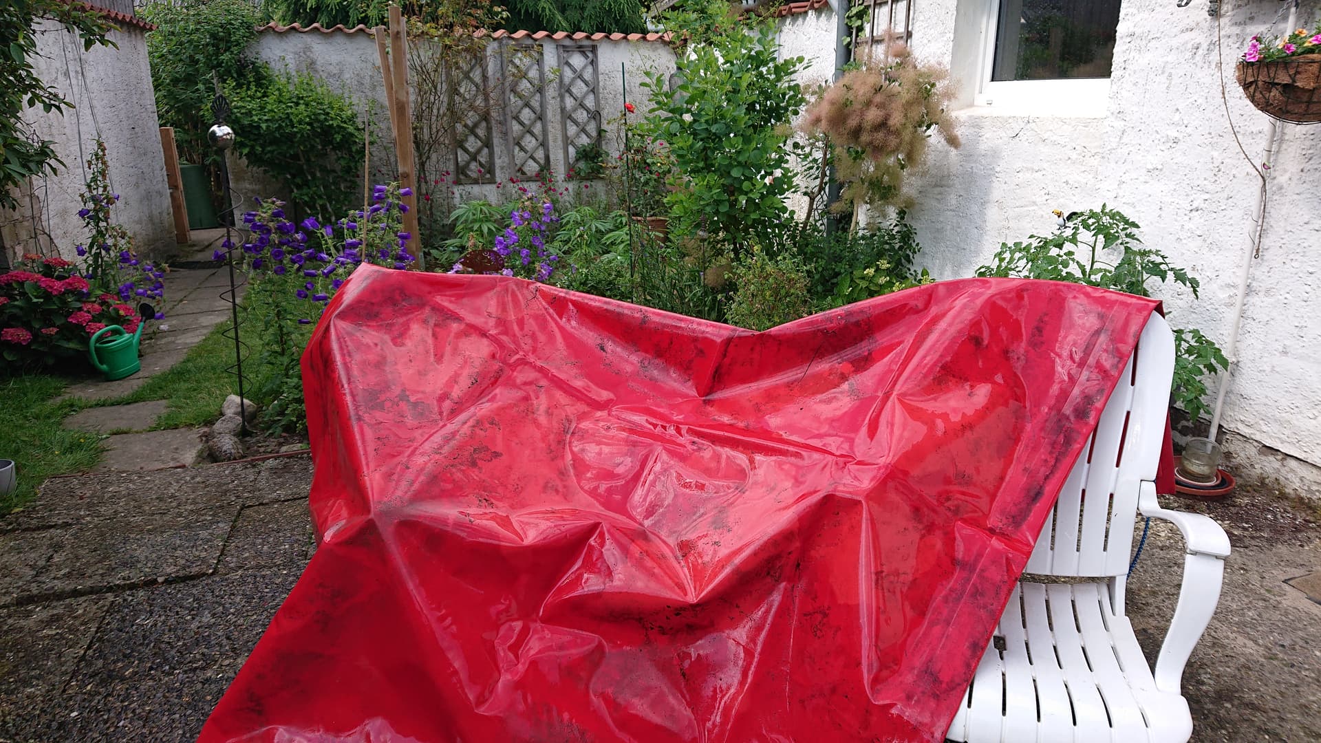 Hast du schon mal mit der Plane herumgewerkelt? Ob die Größe passt? Ob das Gerüst drunter mit dem Gewicht klarkommt? Und ne suffiziente Fixierung?