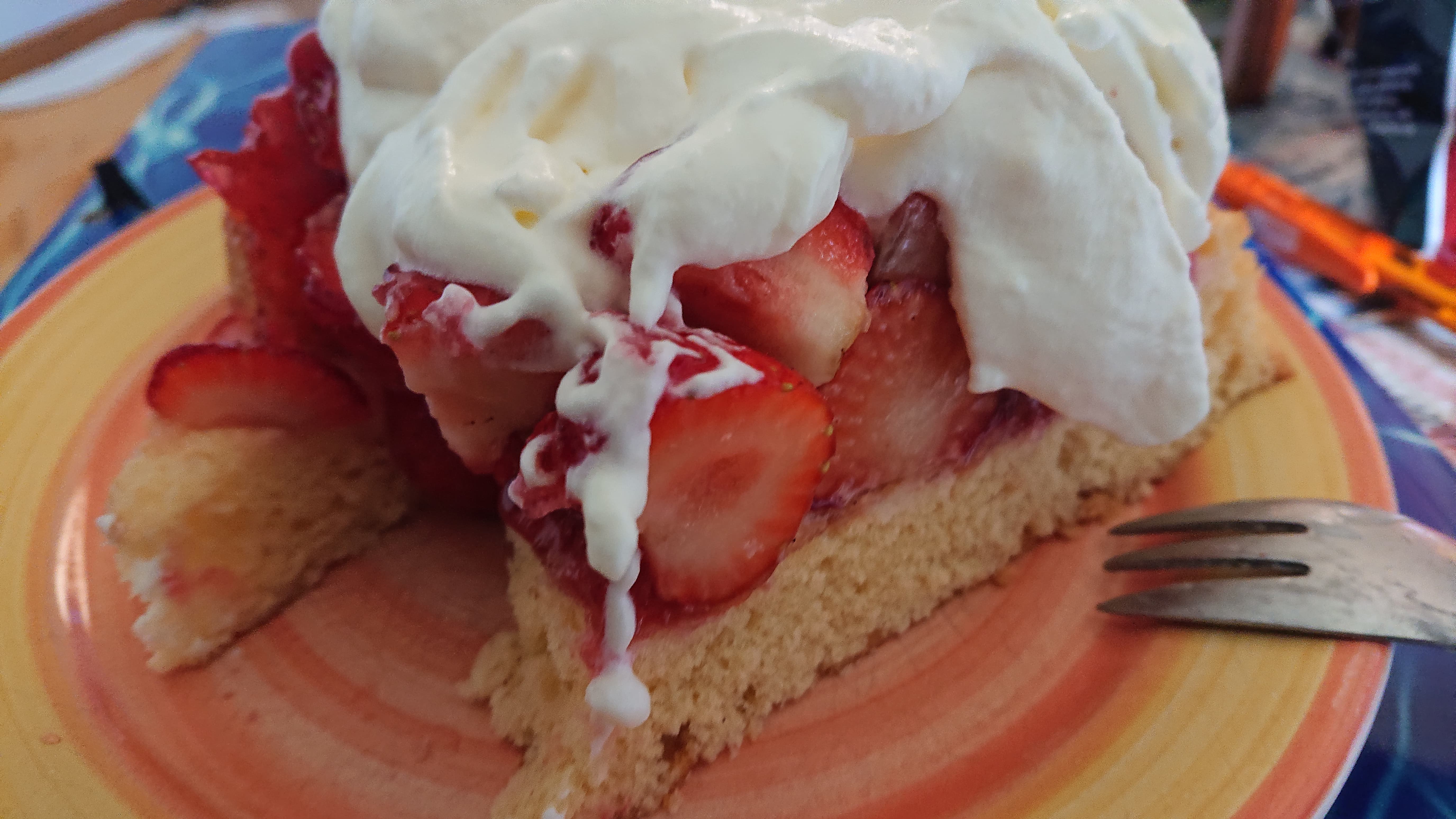 ), gräbt jeden Tag mit mir im Garten rum,geht noch dreimal die Woche je 4 Std. arbeiten, paßt auf alles auf, auch auf 70kg Hund wenn’s sein muß, denkt an alles, und geht dann morgens spontan los, um uns Sonntag nachmittags eine selbstgemachte (alles!) Torte aus frisch gepflückten Erdbeern hinzustellen