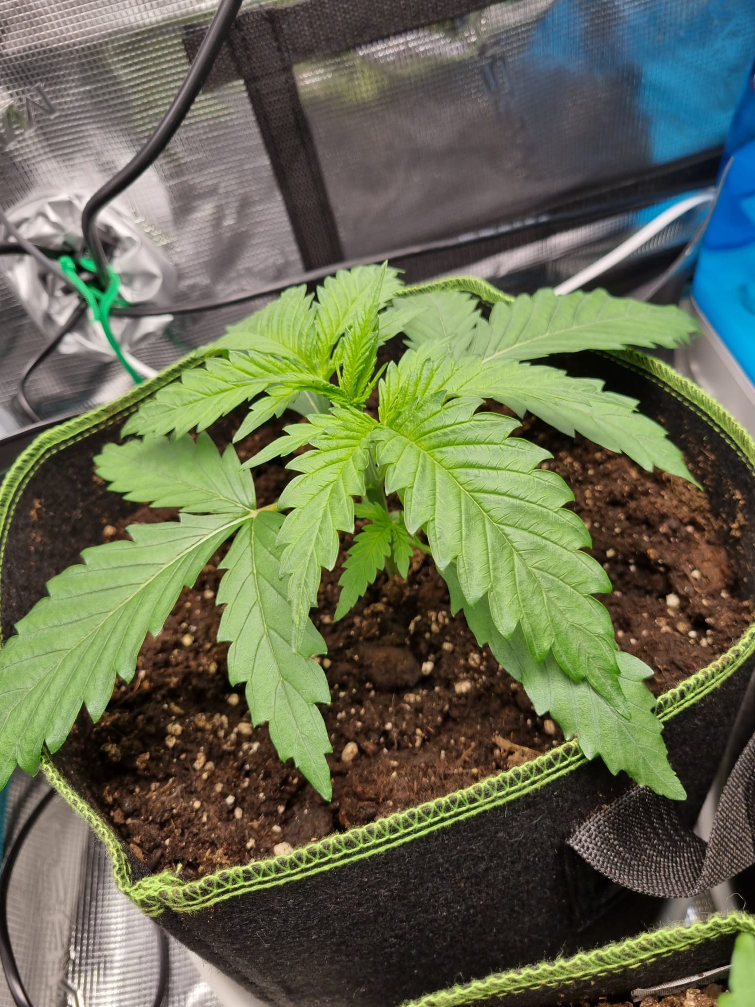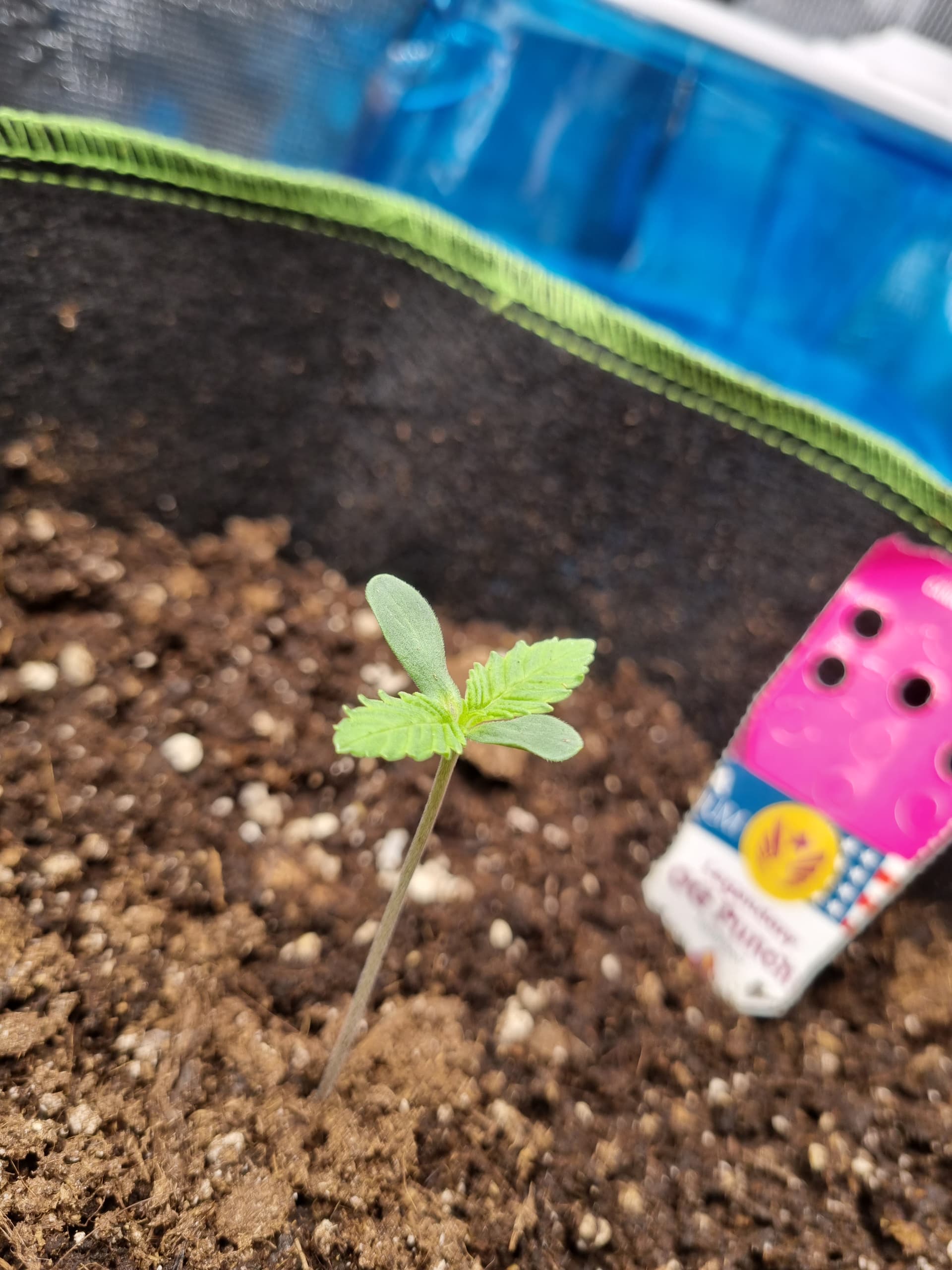 Zur Anzucht habe ich Jiffy Torfquelltabletten genutzt und sobald die Wurzeln durchgeschaut haben, habe ich dann in einen 12 Liter Stofftopf mit BioBizz LightMix umgetopft.