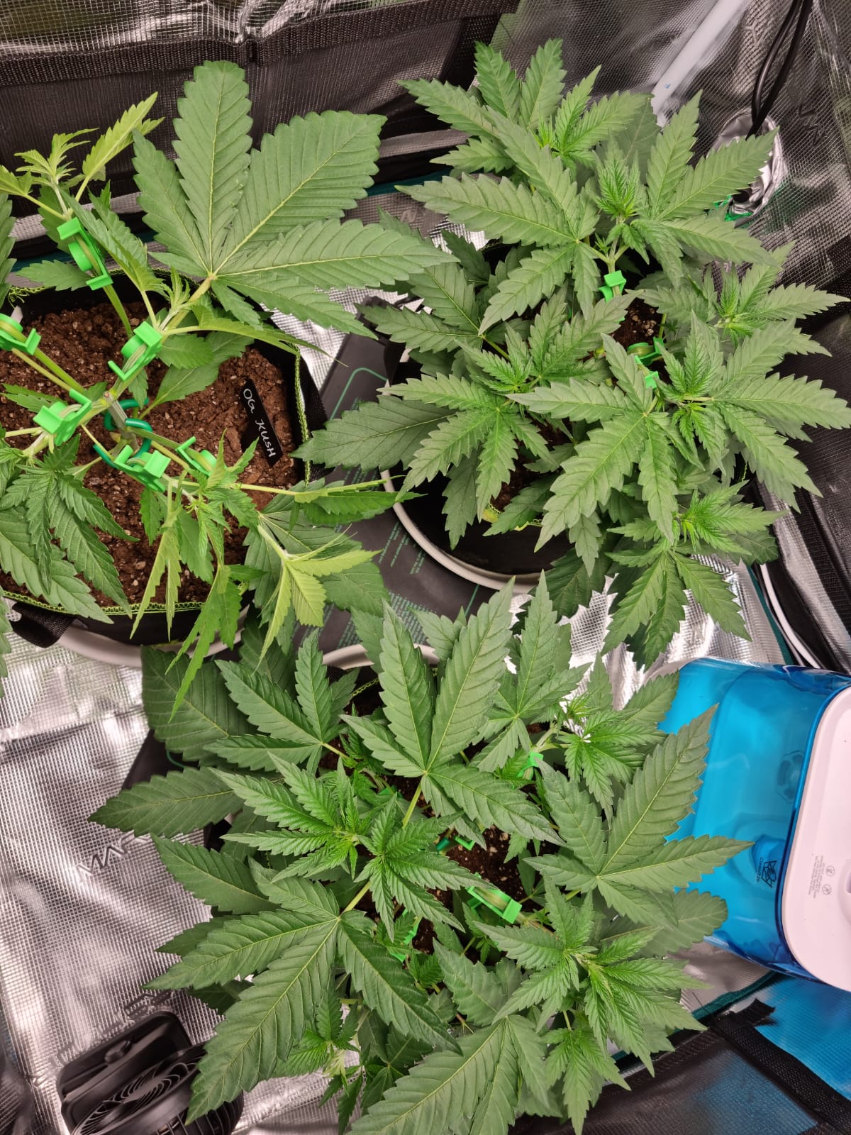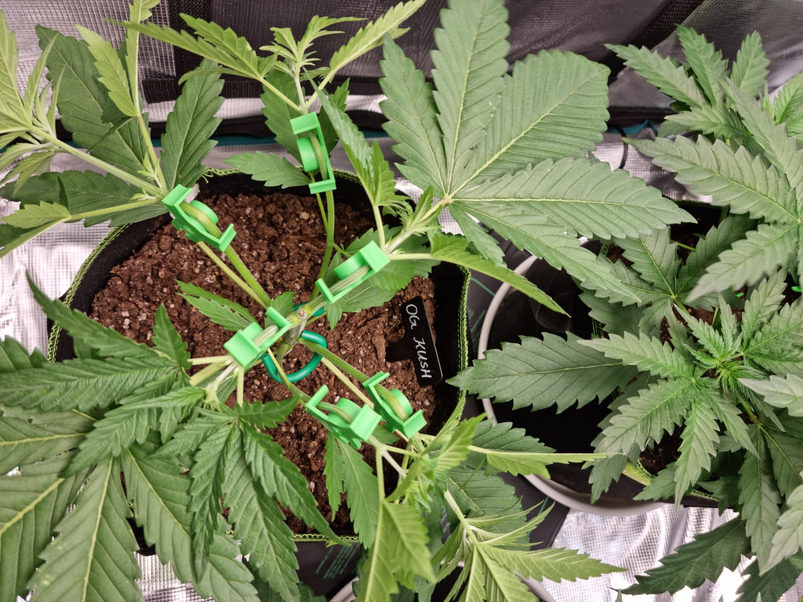 Nach dem gestrigen LST haben sich alle Triebe heute wieder nach oben gestreckt und sind weiter gut gewachsen. Die OG Kush ist nicht so buschig, hoffe aber bald sind die Triebe lang genug, um auch dort vernünftig zu trainieren ![]()
