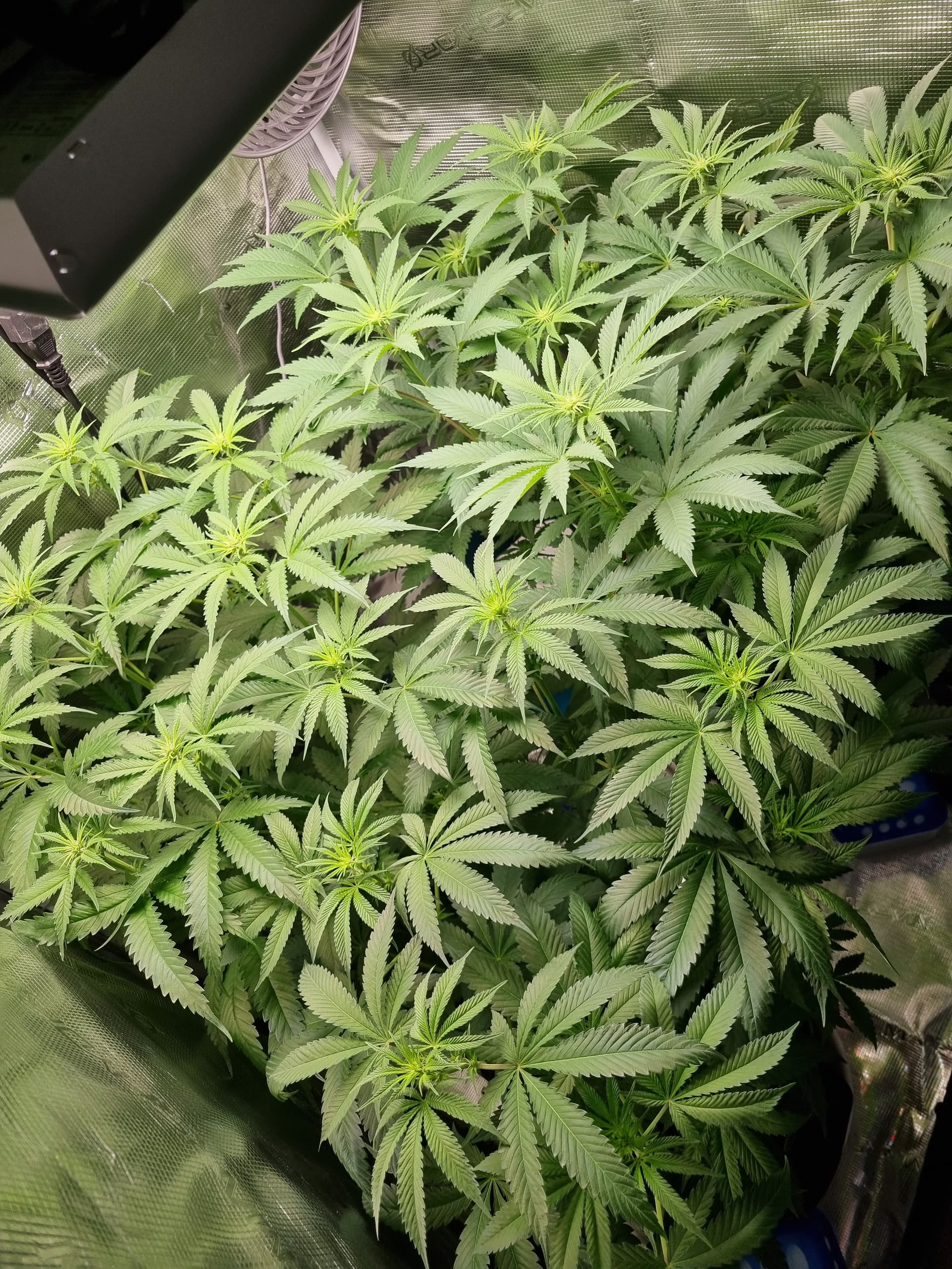 Jau! Hier scheint ja alles gut zu laufen…deine Ladies sehen wirklich richtig gesund aus. Hast du eigentlich schon Blattmaterial entfernt? Bei mir wachsen einige Triebe direkt unterhalb der großen Fünffinger und bekommen kaum Licht ab. Da hab ich mich gefragt ob es sinnvoll ist, die abzuschneiden🤔…nunja aber da würden 2 richtig große Sonnensegel fehlen…Bei dir sieht es jedenfalls so aus als ob sich alle Triebe über den Sonnensegeln befinden. Viel Erfolg noch! Wenn das so weitergeht wird’s nen richtig guter Run!