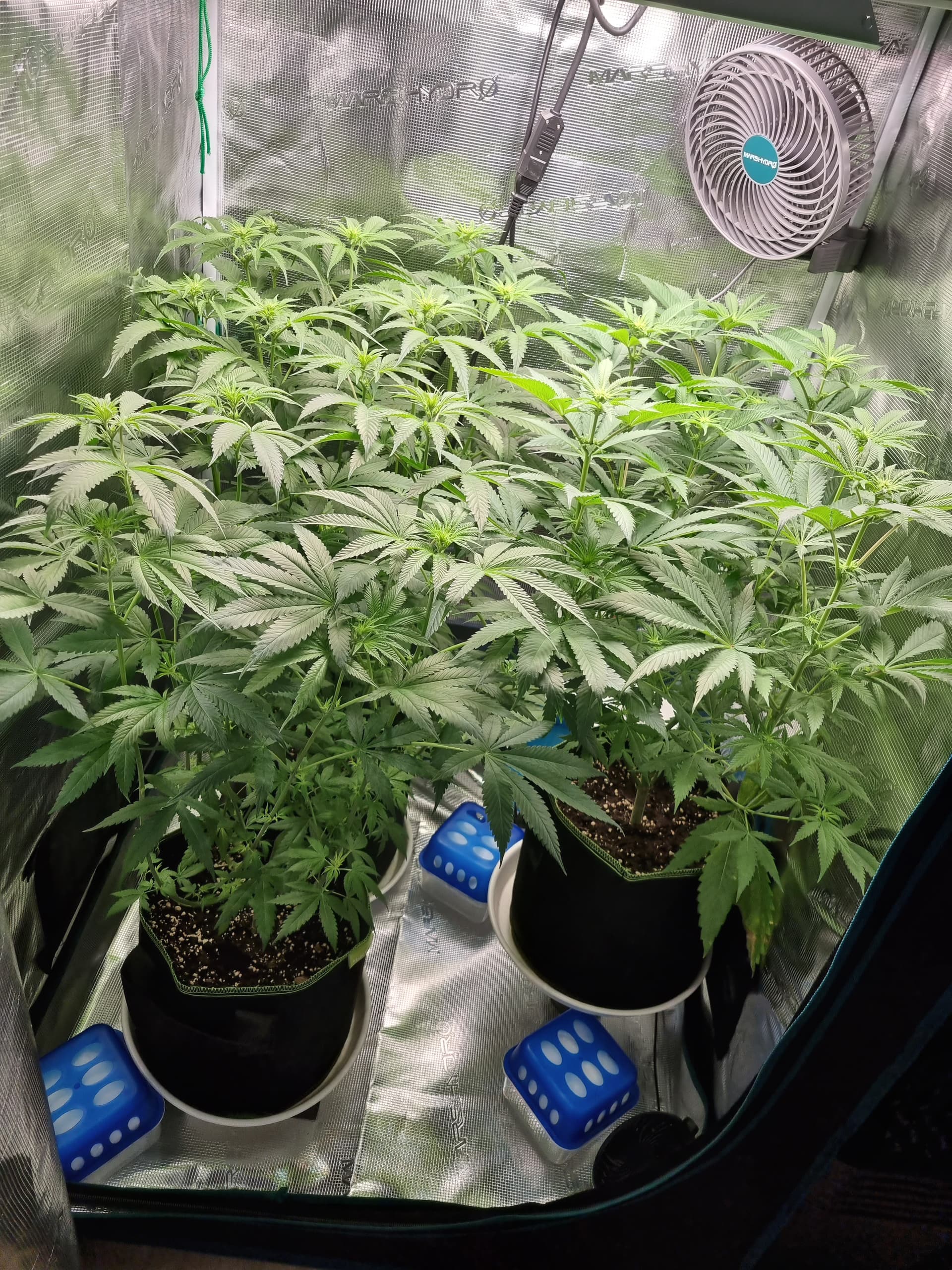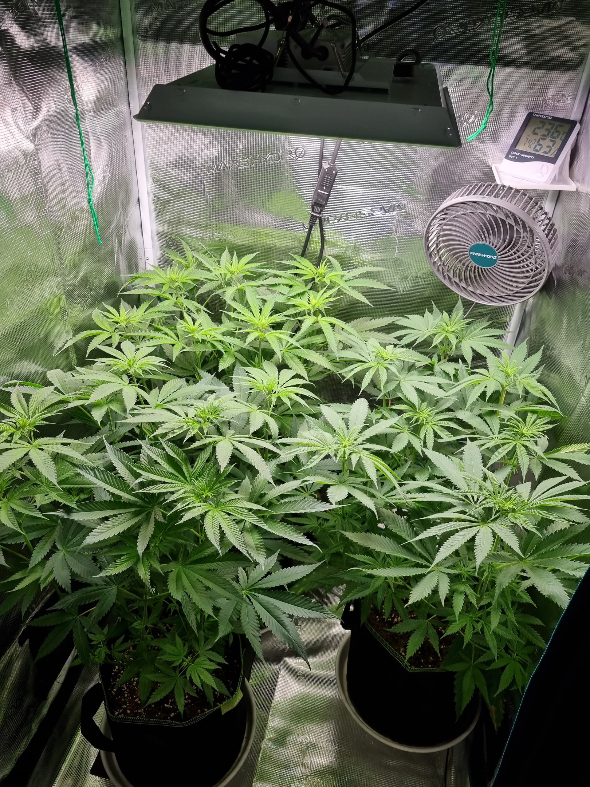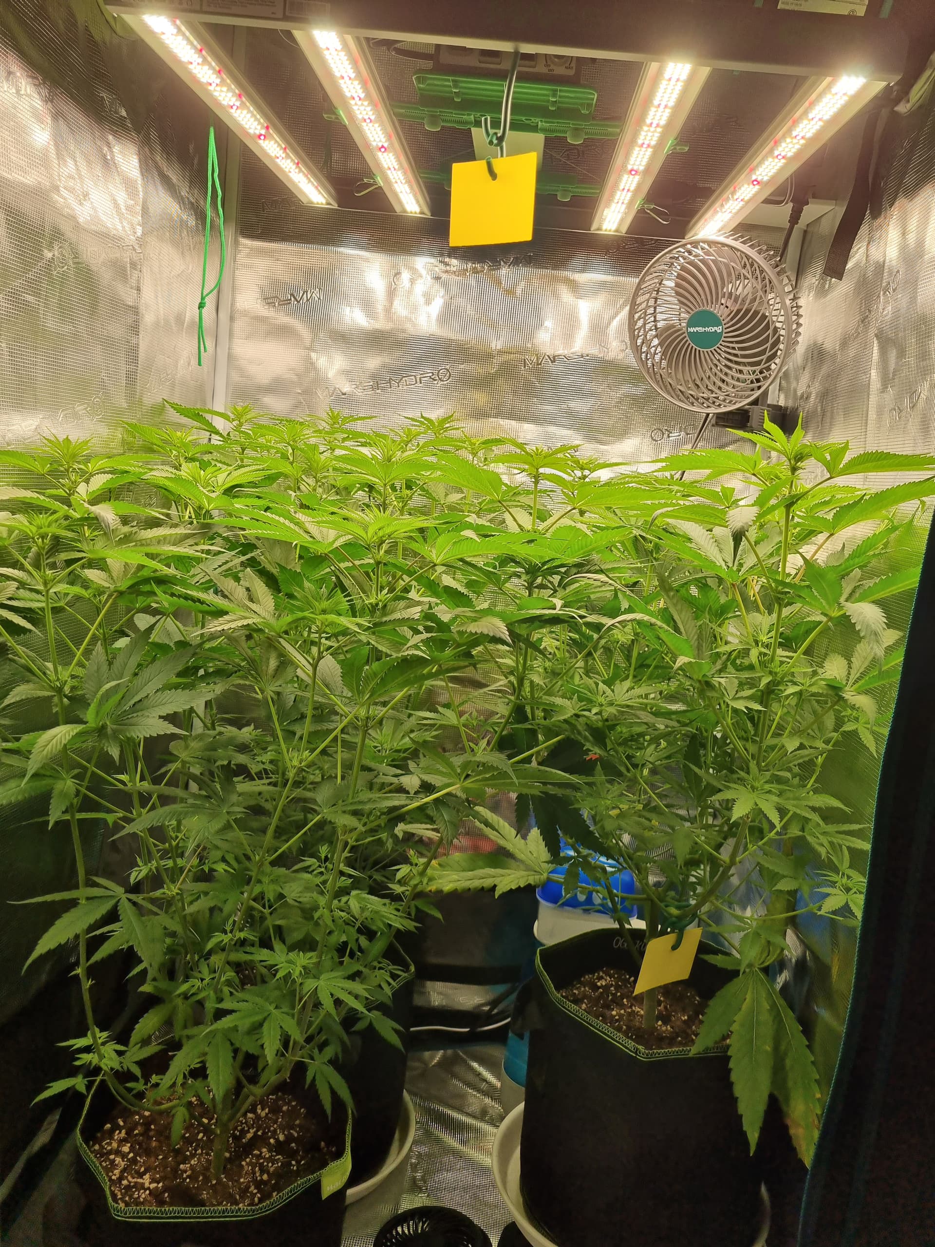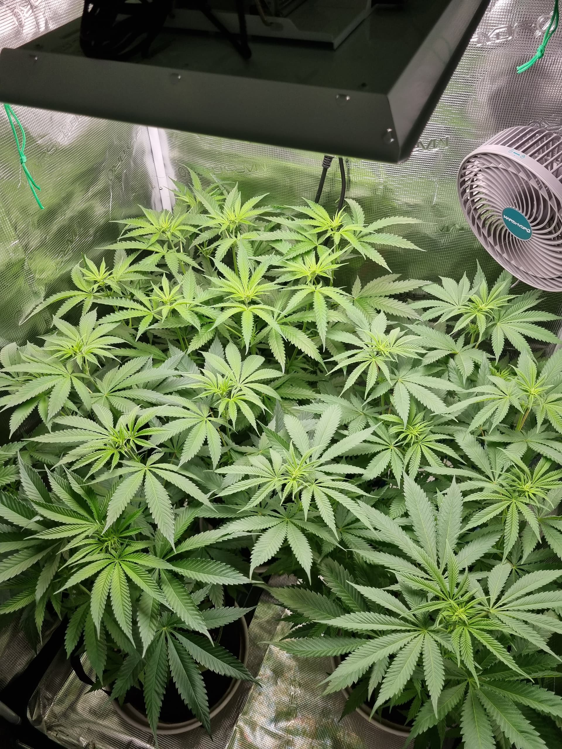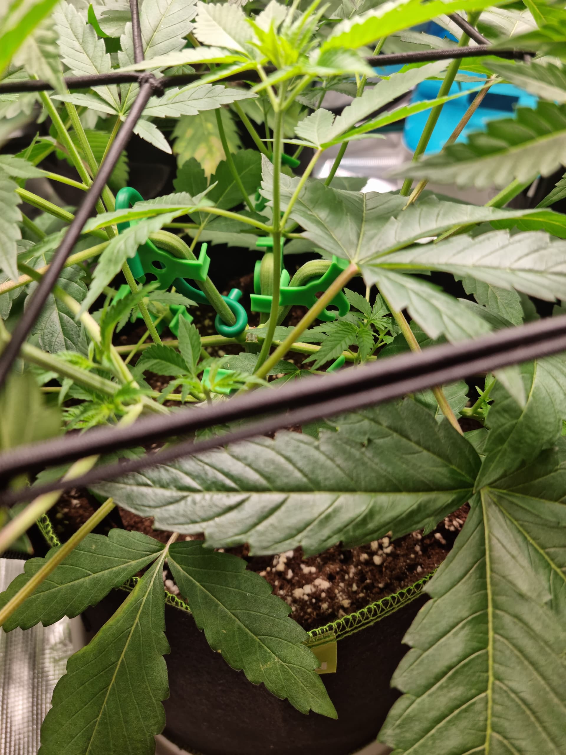 Wollte jetzt noch weiter wachsen lassen und wenn die Damen weiter nach oben gewachsen sind irgendwann Lollipoppen, also ca. das untere Drittel an Blättern gänzlich entfernen. Bis dahin lasse ich über LST mehr Licht an die unteren Blätter ![]()