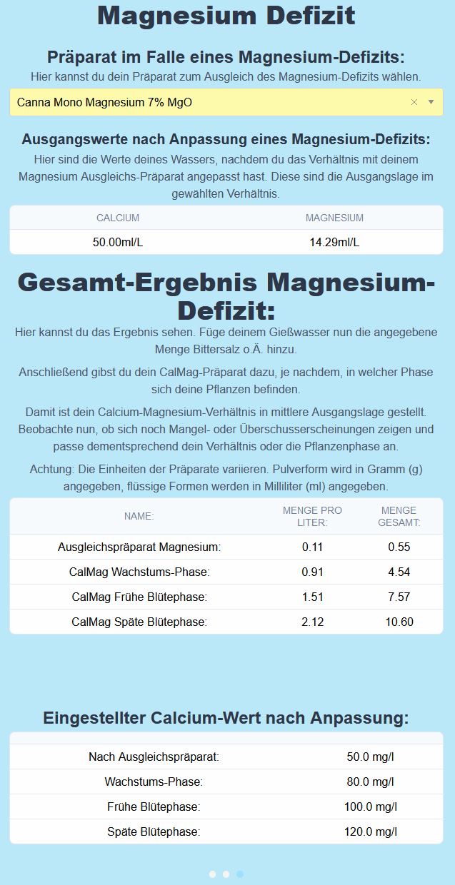 Wenn ich den CalMag Rechner richtig verstanden habe muss ich also zuerst MAG ausgleichen, dafür benutze ich Canna Mono Mag und dann entsprechend der Pflanzenphase mit CalMag von BioBizz anreichern? Richtig?