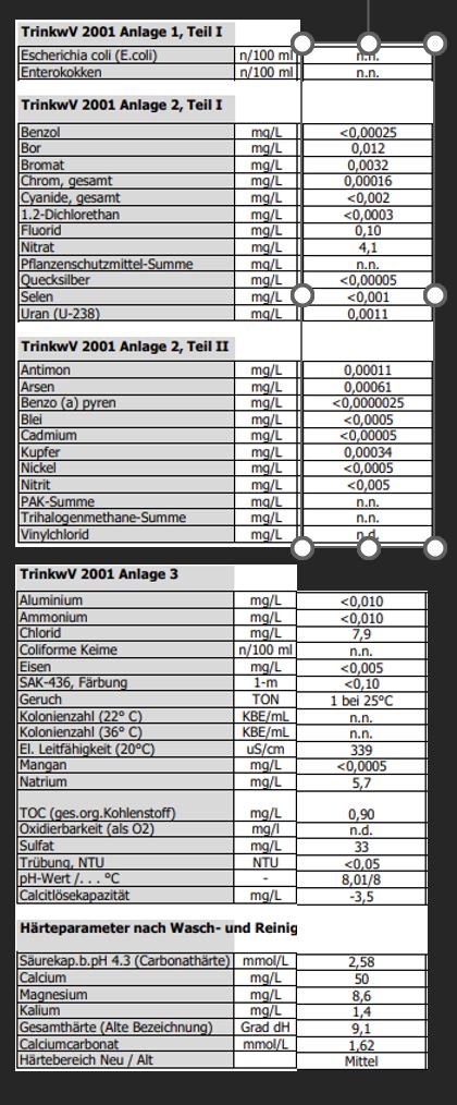 Das sind meine Wasserwerte: