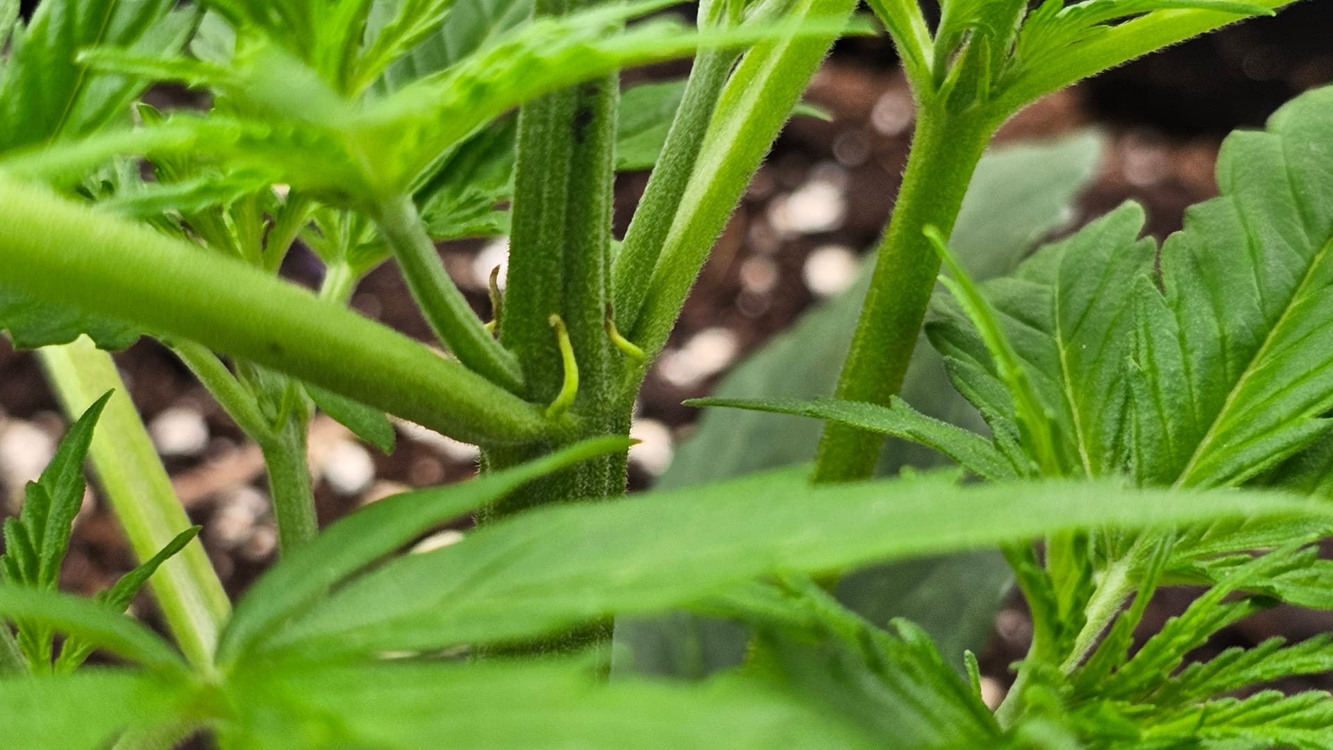 Ich denke Sticky und Ultimate wollen mir mit Ihren unteren Blättern zeigen, daß die Lampen zu nahe waren. War leider 3 Tage weg und konnte erst gestern reagieren. Lampen hängen nun 5 cm höher.