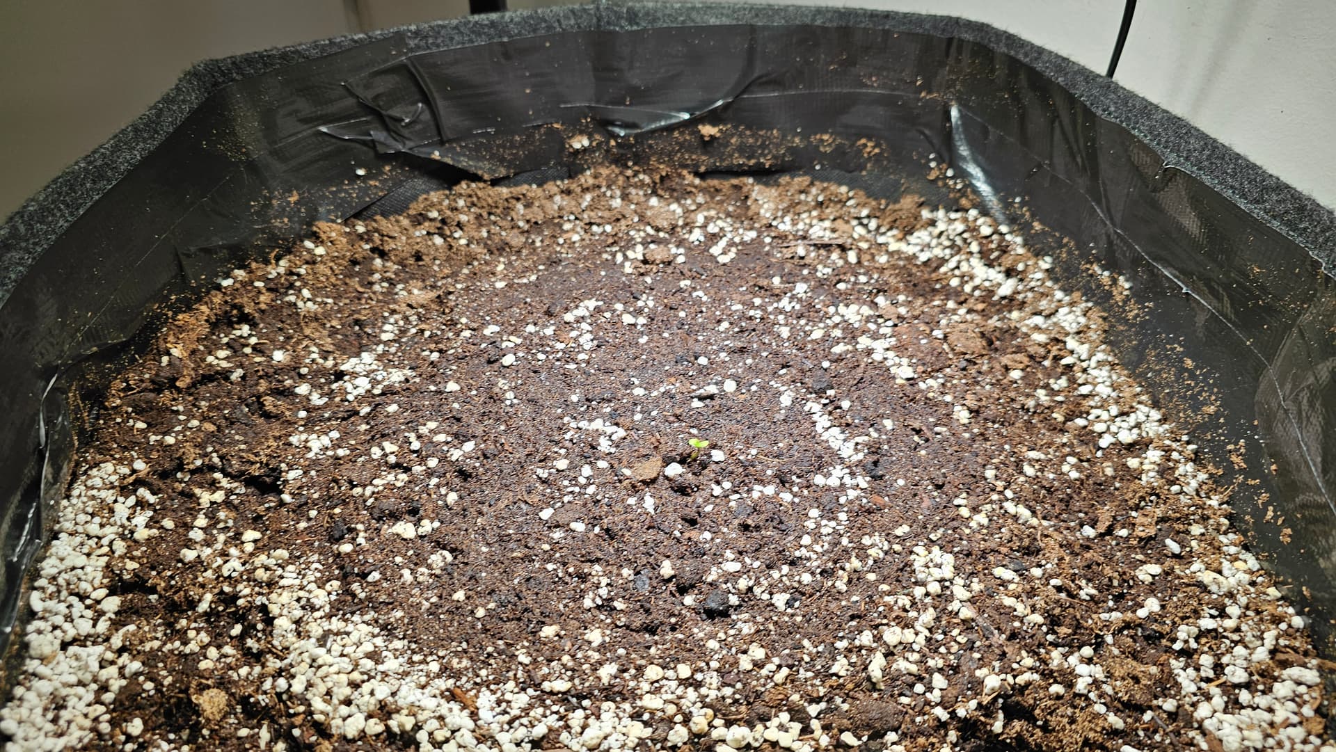Kannst die Ränder der Töpfe auch etwas umkrempeln und später wenn die kleinen gewachsen sind noch Mulchen. Das hält auch Feuchtigkeit im Substrat da weniger verdunstet.