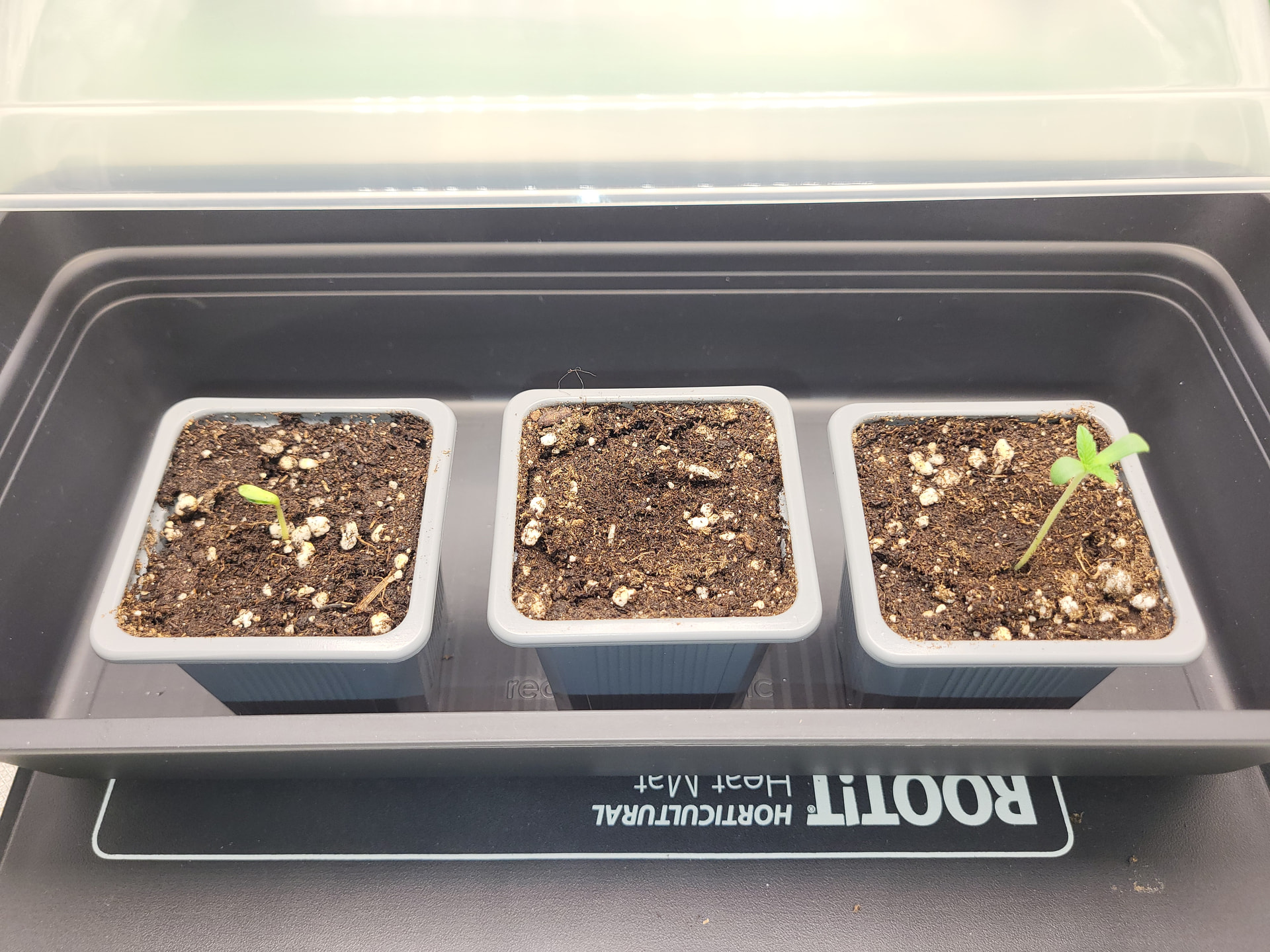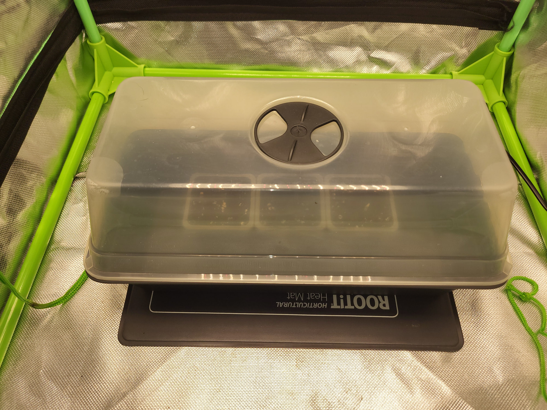 Bekommen unter der haube aktuell 250ppfd(gemessen mit smartphone/app) bei 24°C und 80% Rlf, aktuell stehen sie noch auf der heizmatte.