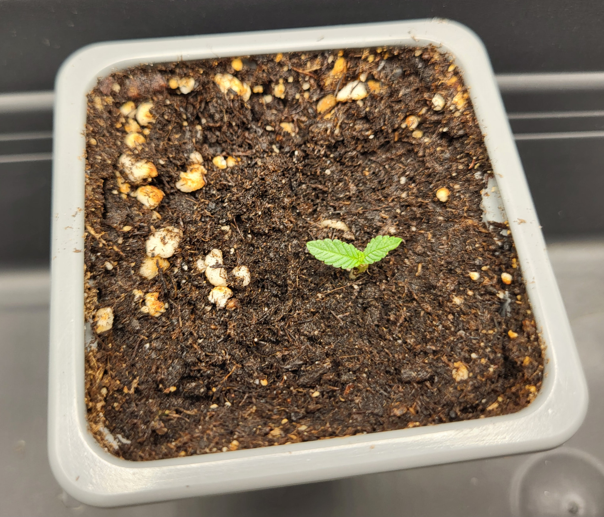 VT. 4) Die kleine,ihr name ist jetzt offiziell Plantje,kommt langsam aus sich raus hoffe sie macht sich unten rum auch noch etwas luft zu erde hin. Ansonsten haben sie jetzt schon zweimal mische mit 2,5 ml wurzelkomplex,1ml calmag,und 3ml bio grow auf dwn liter bekommen. Nur Plantje hatt noch keinen grow nötig.