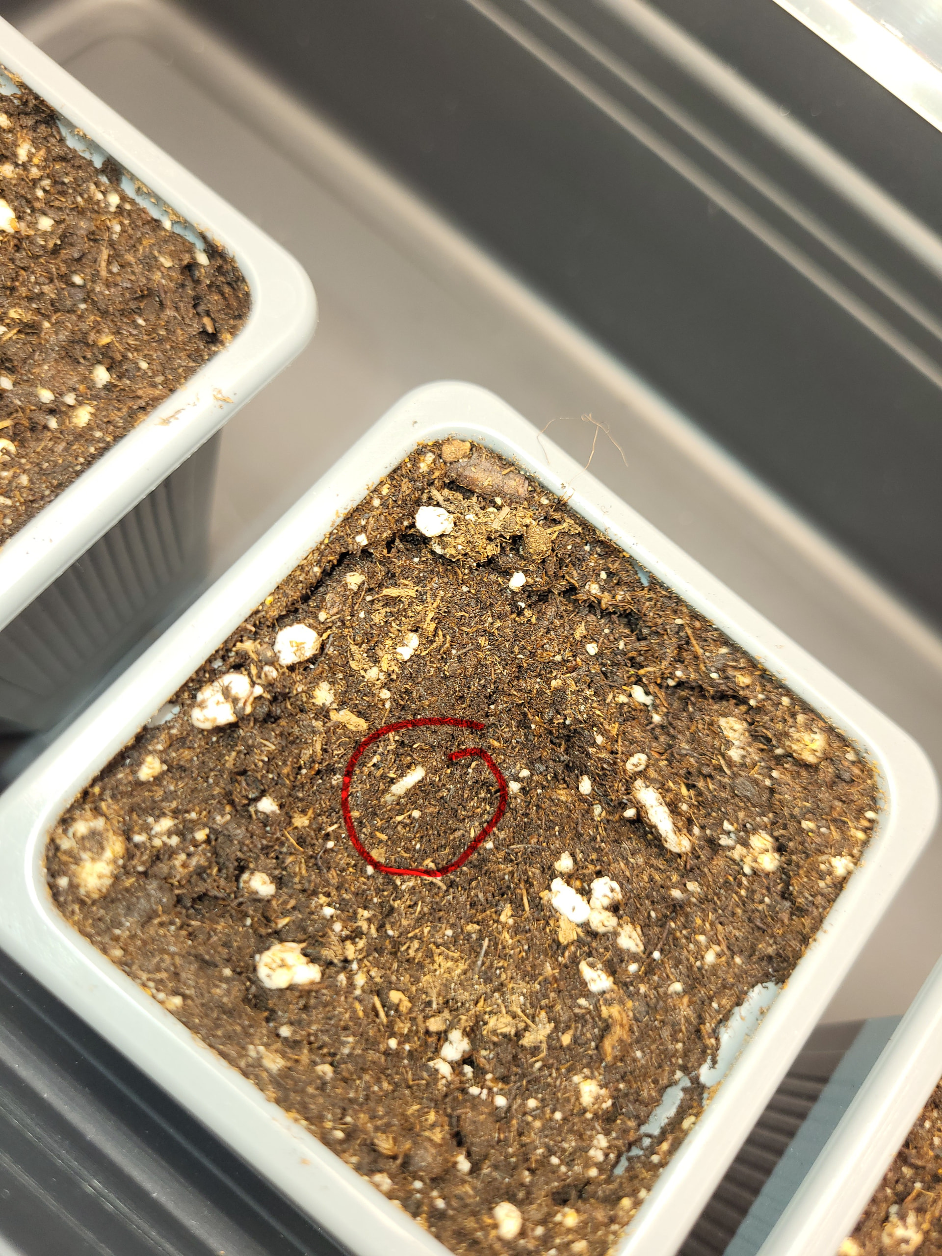 So Leutz hier noch mal ein bild von den mädelz in der Anzuchtbox die rechte ist deutlich zusehen und links bricht gerade durch, sind also schonmal 2/3 und der in die mittige kommt auch noch!