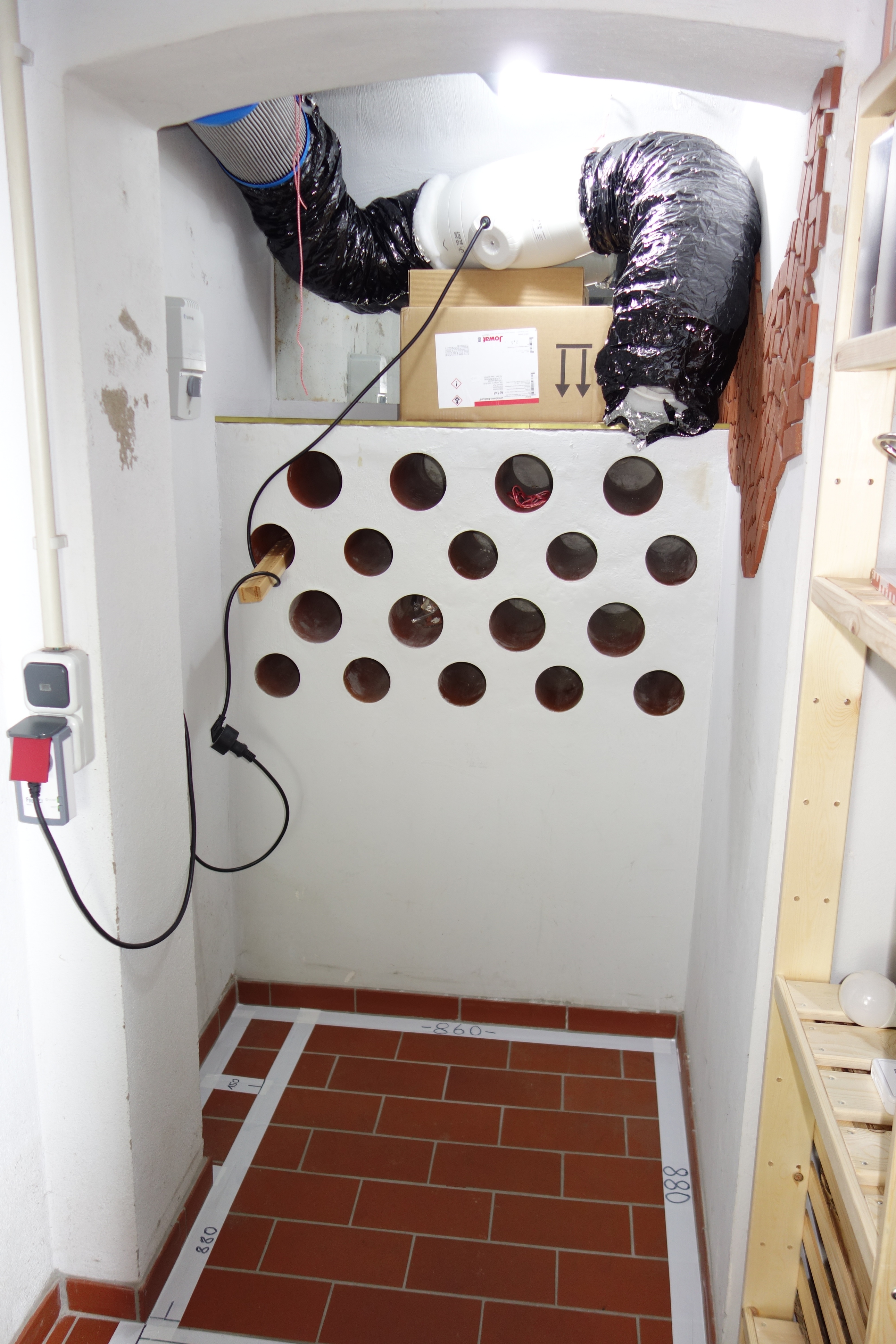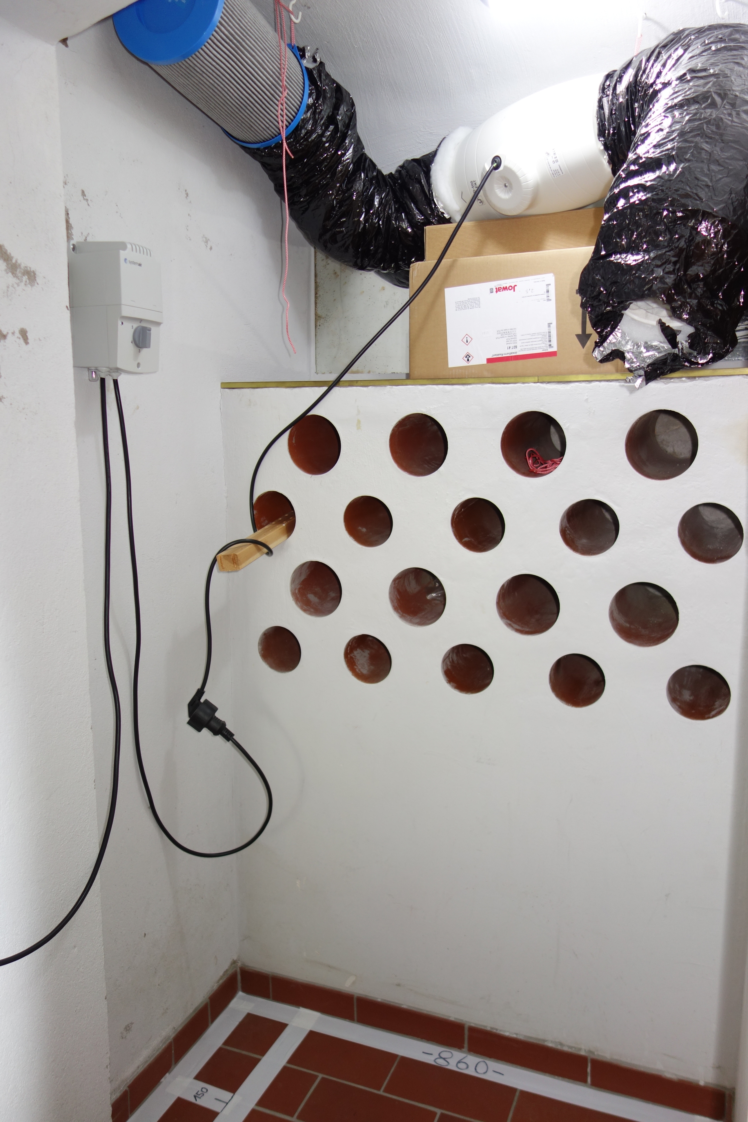 Und was wÀre einfacher, als mit einer Folie die nicht lotgerechten Eigenwilligkeiten von KellerwÀnden, die zum Boden hin noch mit Fliesen-Riemchen versehen sind, genau so luft- und lichtdicht zu bekommen.