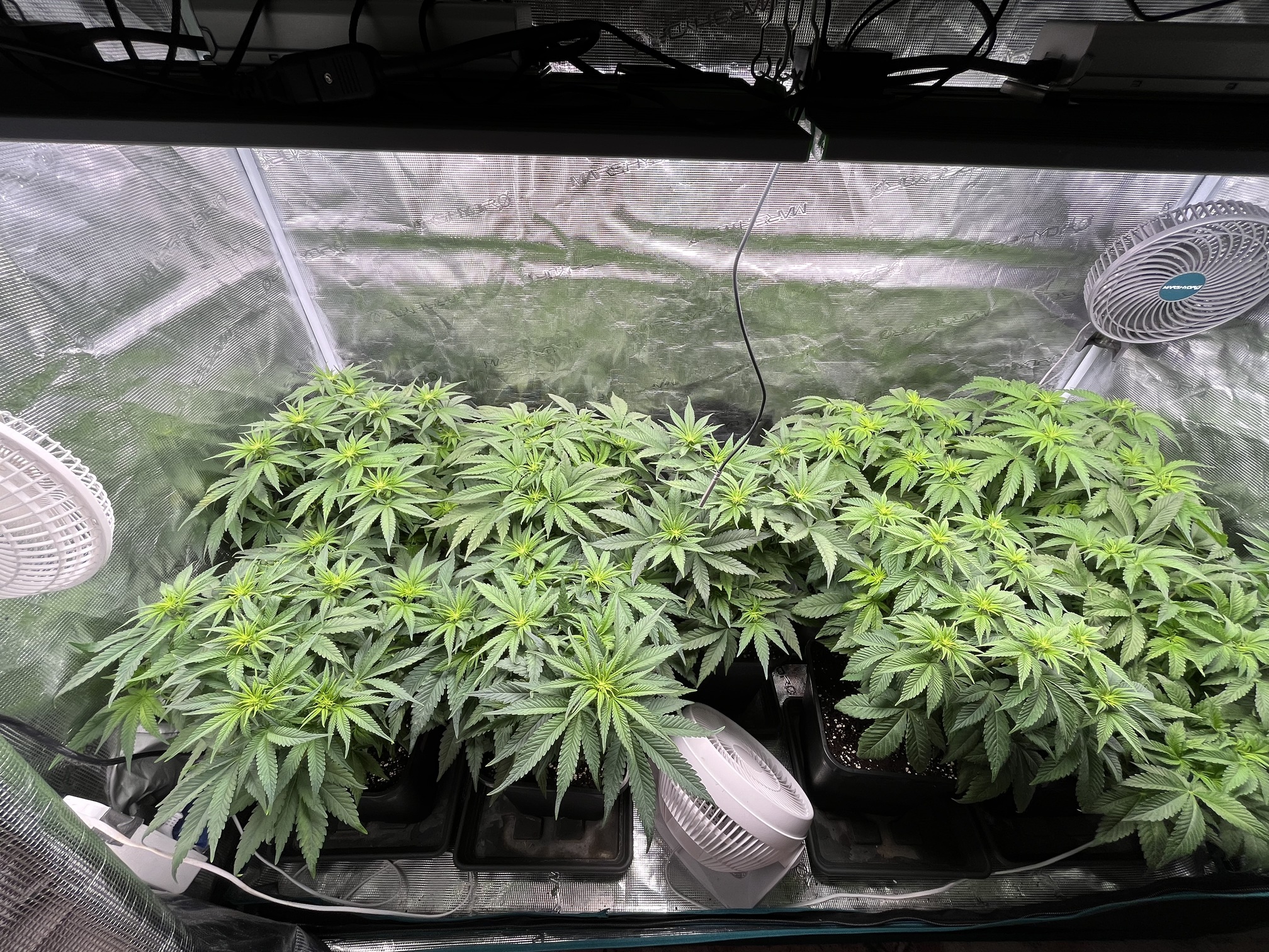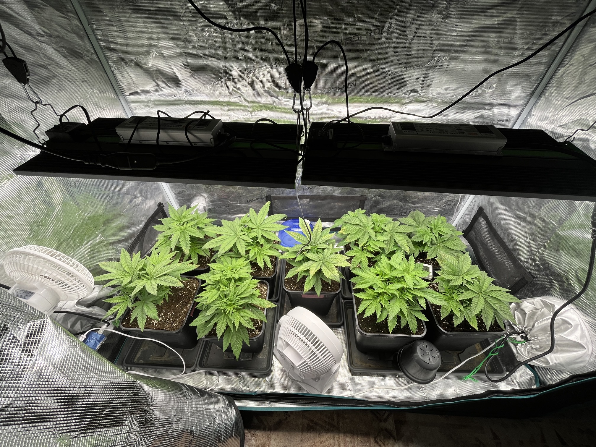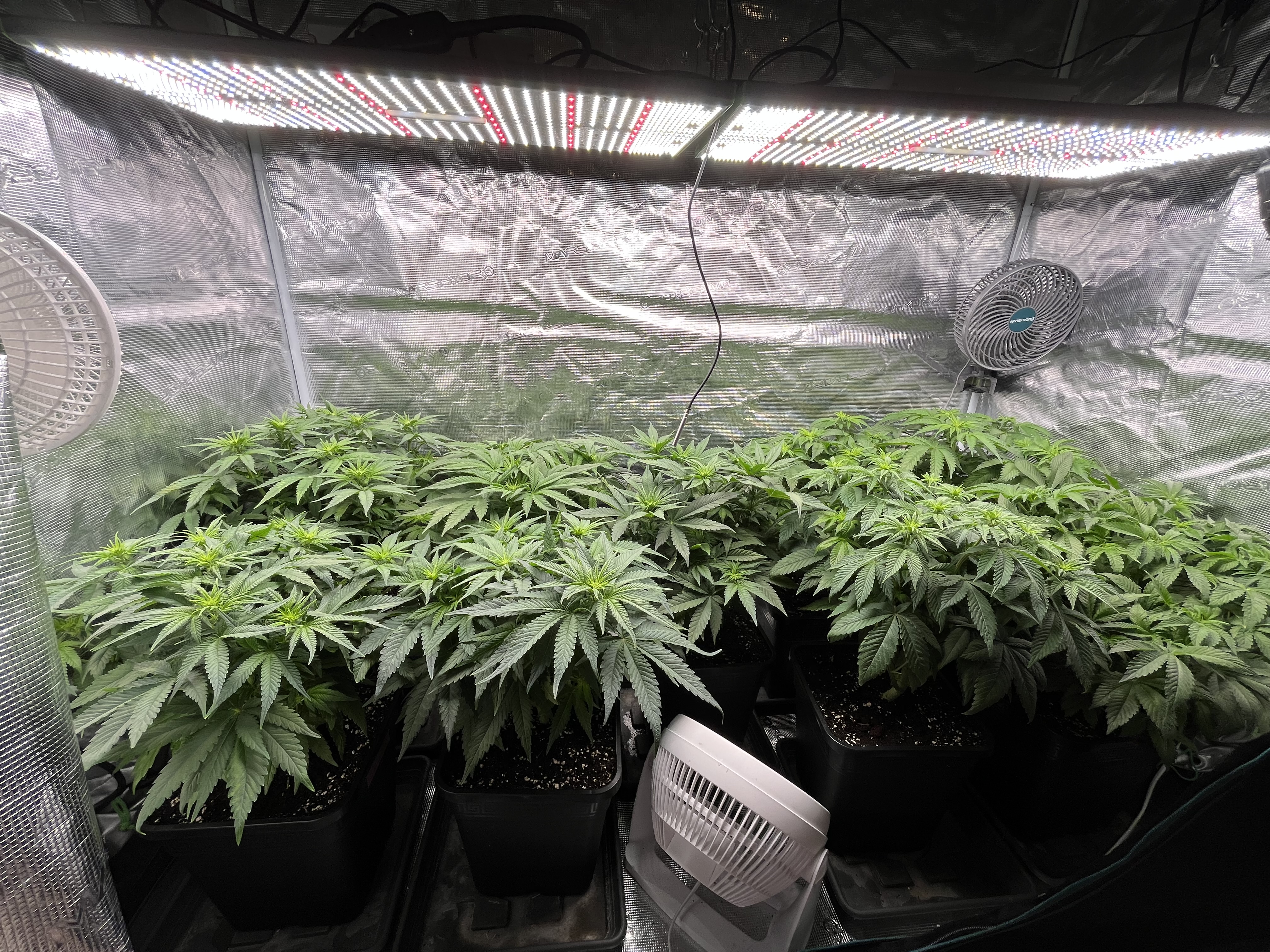 Temperaturen liegen so bei 24 grad bei Lichtphase und 68% LF VPD 1,0 laut Controller hahaha macht schon spaß jetzt mit dem neuen equipment .