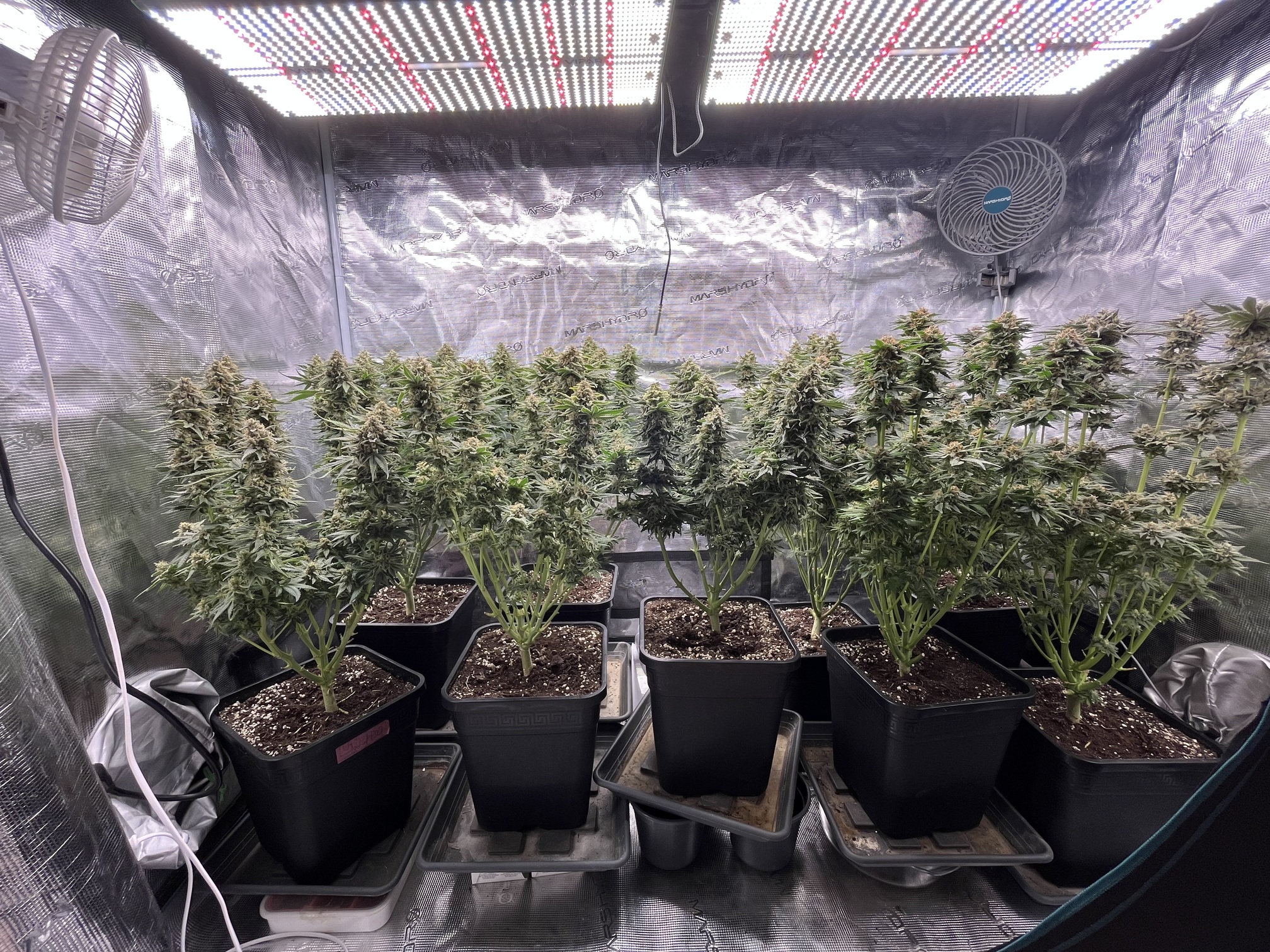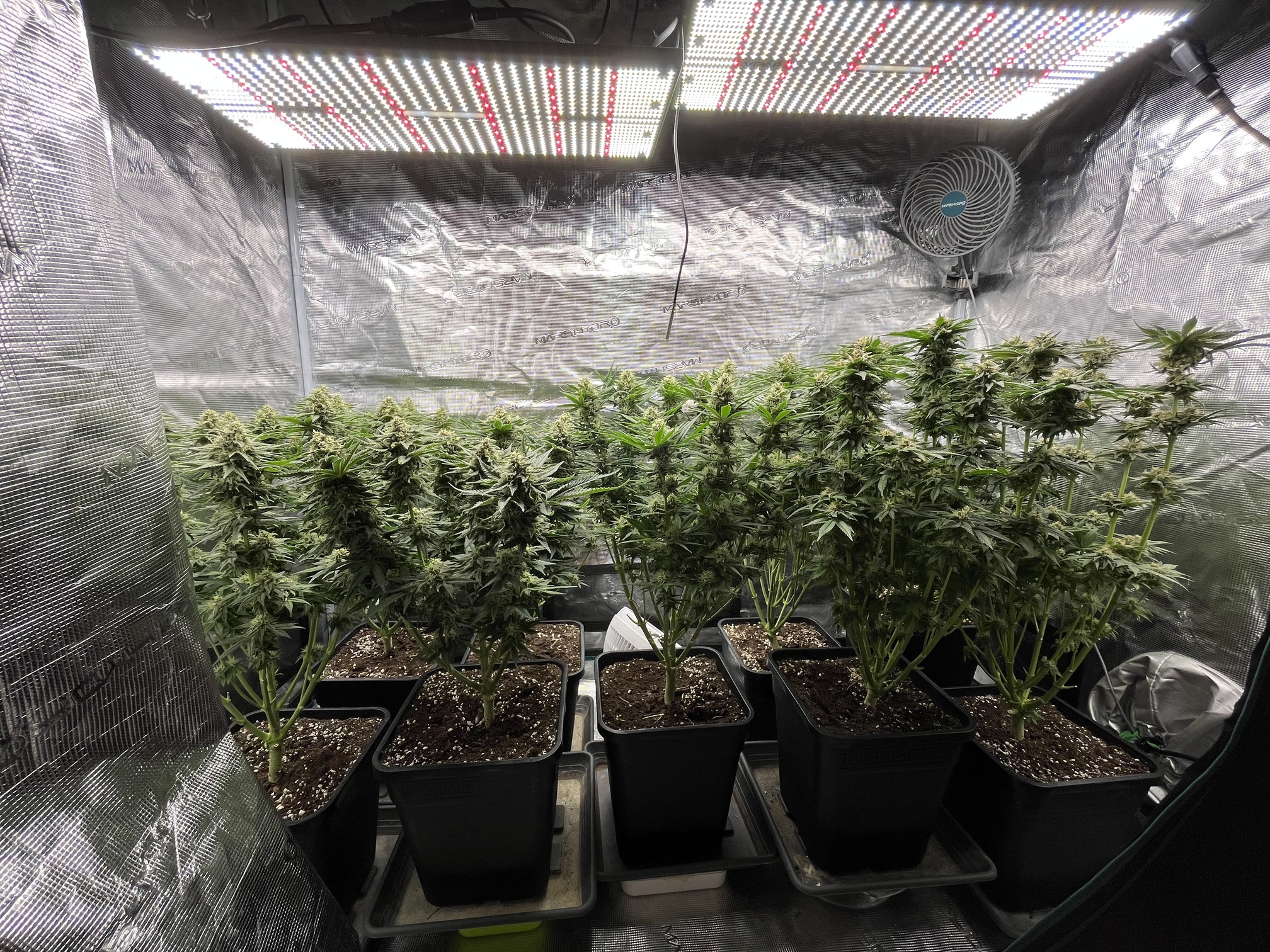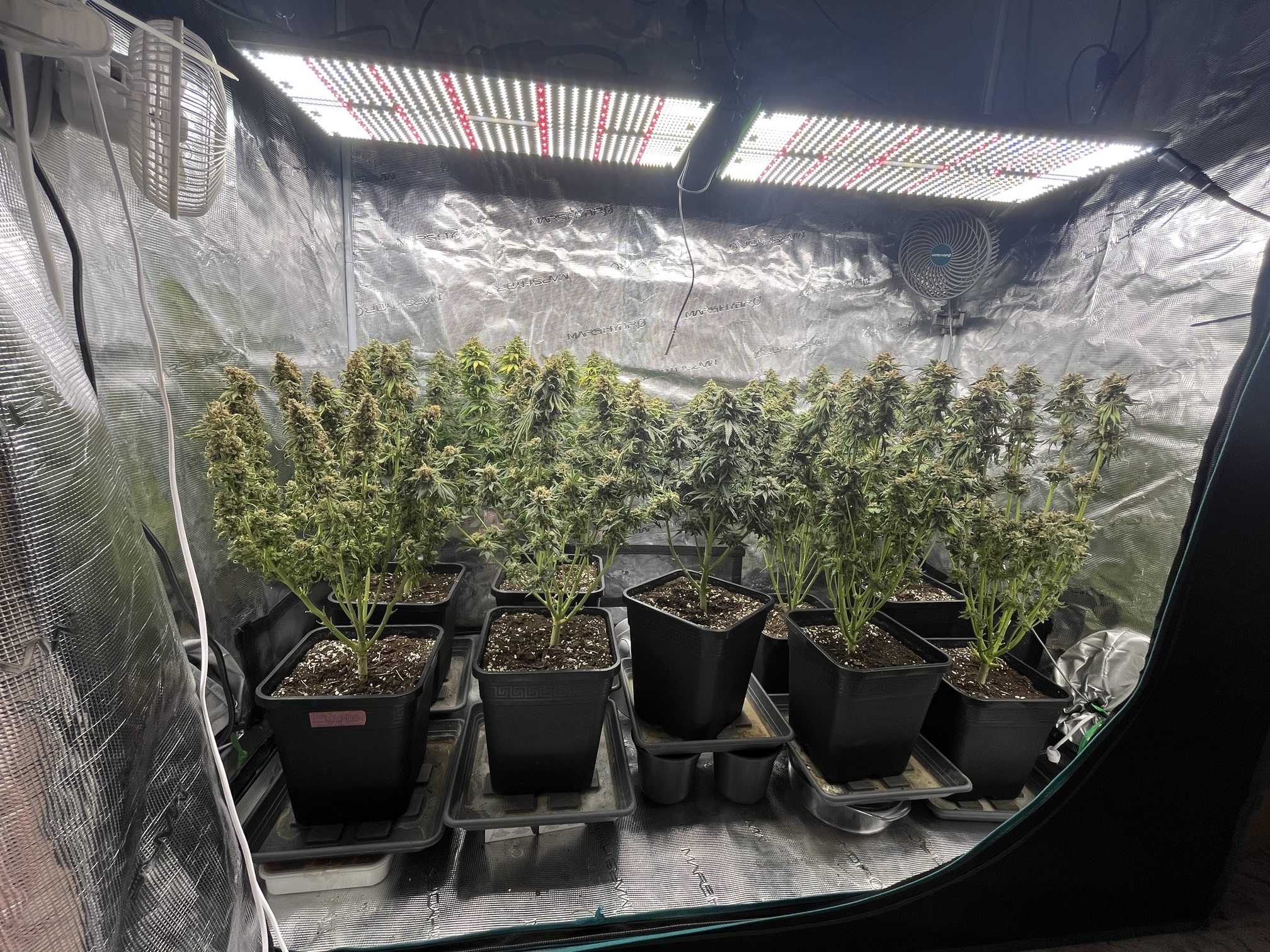Habe meine girls schon seit eine Woche kaum gegossen ,einmal gab es an Tag 3 von 7 Tagen 0,5 l Wasser mit dem ripper von Advanced Nutrients.Lampen liefen die letzten 3 Tage auf 50% davor auf 75% 3-4 Tage und davor mindestens 4 Wochen auf 100%.