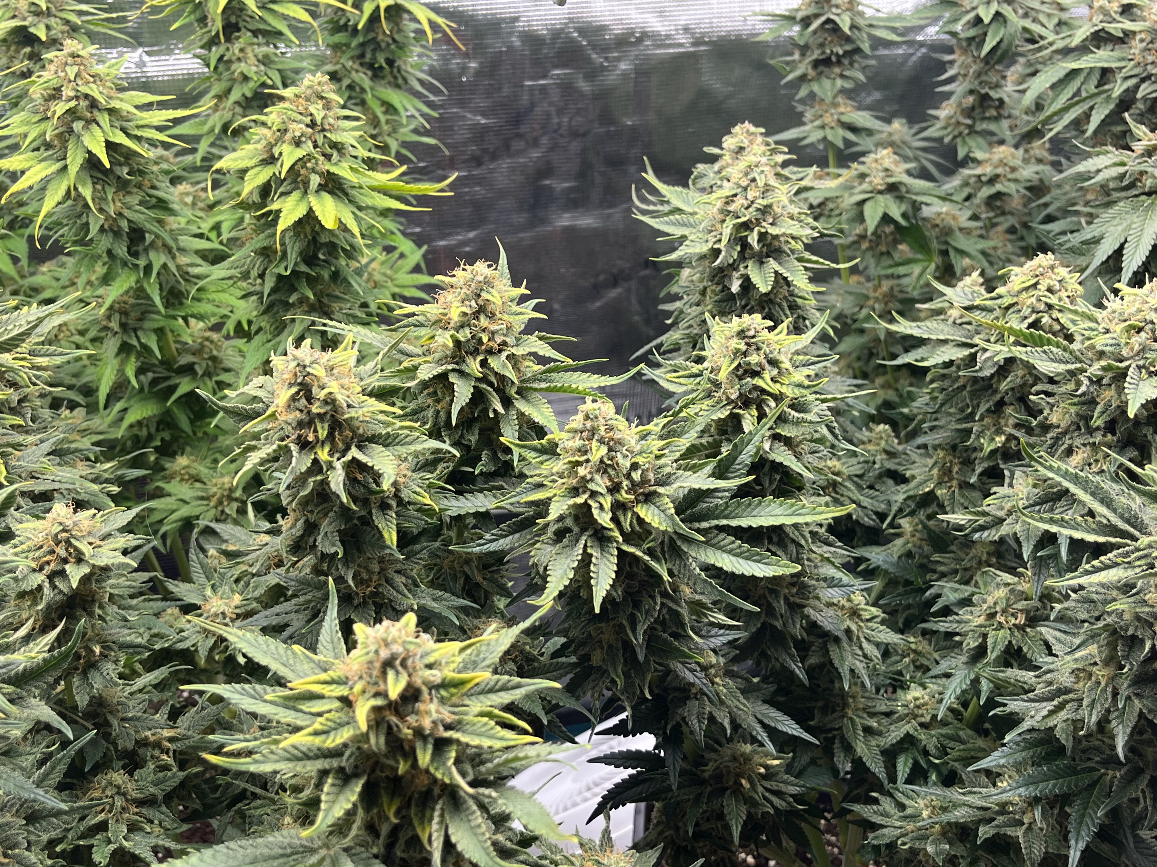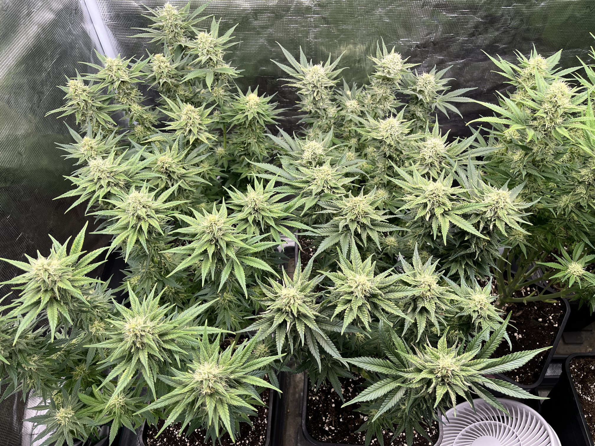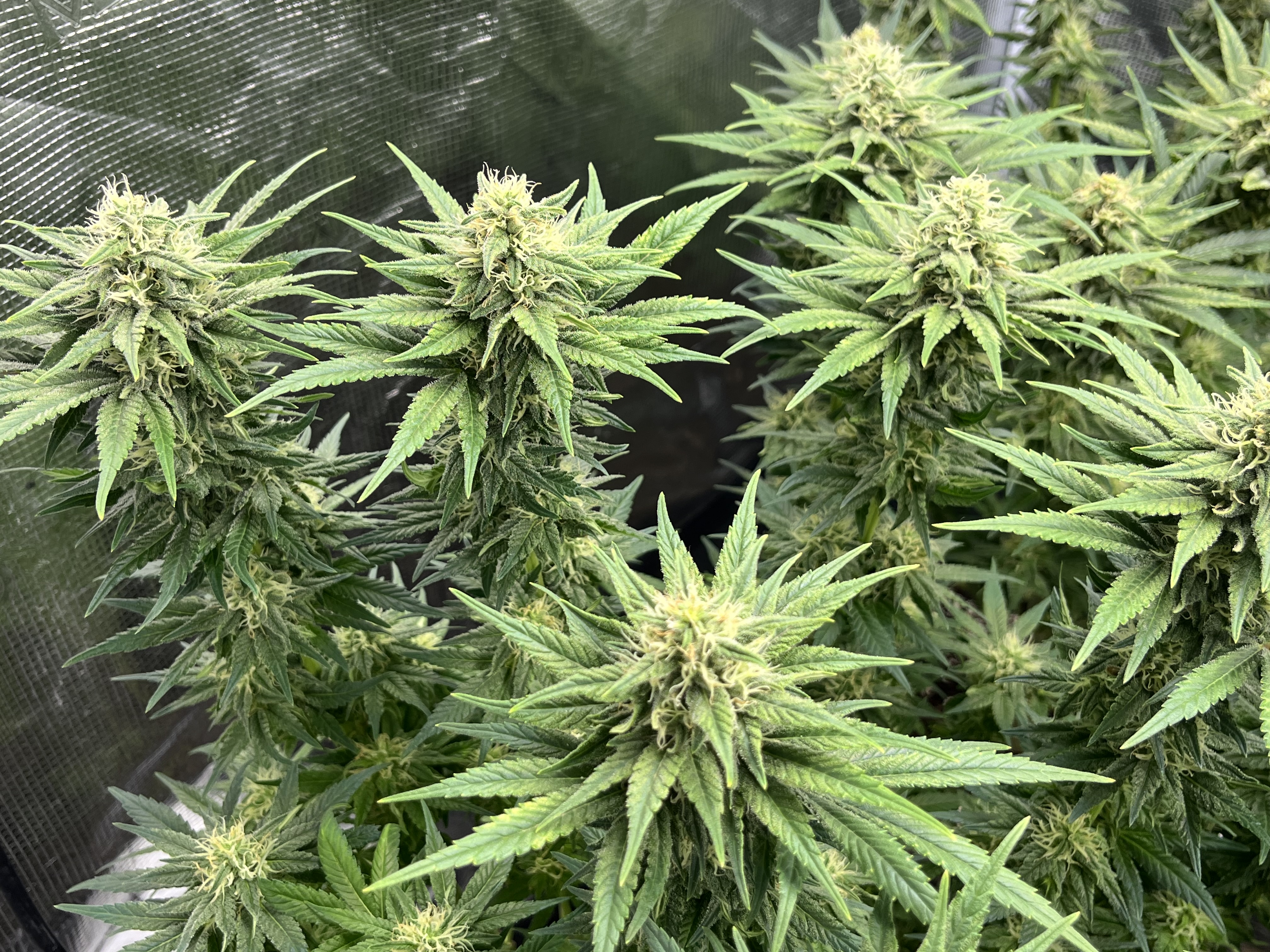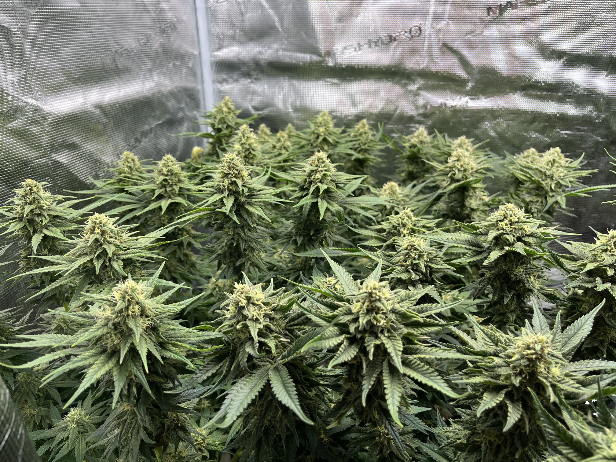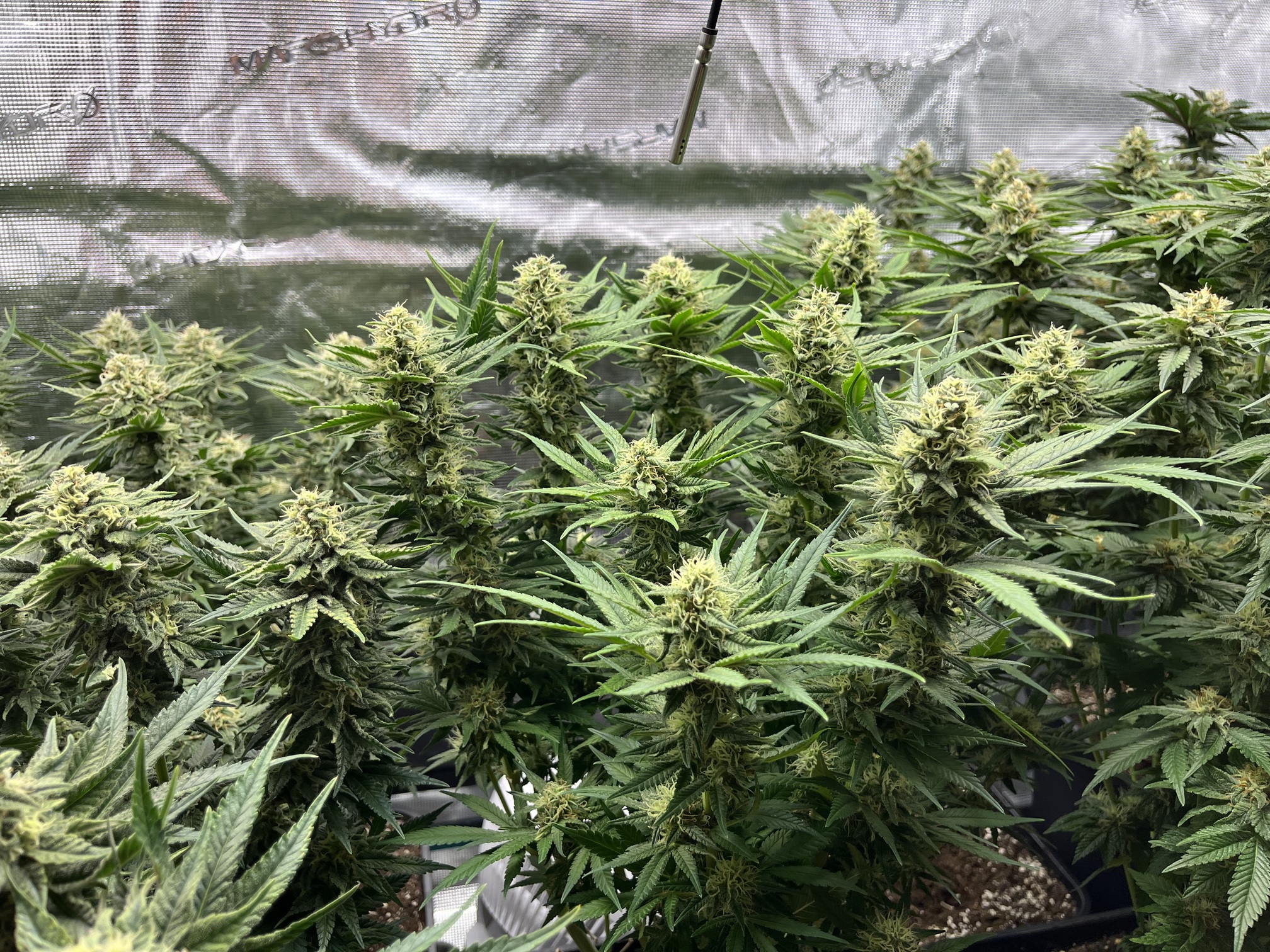 Bin vom Ertrag der whiteskunks nicht mega begeistert da hätte ich was besser machen können aber noch ist nicht gewogen.Quali sieht gut aus Bei beiden strains schön am harzen immer recht niedrige temps unter 27 meist zwischen 24-26 tags und nachts 18-21grad LF war immer im 60er bereich oder wie jetzt mitte ende 50 er bereich .