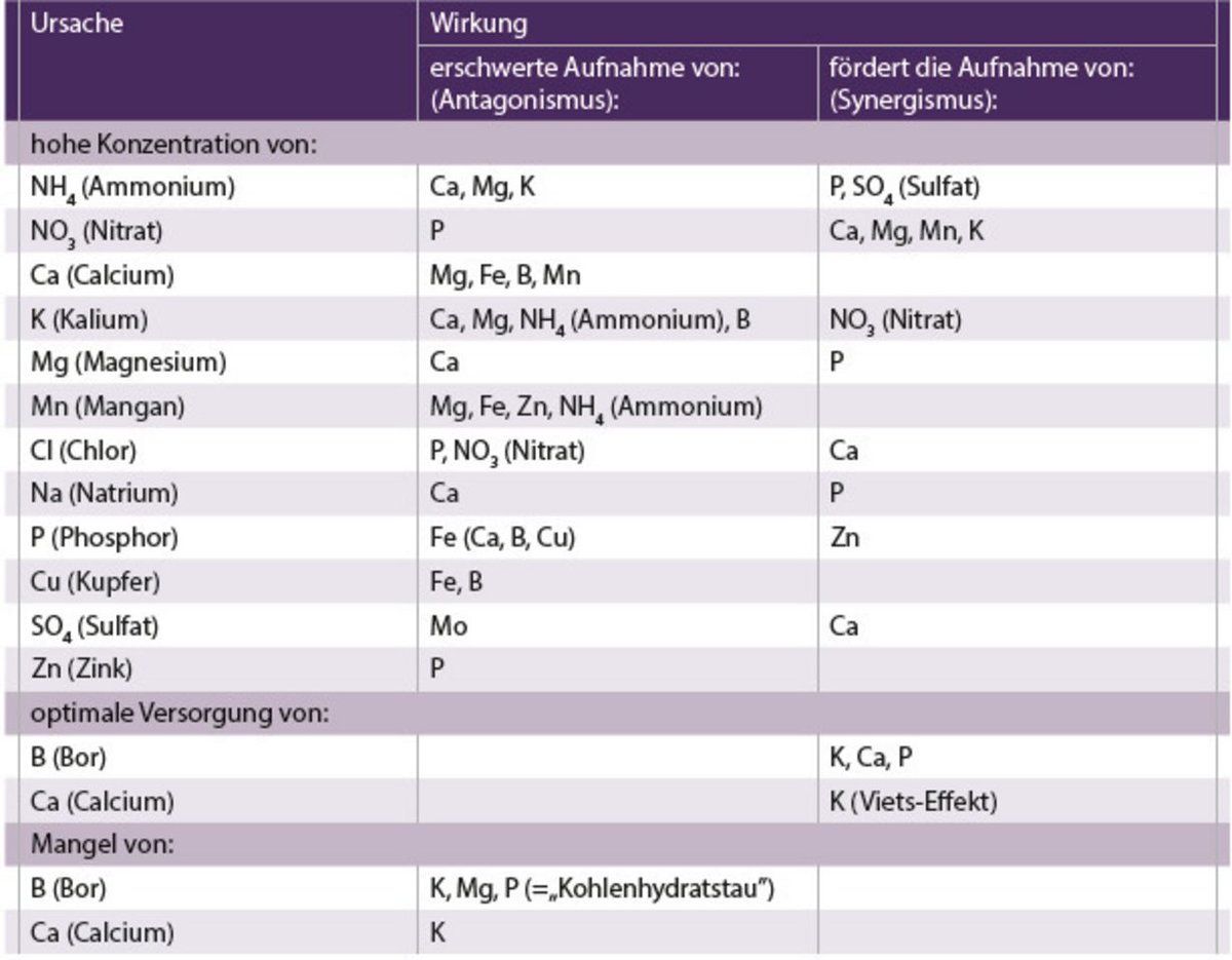 Kalium hemmt die Magnesiumaufnahme. Calcium wiederum die Kaliumaufnahme…